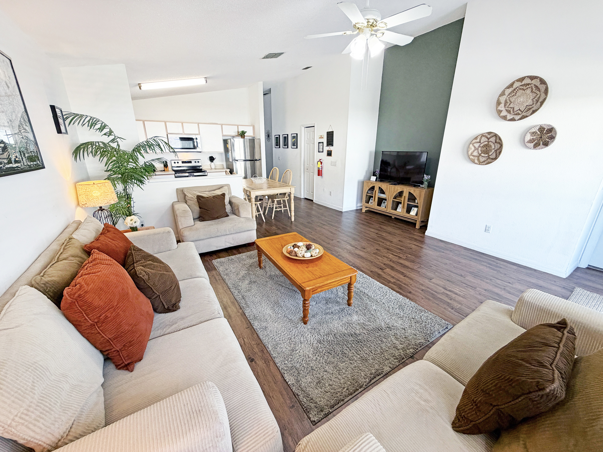 The villa benefits from a spacious and nicely furnished open plan living area. The villa boasts four good sized bedrooms with 3 bathrooms. The master bedroom boasts a kingsize bed with new Serta mattress, walk-in closet plus its own ensuite. The villa is very well equipped with TVs in every bedroom - cable TV and high speed 1 Gig internet included.