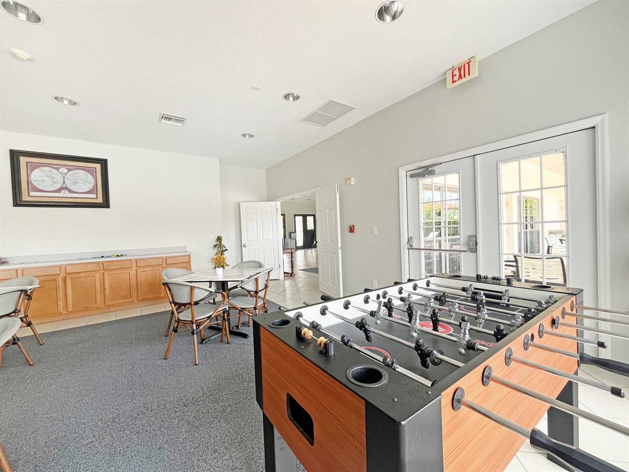 Happy Daze: 4 Bedroom / Sleeps 8 Contemporary, newly-updated home in the gated High Grove Resort. This comfortable 4 bedroom, 3 bathroom villa has a private pool, hot tub and games room. The living room has plenty of comfortable seating with new leather sofas to sink into and relax while watching a movie or your favorite show on the large screen TV. The main living area has wood-look tile throughout. Leading through sliding glass doors is the private pool area. The paved pool deck spans the full width of the home and features a generous size pool and hot tub with jets. Pool/spa heating is available on request at an additional cost. There is a table and chairs for dining outside under a covered shady area. With plenty of loungers, you can spend a whole day enjoying the sunshine by the pool with complete privacy. There is also an area of lawn to the rear of the screened enclosure. BBQ rental available: 3 burner $89 per week / 4 burner $99 per week incl tank of propane (needs to be ordered 7+ days in advance - BBQs not stored at the home) The modern kitchen boasts stone countertops, high-end stainless steel appliances and everything you may need to cater for your family. There is a breakfast bar with tall stools and a bright dining area that comfortably seats 6. The home has two master bedrooms, both with king beds and ensuites. Premium mattresses, bedding and towels are provided. The bathrooms have been freshly upgraded with marble tile and high quality fixtures and fittings. Both of the master suites are at the rear of the home and have access to the pool deck. There are two children’s bedrooms, each with two twin beds – one room is Rock-n-Roll and the other Disney themed. There are TVs in every bedroom. The games room is set up for those of all ages to enjoy. There is a pool table, foosball table and large screen TV with Xbox console and selection of games, together with comfortable gaming chairs. Cable TV and high speed internet is provided. There is a washer/dryer for guest use. High Grove Resort is a popular base for vacationers due to its premium facilities and superb location close to the crossing of Highways 27 and 192. The gated community is peaceful and well cared for – the clubhouse is just a walk across the street from the home and offers a variety of guest amenities for your enjoyment. As well as the community pool and spa there is a fitness center, cyber cafe with printing facilities, pool table, free wireless hot spot and arcade room. Just across from the clubhouse is a children's playground with mini golf. An abundance of shooping and dining options are in short driving distance, including a large Walmart less than a mile away. Disney is around 25 minutes drive, Universal and Sea World to the north, and Legoland to the south, are approximately a 30 minutes drive. For the keen golfers, Highlands Reserve, Championsgate and Orange County are all nearby.