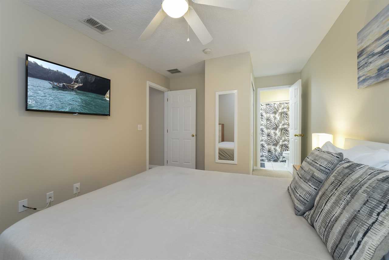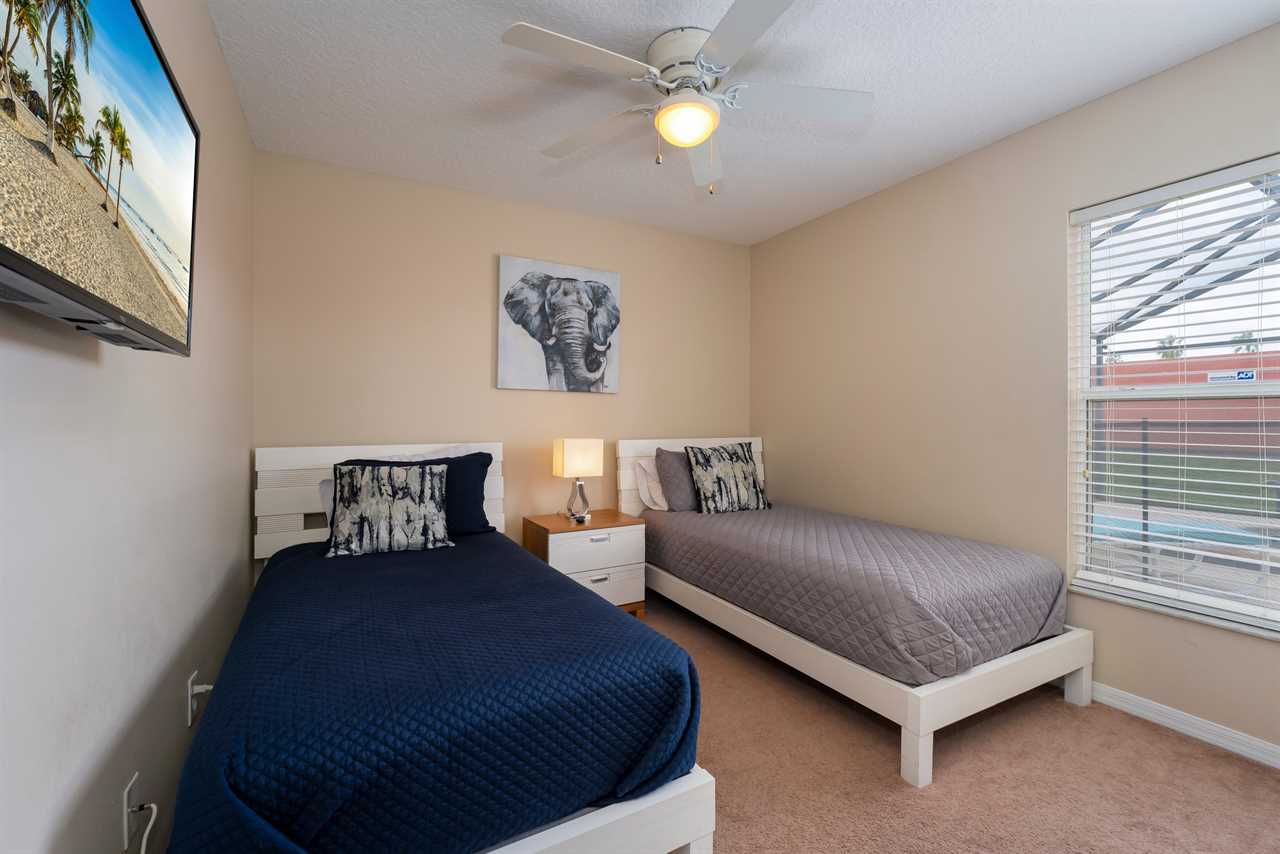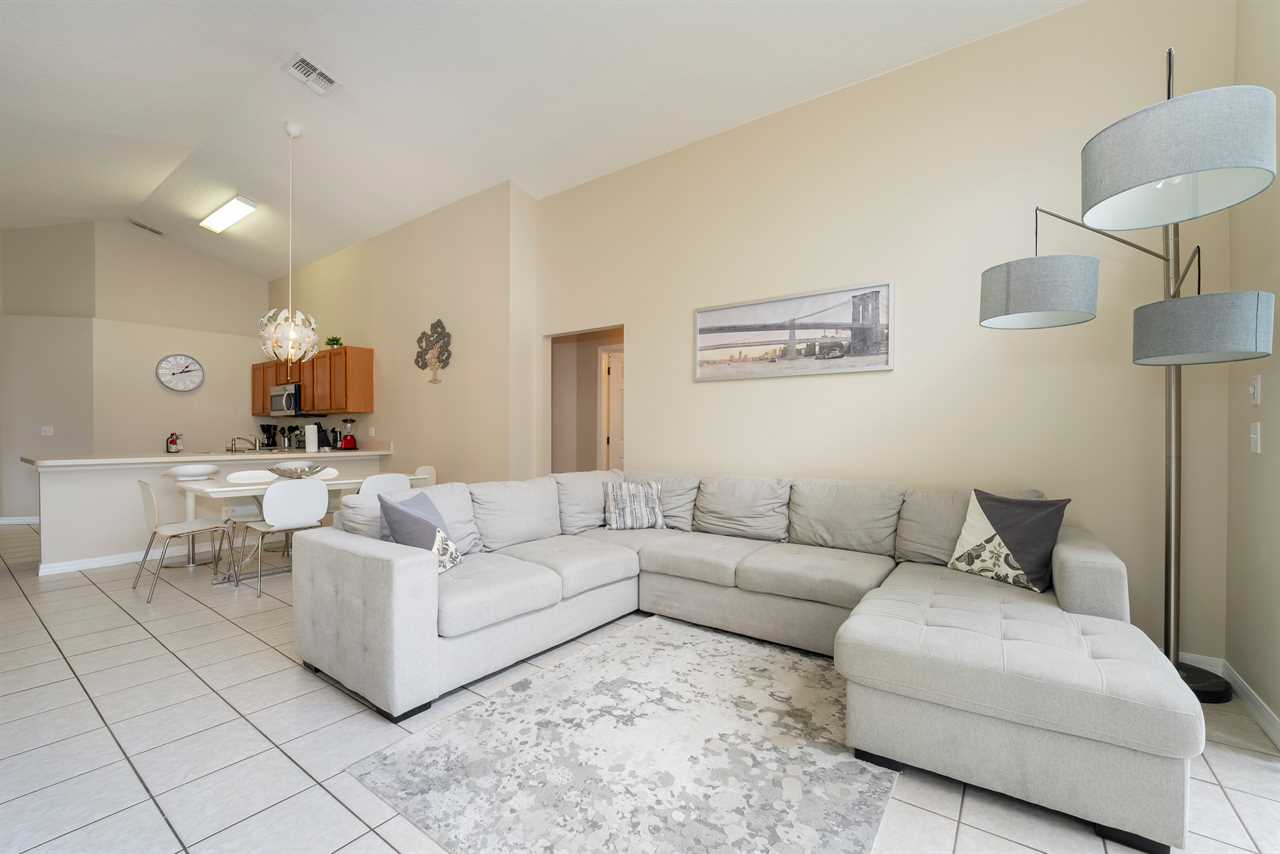 This stylish corner-lot villa offers four bedrooms, including two master suites, providing a spacious and comfortable retreat. The home features two seating areas and two dining areas, ensuring plenty of room for relaxation and entertainment. The lounge includes a pull-out sofa bed, offering additional sleeping options. The fully equipped kitchen is designed for convenience, complete with a breakfast table and bar seating. Bedrooms three and four share a family bathroom, making it an ideal setup for families and groups.