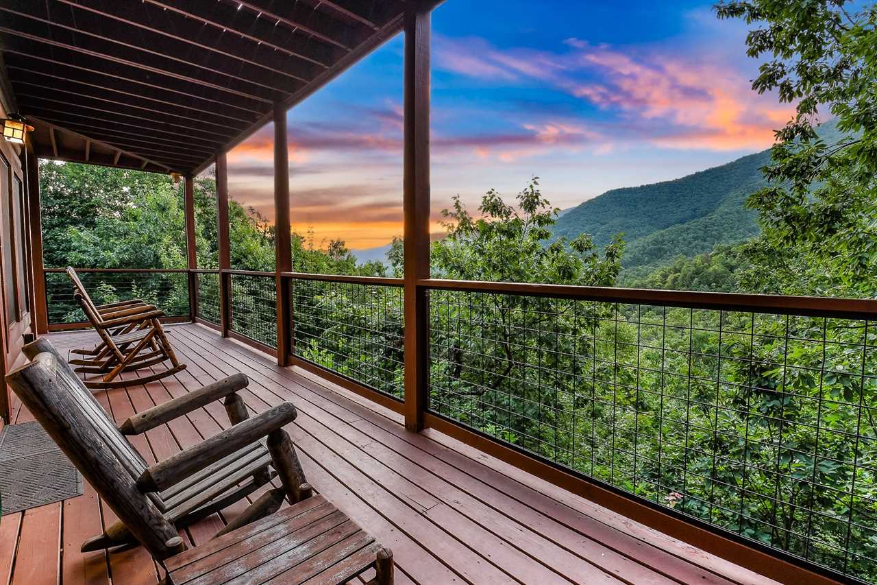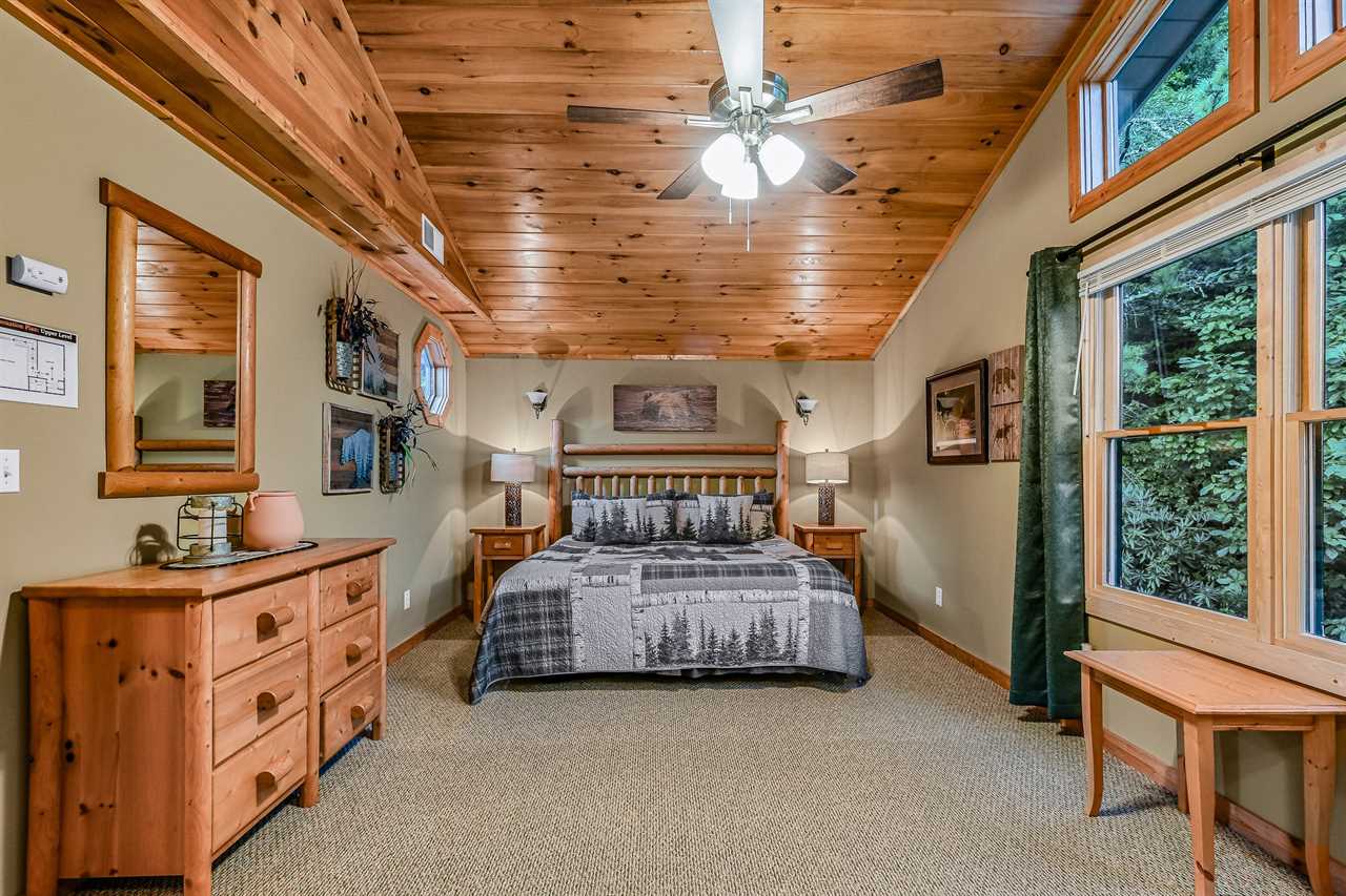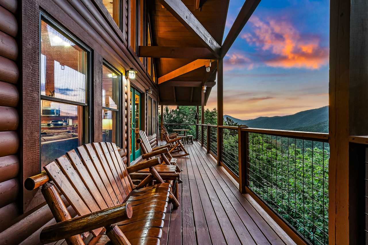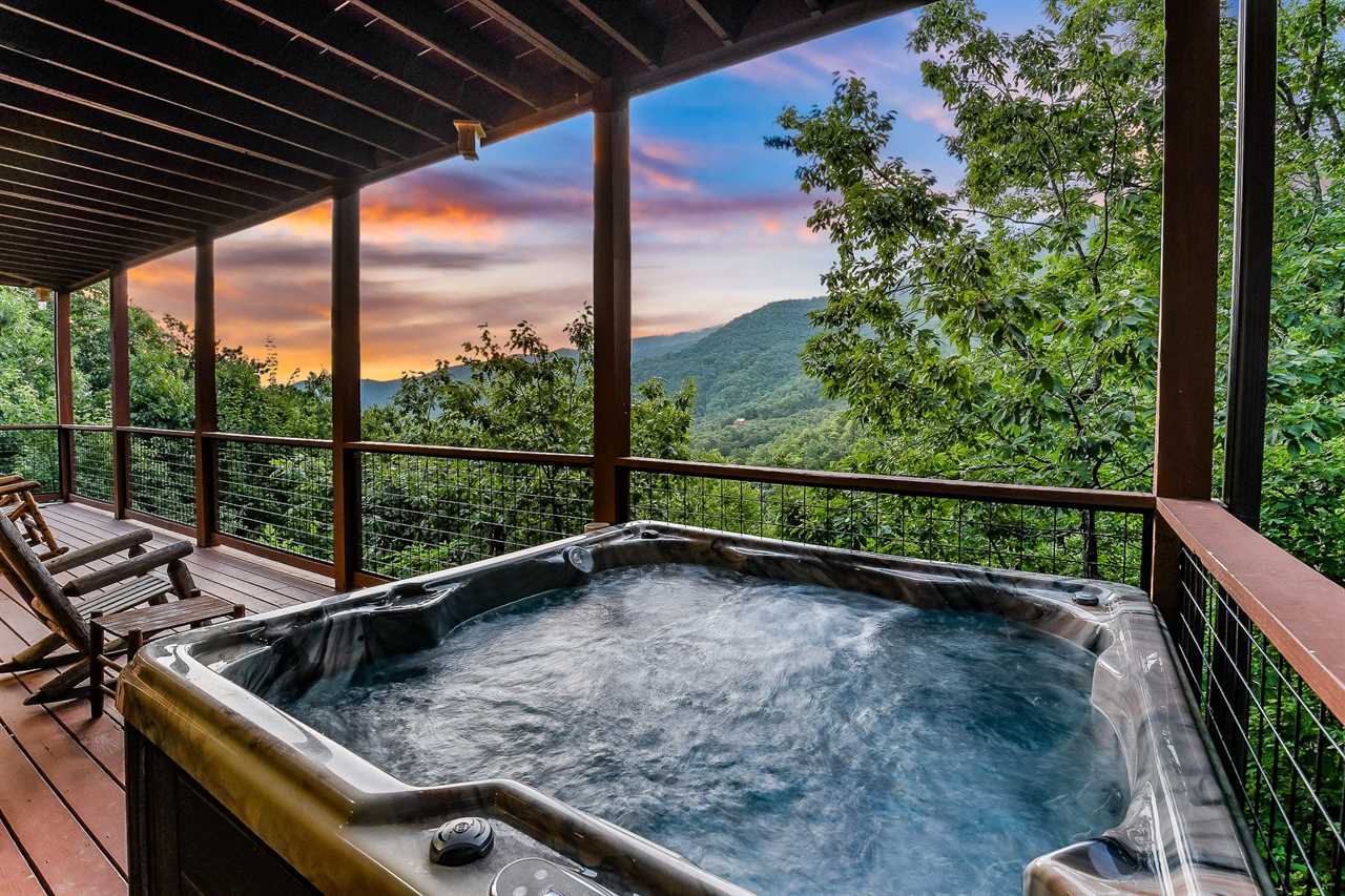 The great outdoors meets luxurious comfort. Step outside into your own private oasis, where a paved driveway leads you to a spacious cabin with breathtaking mountain views. Unwind in the soothing hot tub, perfectly positioned on one of the two covered decks, and take in the stunning scenery as the sun sets behind the trees. Gather around the charcoal grill and cook up a feast for your group, then enjoy dining on the patio furniture amidst the fresh mountain air. With two covered decks and ample outdoor seating, there's no shortage of space to soak up the natural beauty of the surroundings.