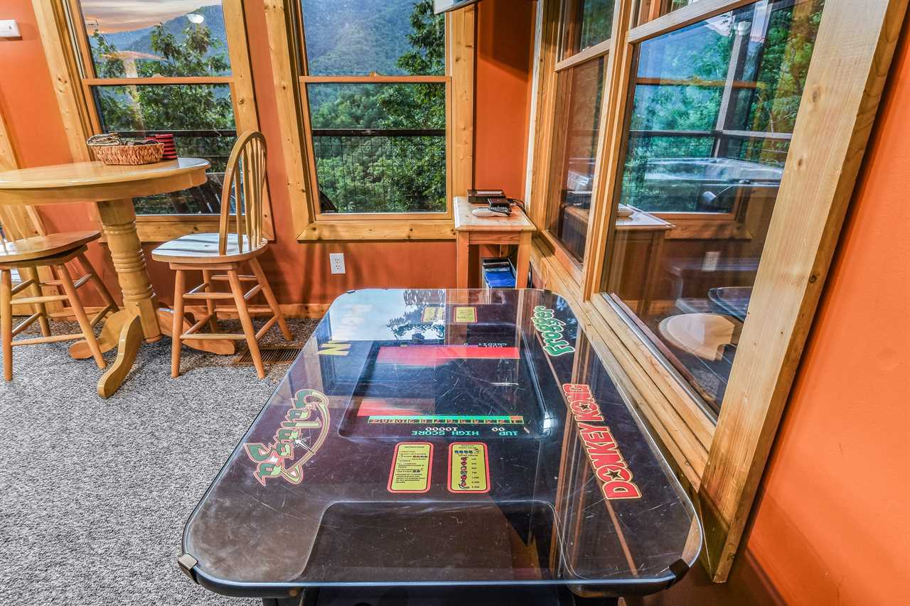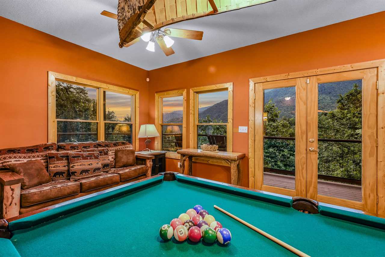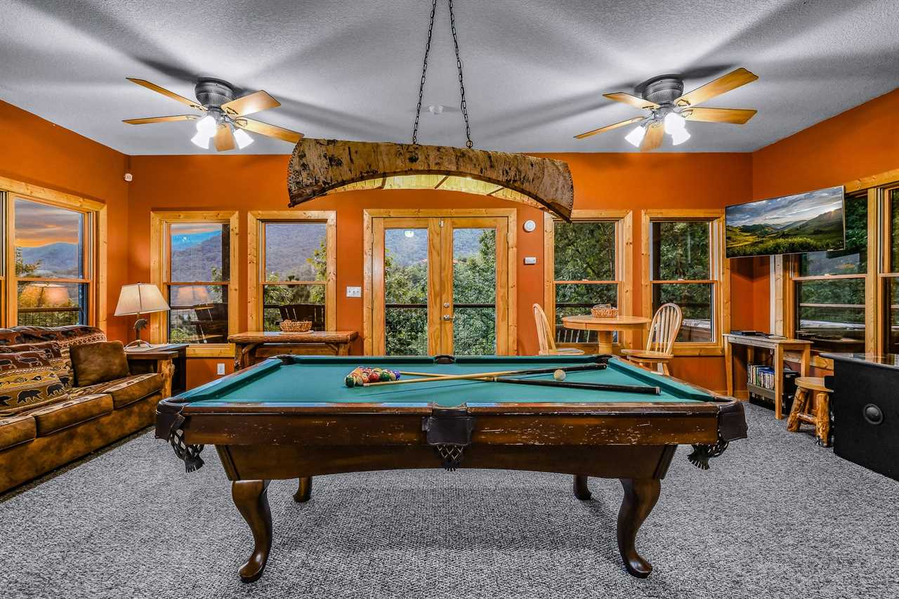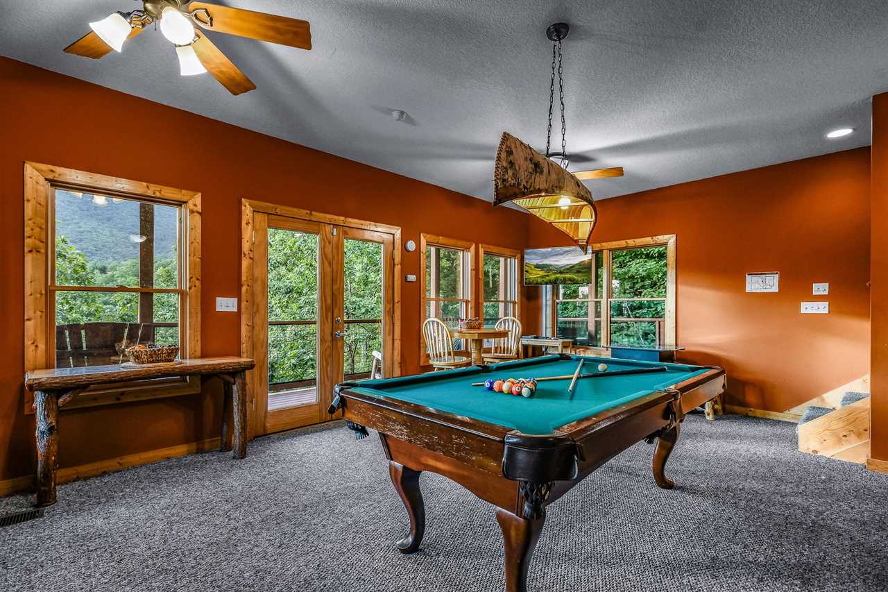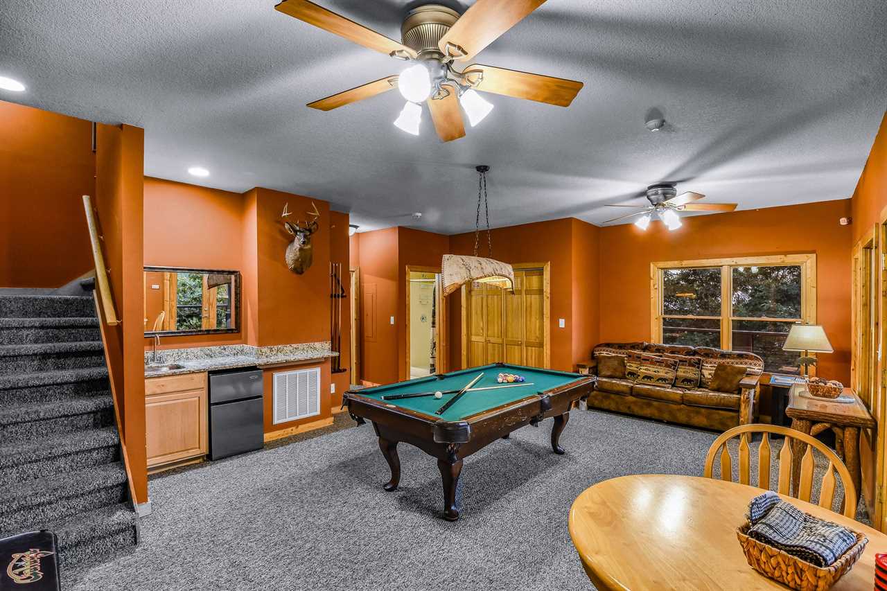 Unwind and have fun in the game room, where entertainment is always just a step away. The perfect spot for families and friends to gather and enjoy friendly competition, this room has a flat-screen TV, a pool table for those looking to rack up some points, and a checkers board for a classic game night. For a more modern twist, try your hand at the arcade game, challenging yourself after all the excitement, refuel with snacks and drinks from the mini fridge, or catch a quick snooze on the sofa sleeper. With its fun and playful vibe, this game room is the perfect place to make memories that will last long after the game is over.