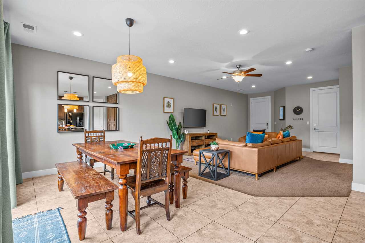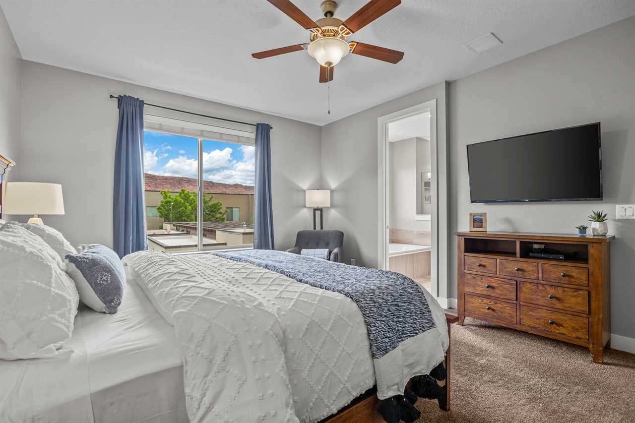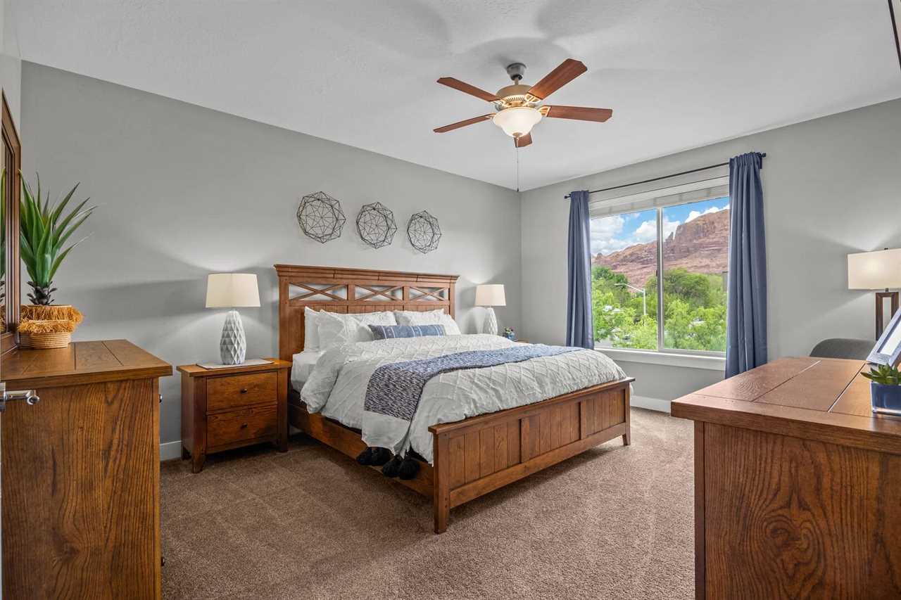 Outside, you're surrounded by landscaped grounds and a great view of surrounding Moab with access to the community pool and spa. This vacation rental in Moab Utah is just a few blocks from downtown, and a short drive to various indoor and outdoor activities, including Arches National Park, Canyonlands National Park, and Dead Horse State Park, allowing you to experience the ultimate vacation in Moab.