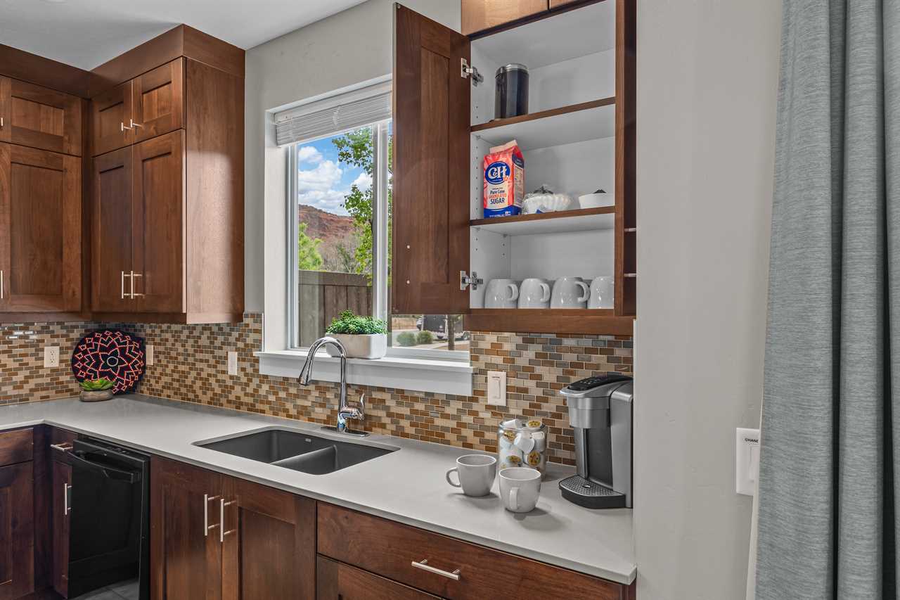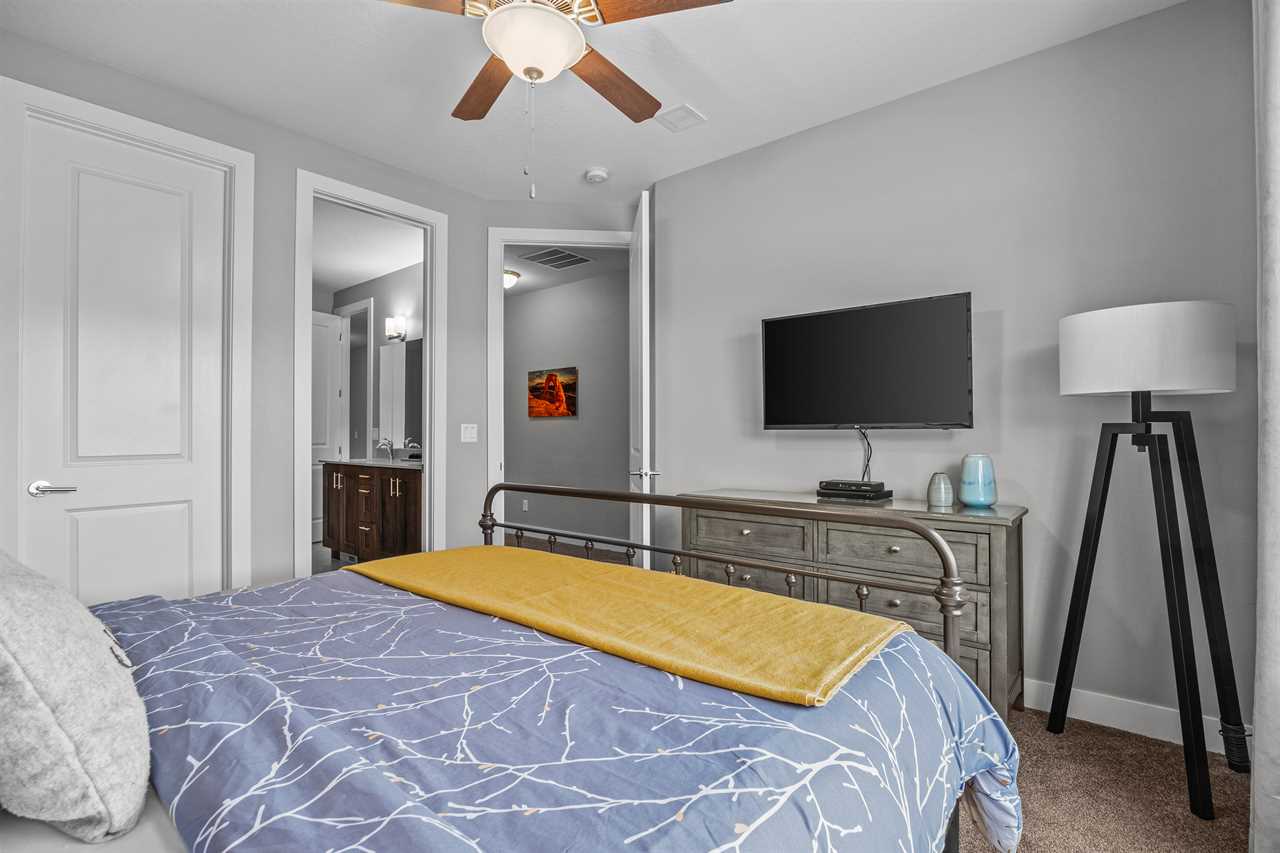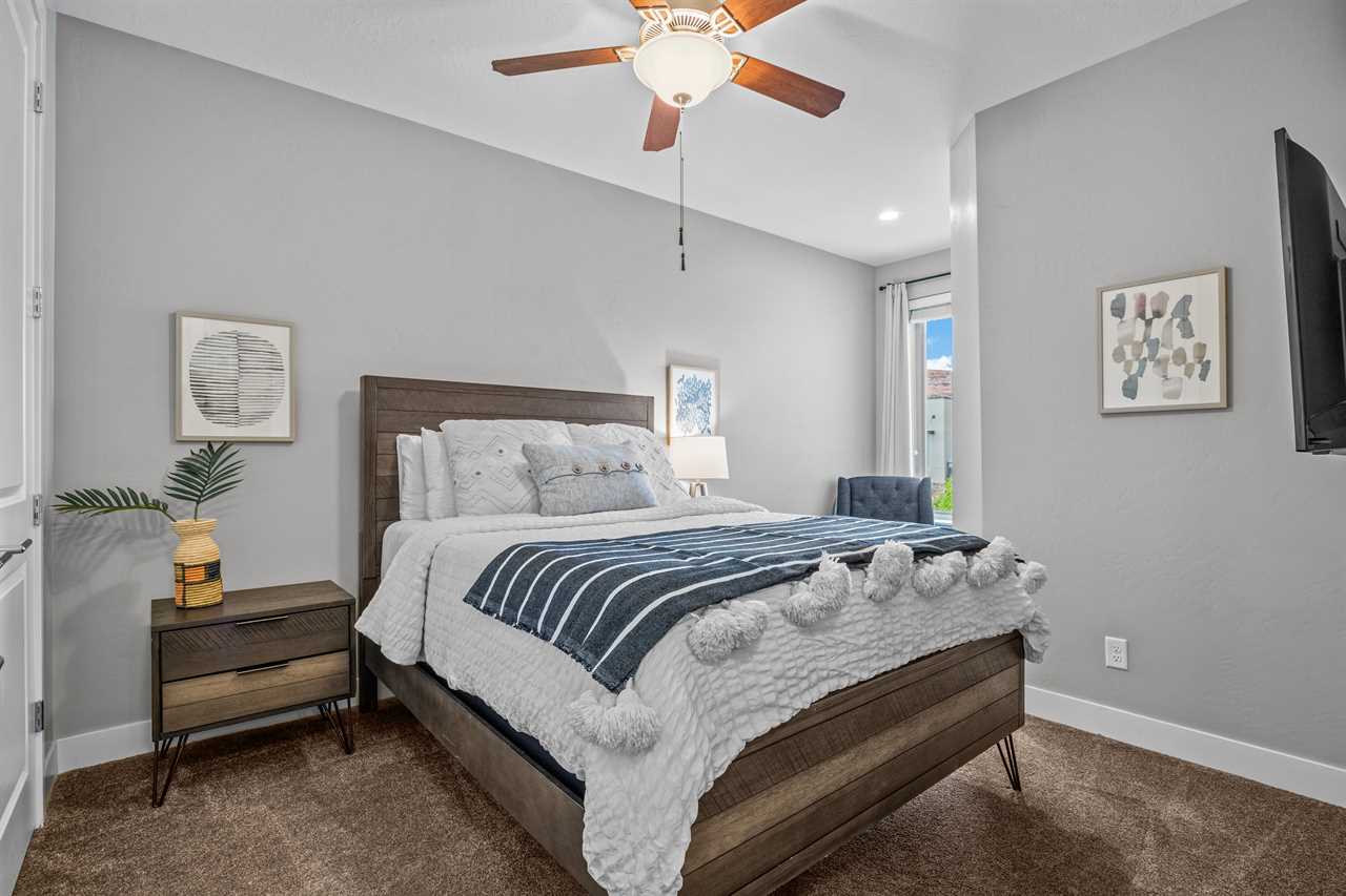 Outside, you're surrounded by landscaped grounds and a great view of surrounding Moab with access to the community pool and spa. This vacation rental in Moab Utah is just a few blocks from downtown, and a short drive to various indoor and outdoor activities, including Arches National Park, Canyonlands National Park, and Dead Horse State Park, allowing you to experience the ultimate vacation in Moab.
