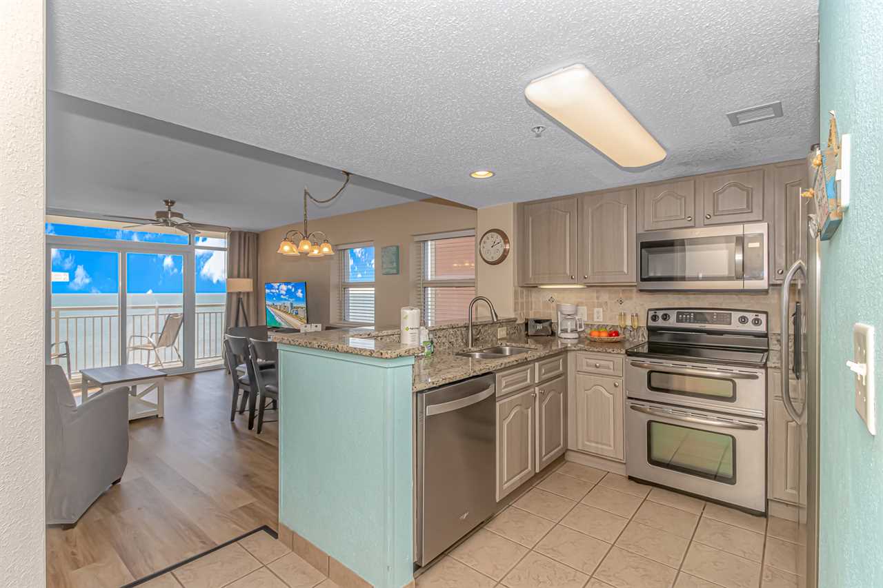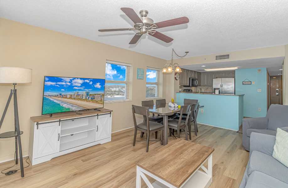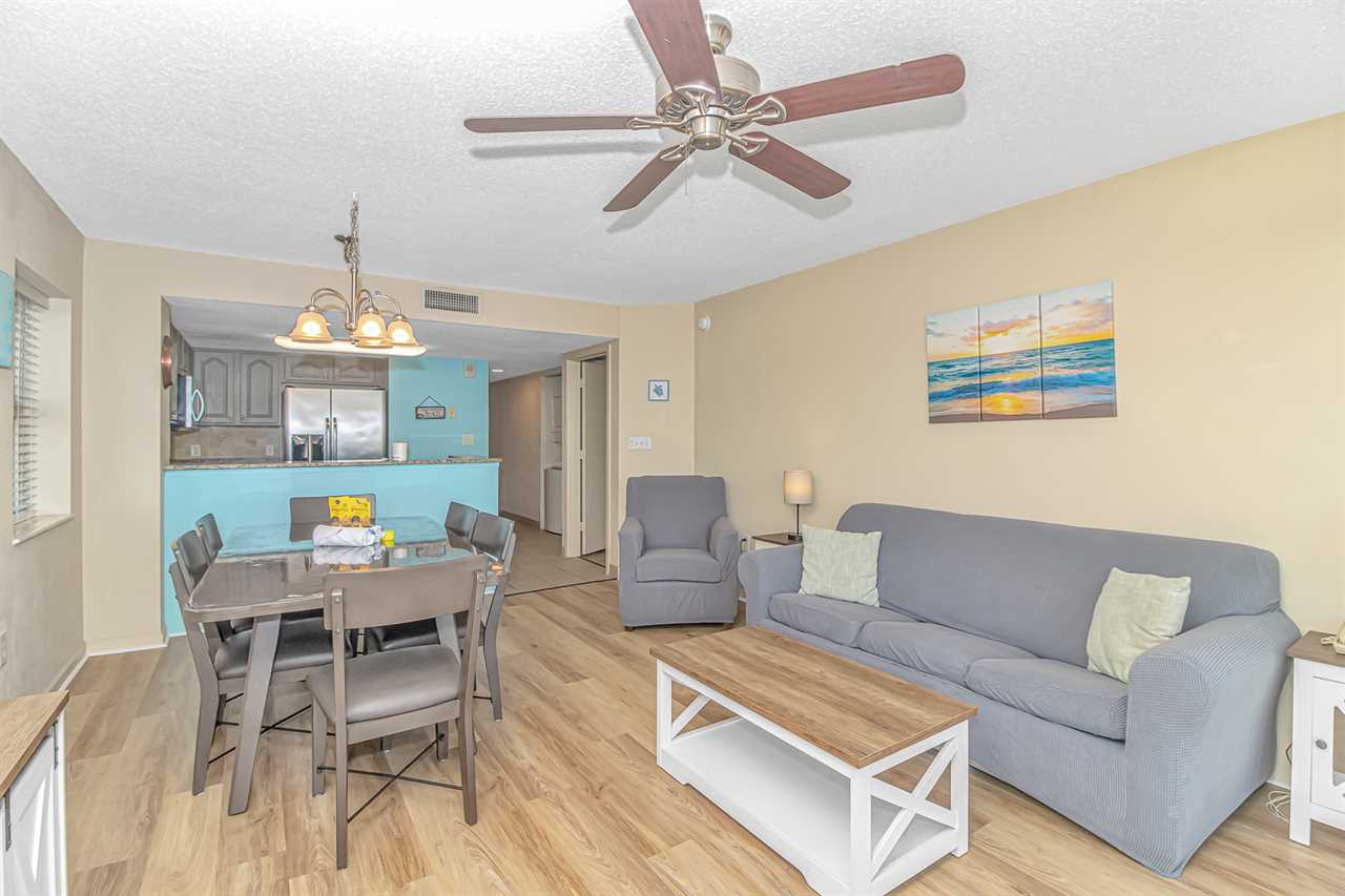 The living room is truly the most relaxing area of the entire apartment. This apartment was beautifully decorated, and the fresh paint and beachy decor are great touches that really make this rental one-of-a-kind! The sofa converts to a queen-sized sleeper sofa.