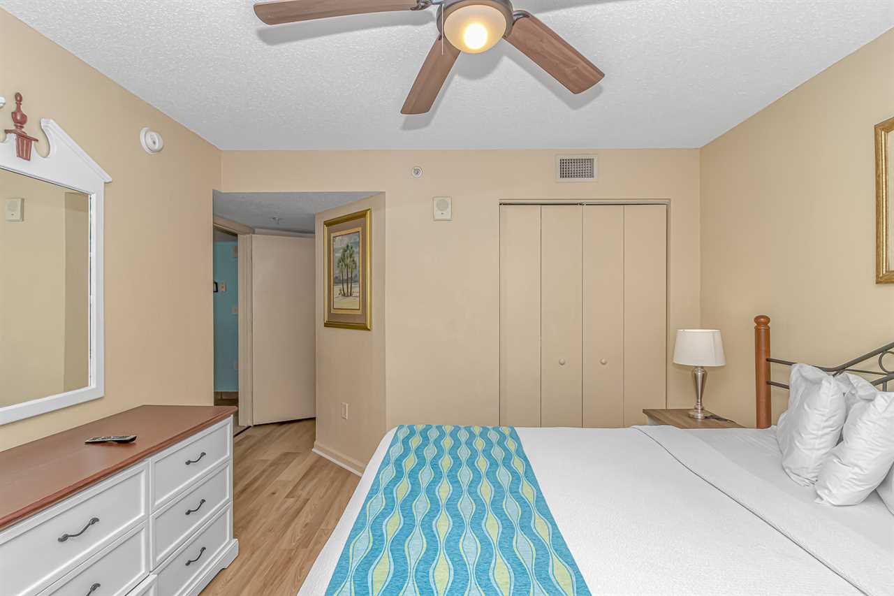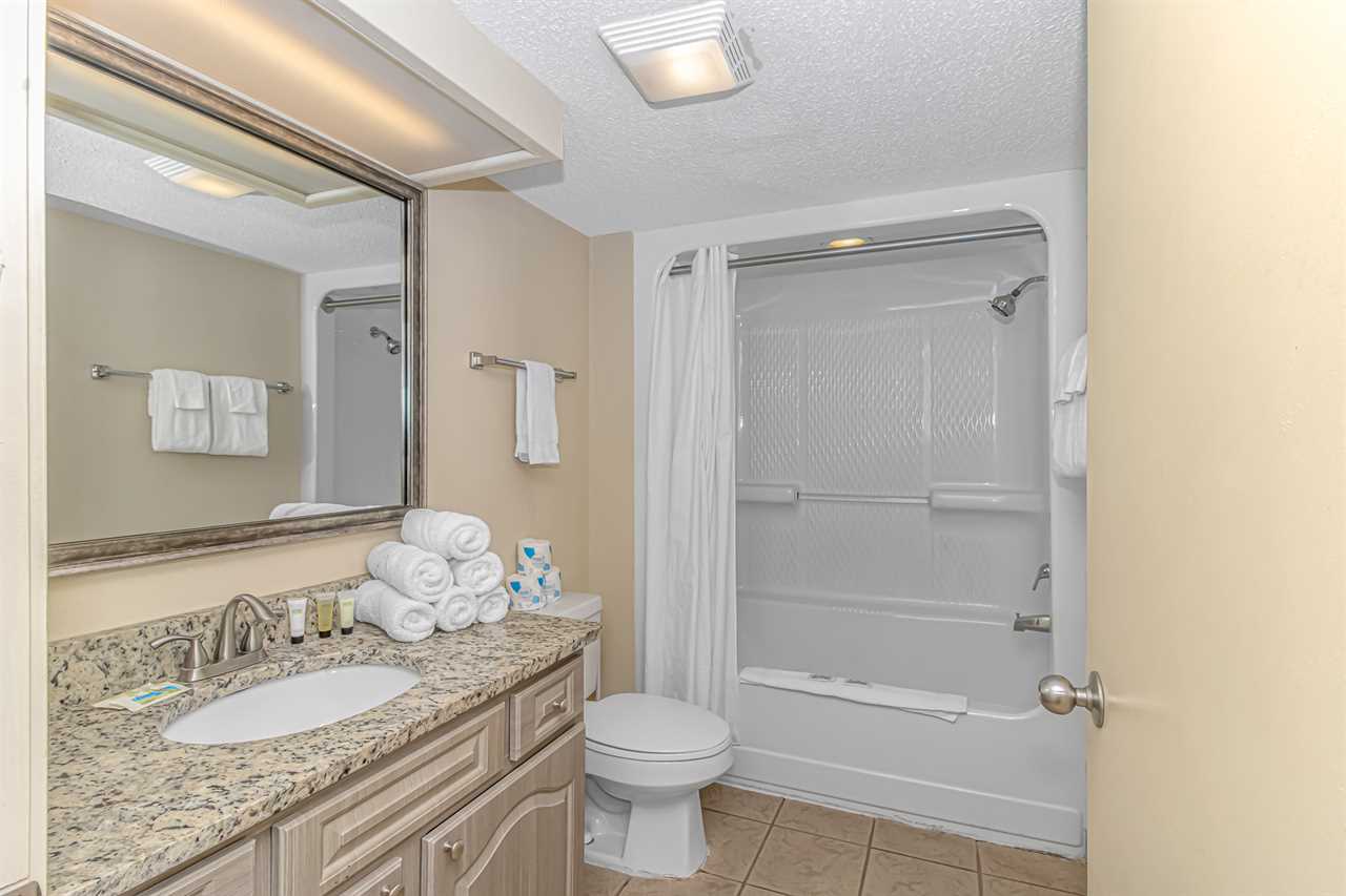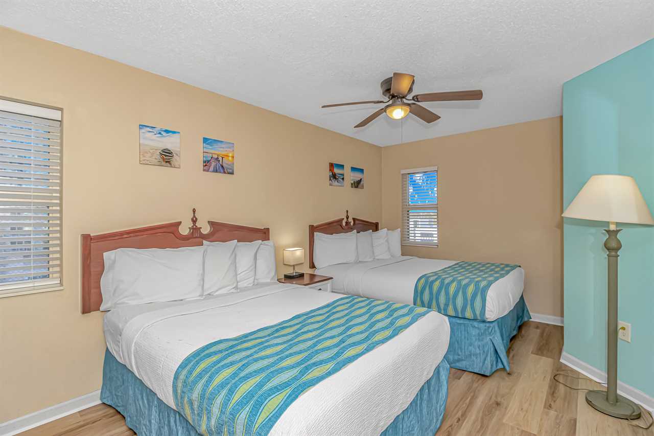 This unique layout offers ample living space for our guests. Other rentals at the resort are much smaller, but this layout features an open floor plan and doesn't feel cramped! The guest bedroom is the first bedroom on the right and features 1 full-size bed and 1 queen size and access to a private bathroom. Just down the hallway, the master bedroom offers 1 king bed and access to a full bathroom. This bedroom also includes access to the main oceanfront balcony, which is also accessible from the living room.