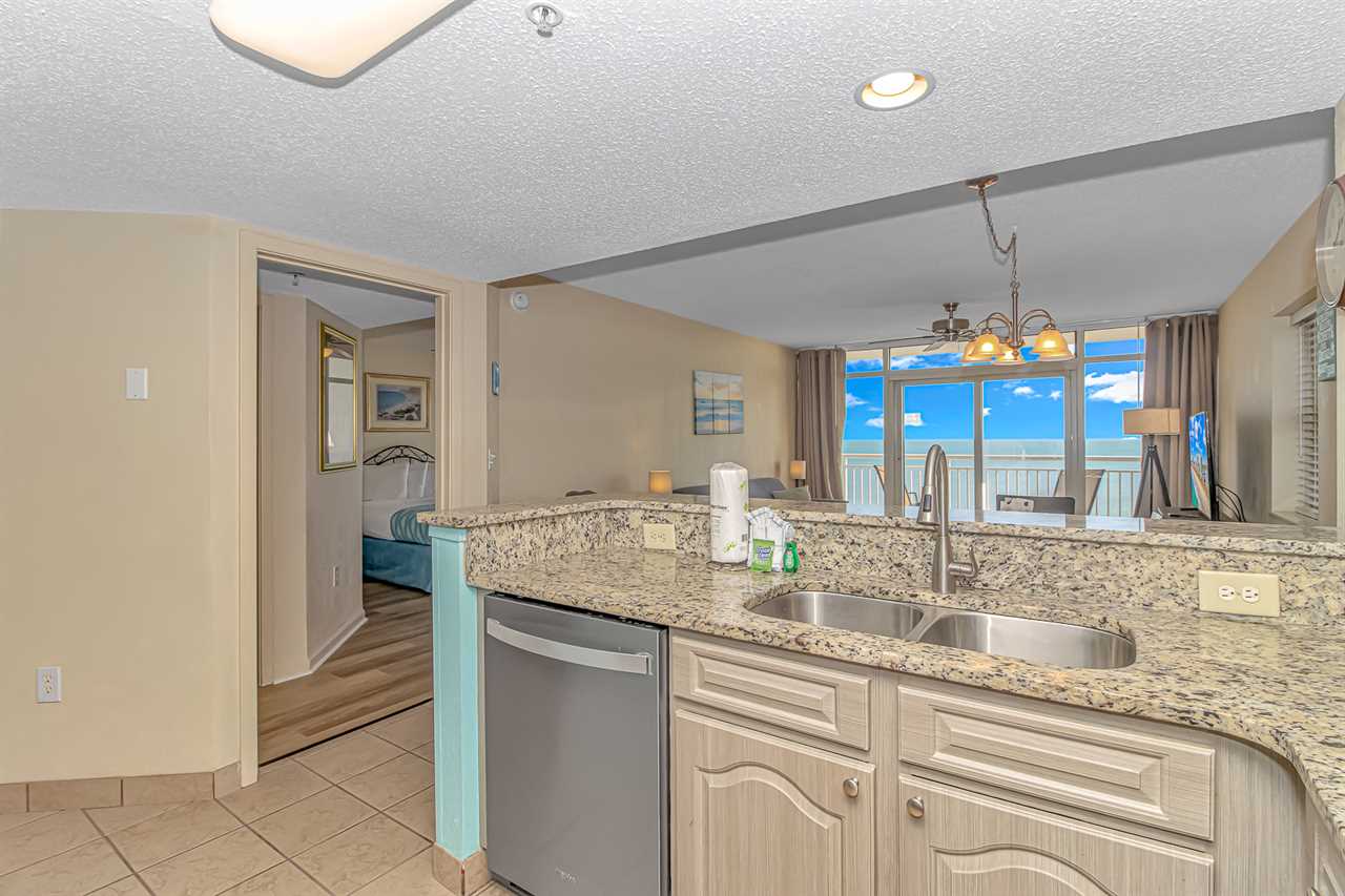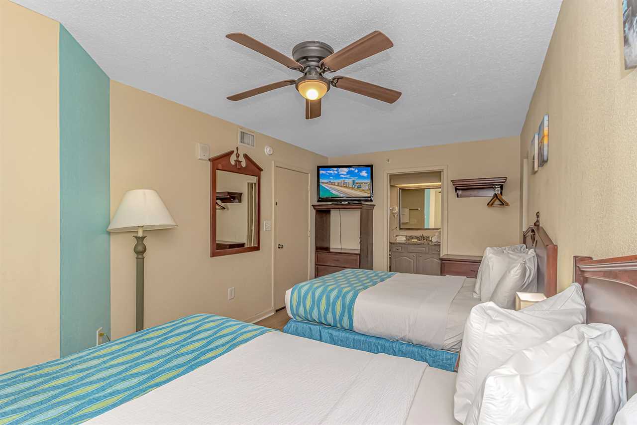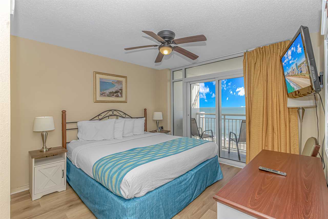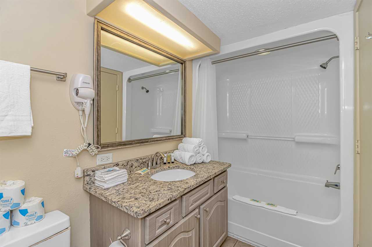 This unique layout offers ample living space for our guests. Other rentals at the resort are much smaller, but this layout features an open floor plan and doesn't feel cramped! The guest bedroom is the first bedroom on the right and features 1 full-size bed and 1 queen size and access to a private bathroom. Just down the hallway, the master bedroom offers 1 king bed and access to a full bathroom. This bedroom also includes access to the main oceanfront balcony, which is also accessible from the living room.