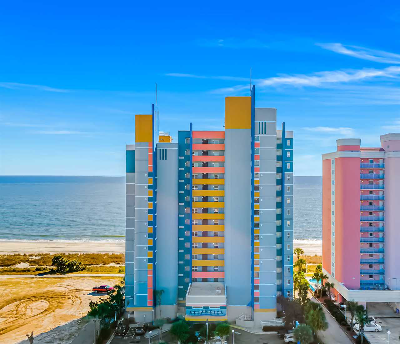 The Atlantica is a high-rise resort complex located on North Ocean Blvd in Myrtle Beach, SC. This resort is only 2 miles from the MYR International Airport and the Coastal Grand Mall. A brand new shopping and dining complex just opened around the corner, and it features several dining, shops, and attractions. If this weren't enough, this unit is also located just a couple of blocks from the Myrtle Beach Skywheel and the infamous Myrtle Beach Boardwalk! Our guests love the location and proximity to the attractions, shopping, dining, theaters, mini golf, go carts, golfing, fishing, and so much more! Our guests also have access to free parking and beach access.