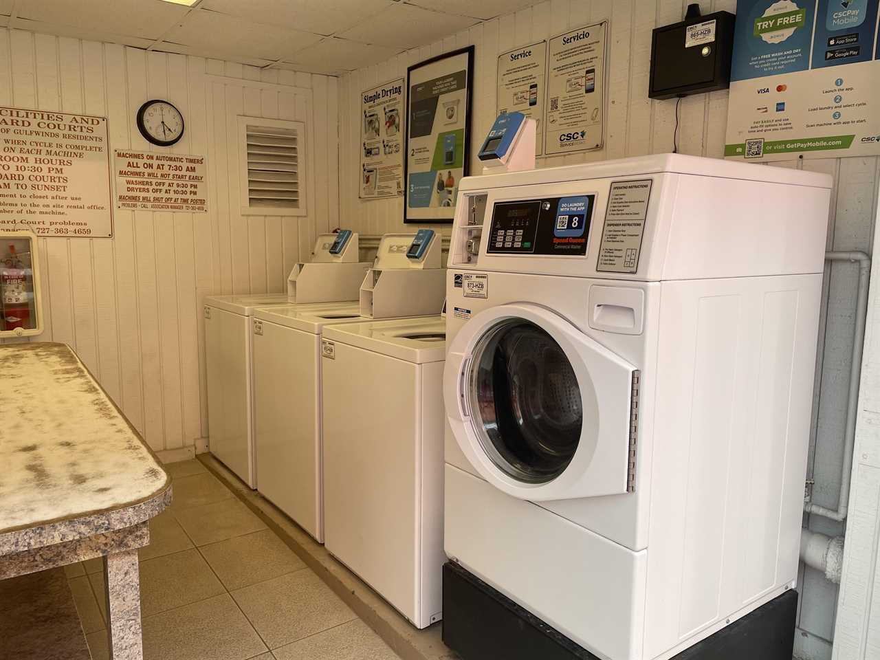 There is onsite laundry with eight machines. The laundry room is clean and well maintained by property management. You can pay using coins, card, or using an App. This is such a convenient amenity when staying at the beach.