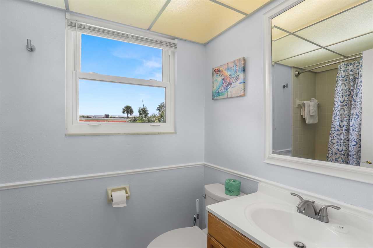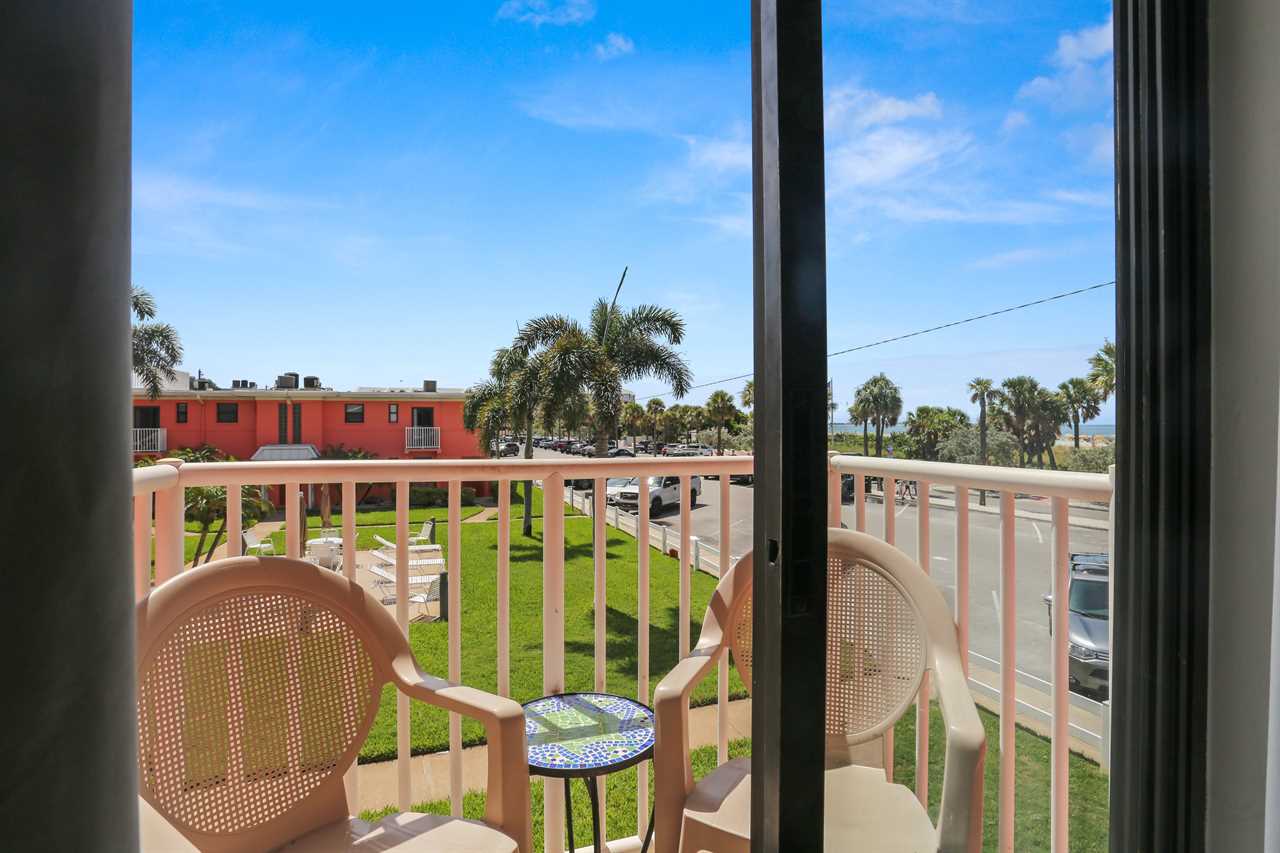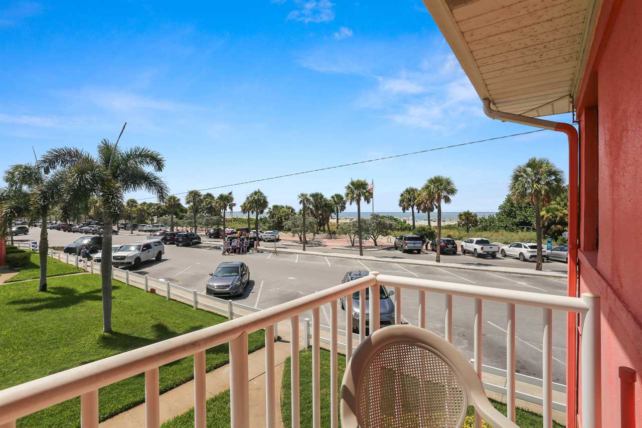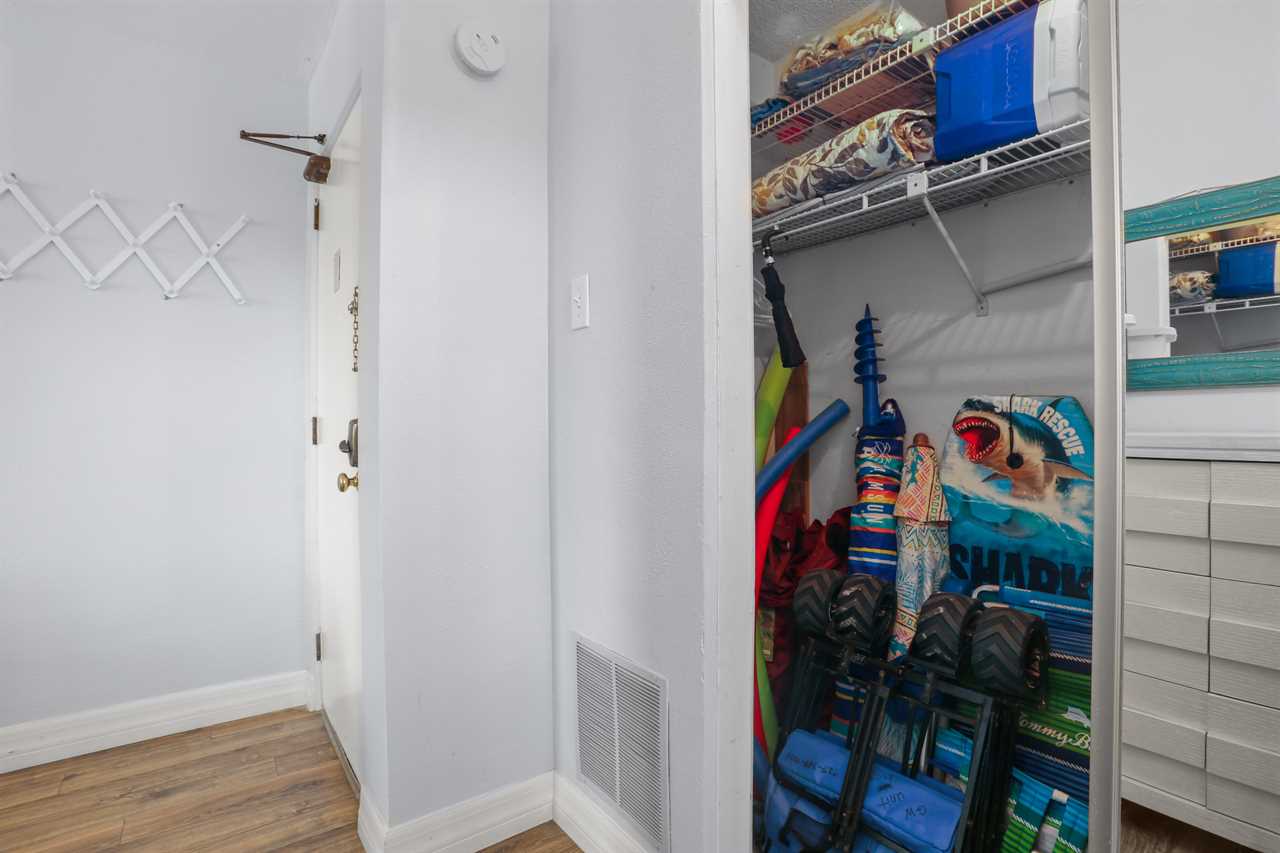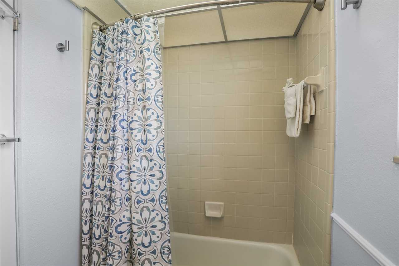 When you walk into the unit, there is a sitting area with a 50" Samsung Smart TV that swivels towards the bed. It is a studio, but feels spacious and comfortable. To the left of the sitting area is a dressing area leading to the bathroom with a large dresser and mirrored closet. This area offers private space for getting dressed away from the main area of the condo. Walk past the sitting area to the main area of the condo. There is a nicely-equipped kitchen with clean appliances and dishes, cups, utensils, and cookware. There is a dining area with views of the beach. There is also a private balcony. This condo is so bright and sunny.