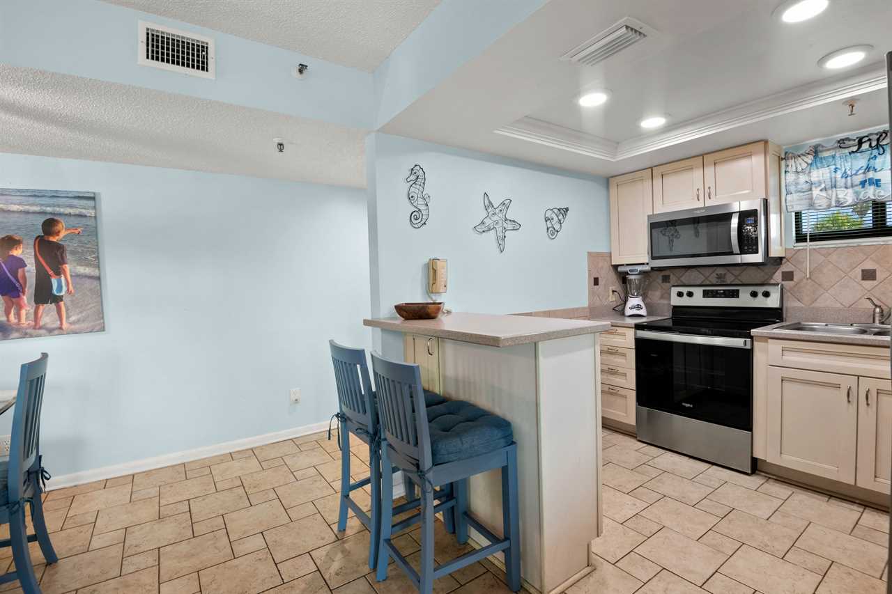 - Kitchen β Full-size appliances, solid surface countertops, drip coffee maker