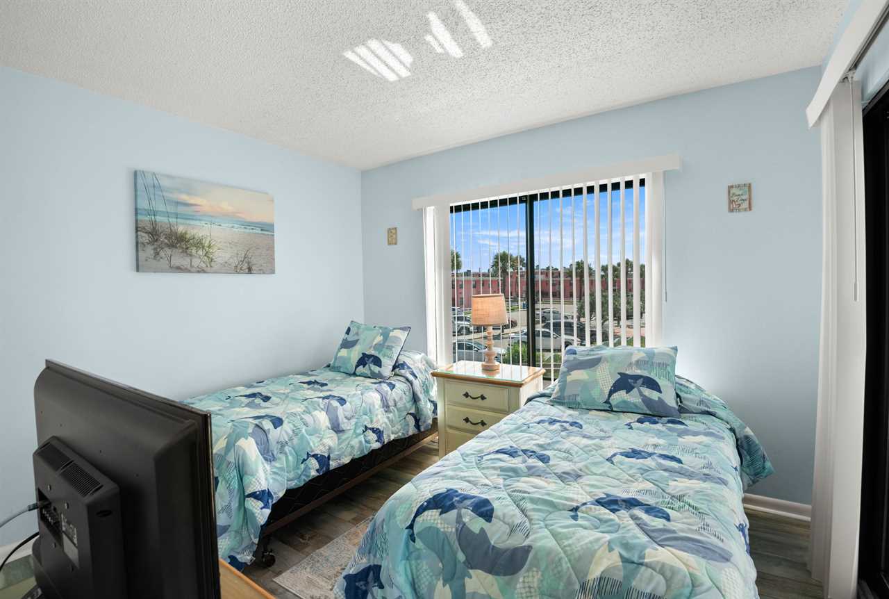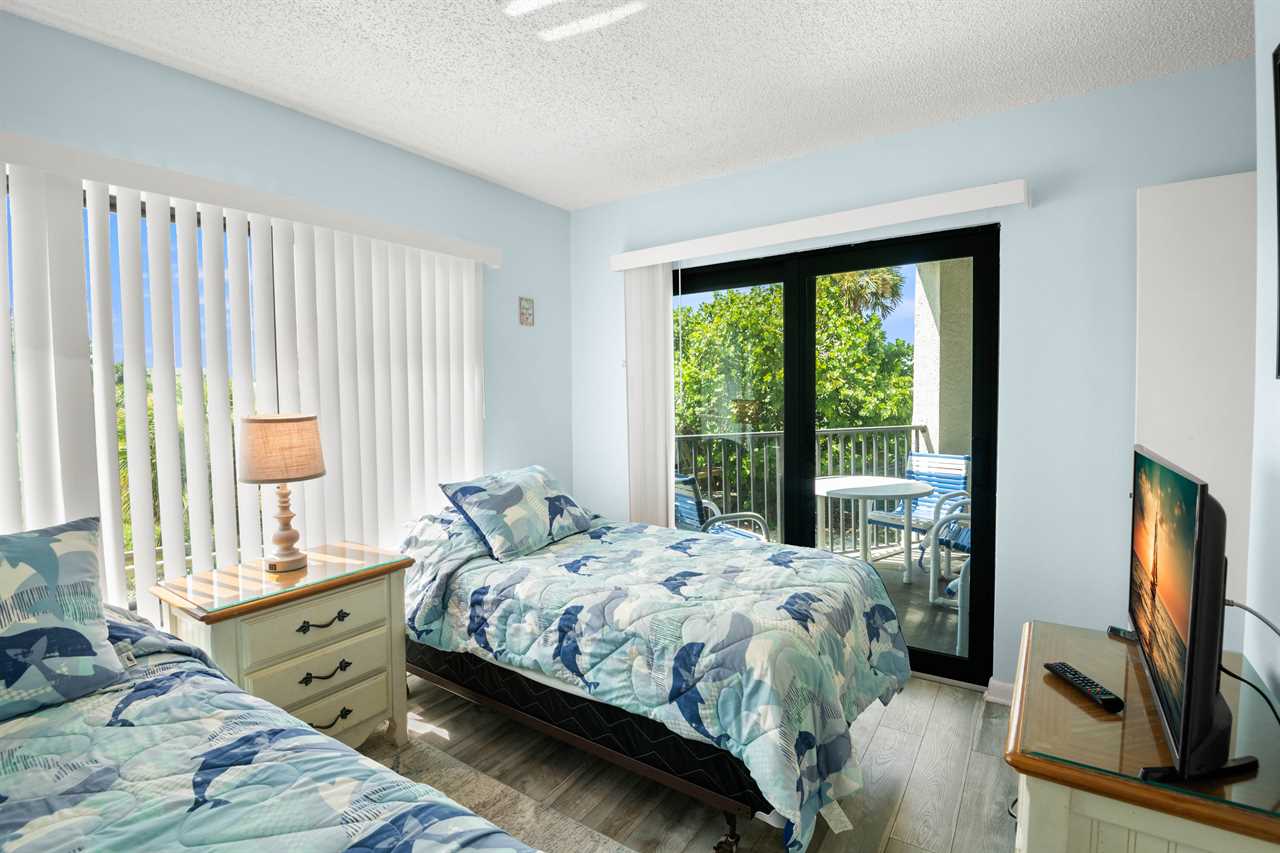 - Second Bedroom β Two twin beds, 19β flat screen TV, balcony access, water view