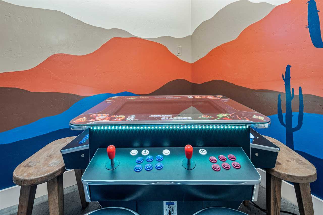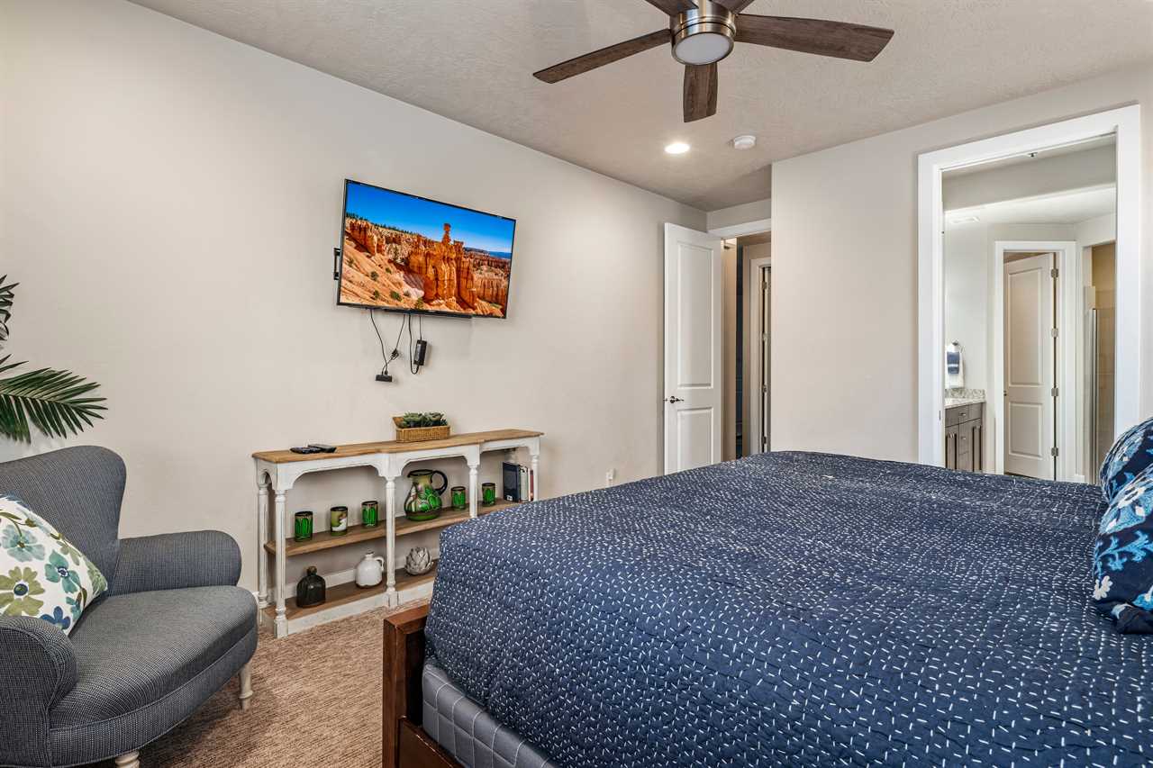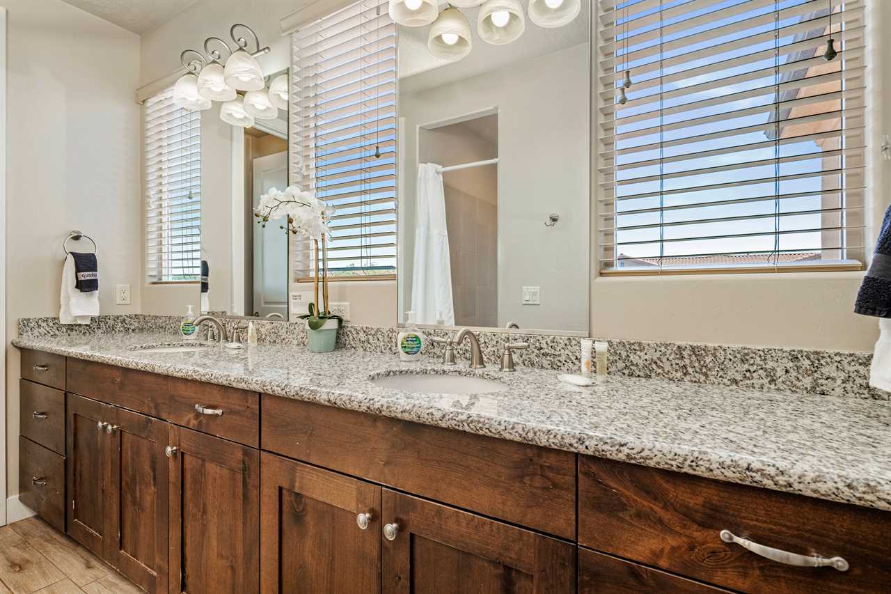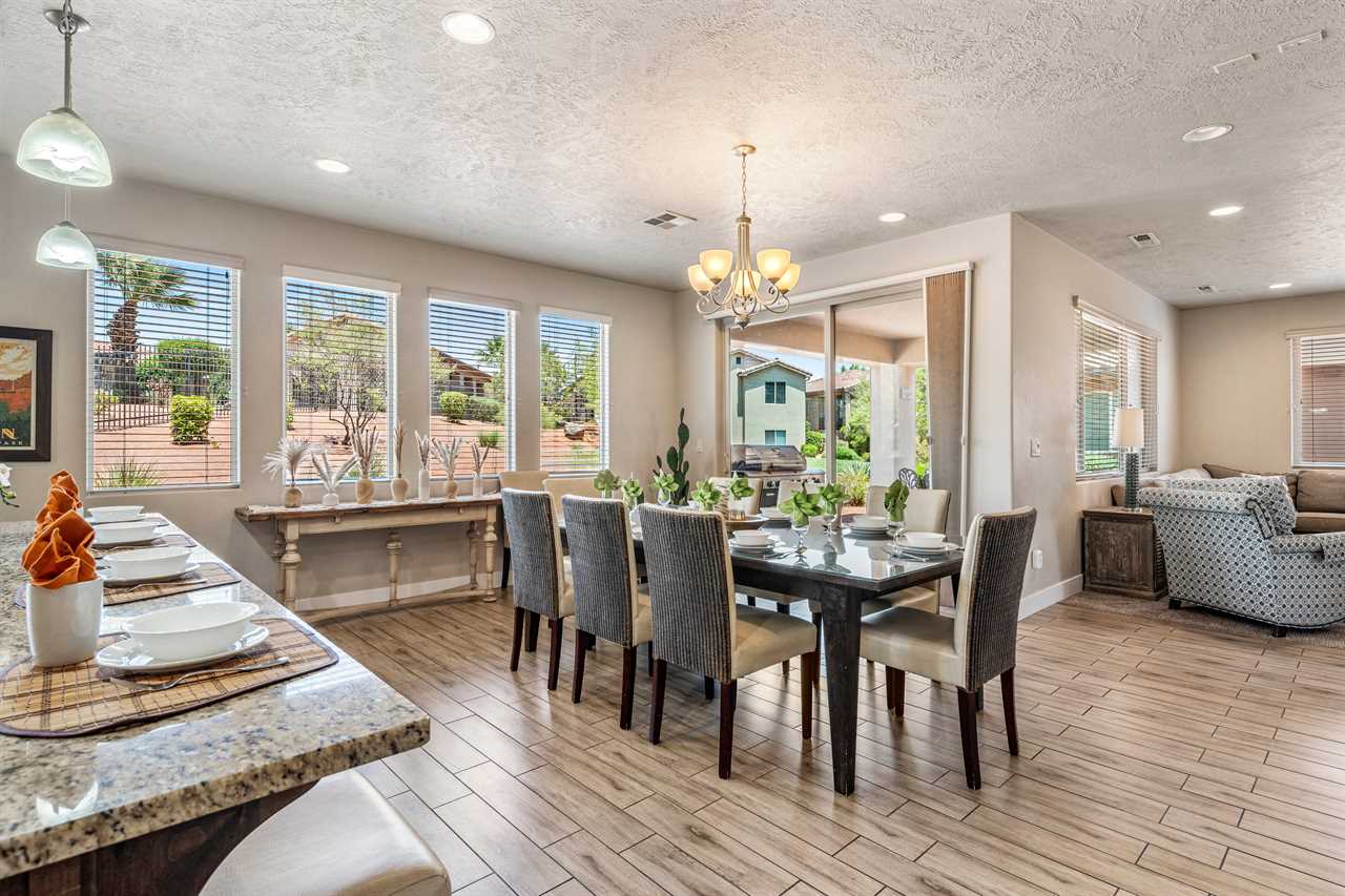Poolside Paradise is a beautiful 4 bedroom / 4 & 2 ½ bath home that can comfortably accommodate 12 guests or up to 20 guests with the assistance of 3 queen air mattresses. The expansive fully equipped kitchen, grill, indoor & outdoor dining, and outdoor lounge areas make hosting family & friends a breeze. Spend your days lounging next to Paradise Village's resort-style pool or swimming at their waterpark! Take off for a day trip to one of the National or State parks within a close drive to explore the beauty Southern Utah has to offer. Back at home, challenge each other to ping pong, foosball, and Nintendo switch tournaments. Evenings will quickly become your favorite time of day as you lounge in the hammock on the balcony while watching the sunset over the desert mountains! Grab a bowl of popcorn and settle in for a cozy movie night, with two living rooms, each with a Smart TV, everyone will be able to find a movie they can enjoy! Whether you are adventuring through Southern Utah, lounging poolside, or competing in a ping pong tournament, you will find your own personal paradise at Poolside Paradise!