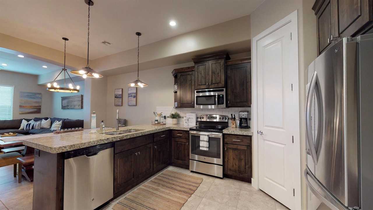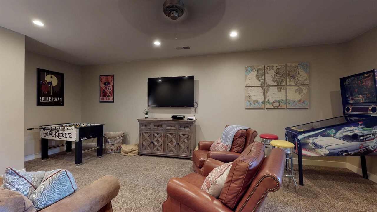 Enjoy this fully equipped kitchen with all the luxuries of home. Featuring granite counter tops, stainless steel appliances and a large dining room table there is plenty of room to entertain family and friends. There is also additional seating on the back patio off the main level living room. The living room features a flat-screen TV. The second upstairs living room has a flat screen, Pin Ball Machine, Foose ball, and game table to enjoy as well as a variety of games.