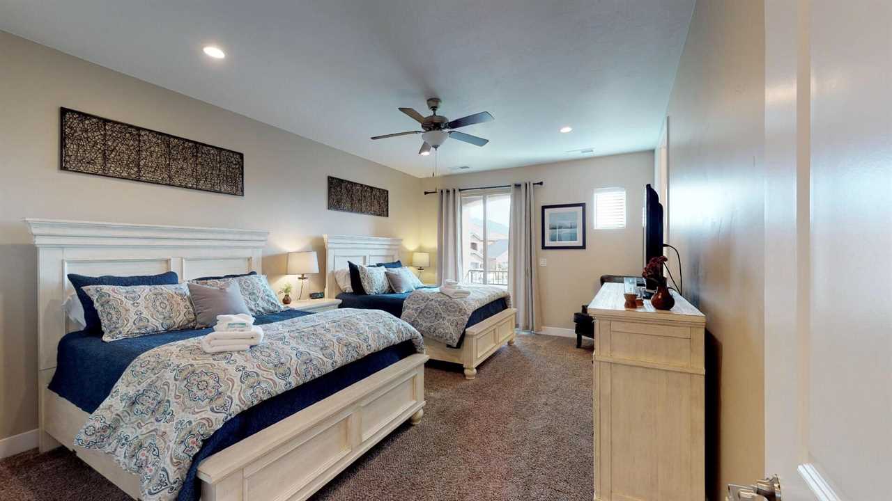 This beautiful St. George Utah Vacation Home is located about 5 minutes from Sand Hollow State Park and only 32 miles from Zion National Park. This beautiful property is the perfect St. George, Utah Vacation Home. Featuring stylish décor and a private entrance. Enjoy access to two heated community swimming pools and hot tubs, putting green, clubhouse, and a fitness center. There is also a fishing pond located across the street from the community.
