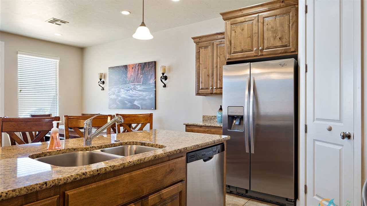 This home is located in the Coral Ridge development. The community has a gorgeous pools equipped with a waterfall and two Jacuzzi hot tubs and are all provided to enhance your stay. Right outside of the development is Razor Ridge Park that has a fishing pond stocked by the Utah Division of Wildlife Resources.