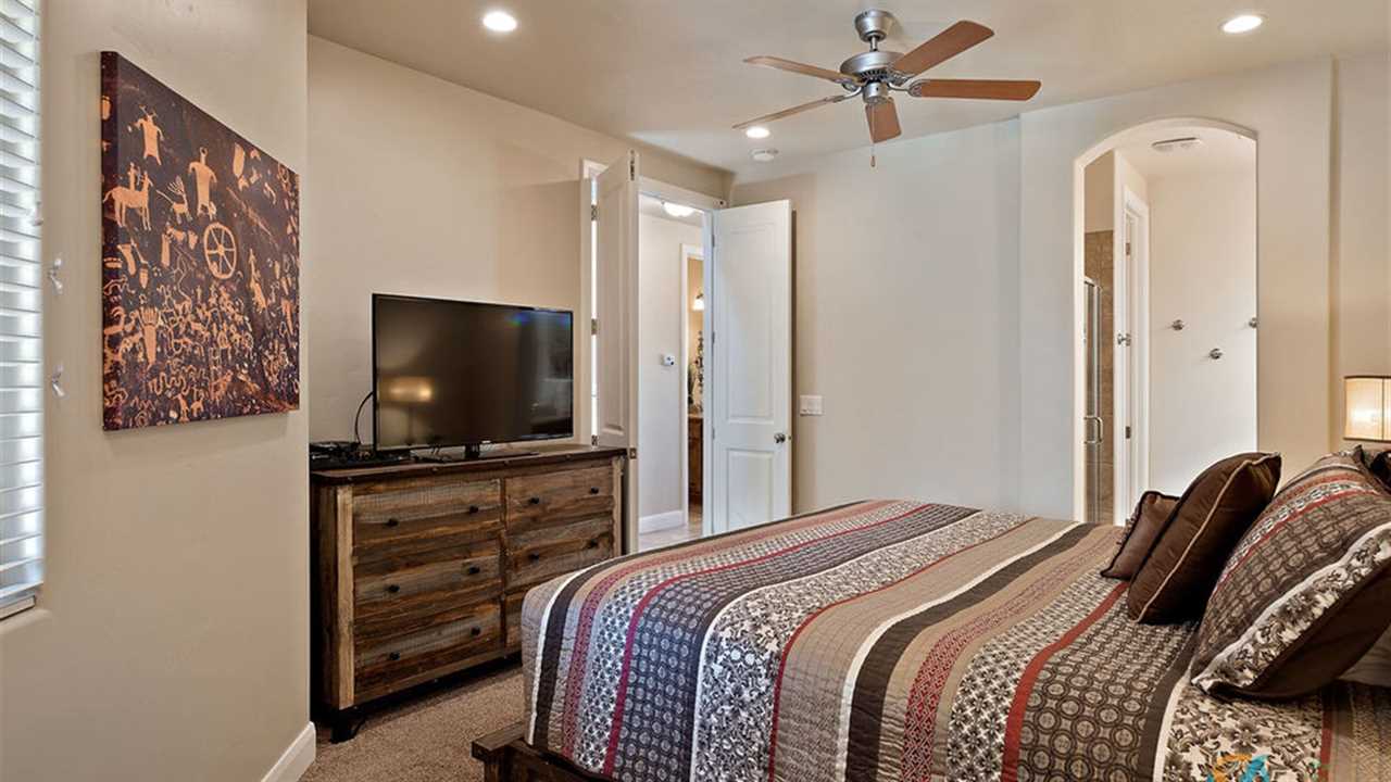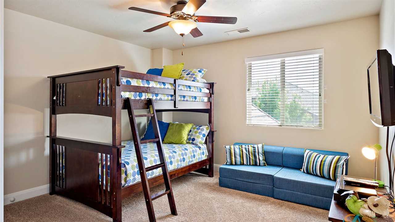 This spacious vacation rental in St. George, Utah provides both luxury and a fantastic location. This townhome has four bedrooms; a master suite with a king size bed, a second bedroom with a Queen bed, a third with a queen and a fourth bedroom with a full over full bunk bed. Also, two air mattresses and mats provided. All bedrooms have tv's.