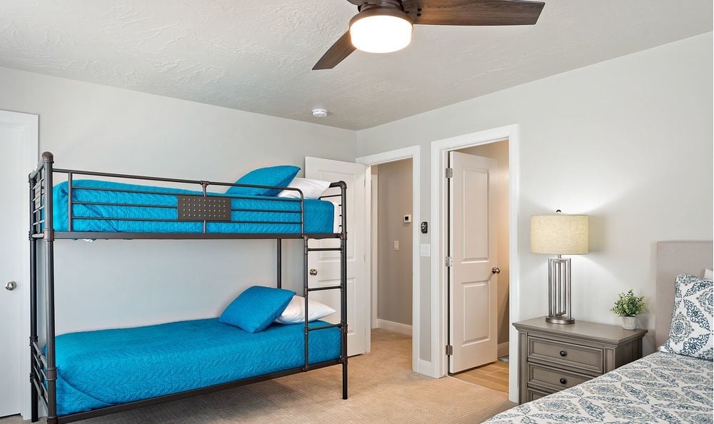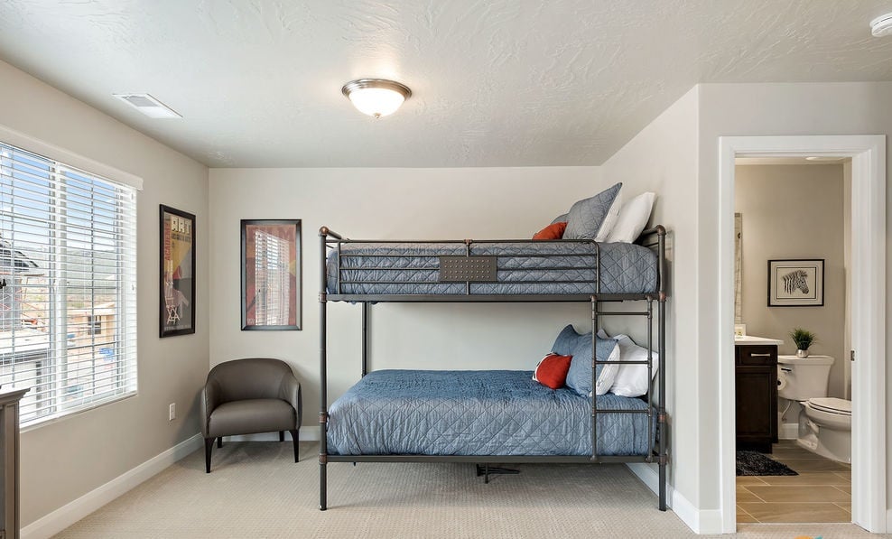 Bedroom Two: Features a Queen suite with ensuite bathroom with tub and shower combo. Also features a Twin over Twin Bunk Bed.