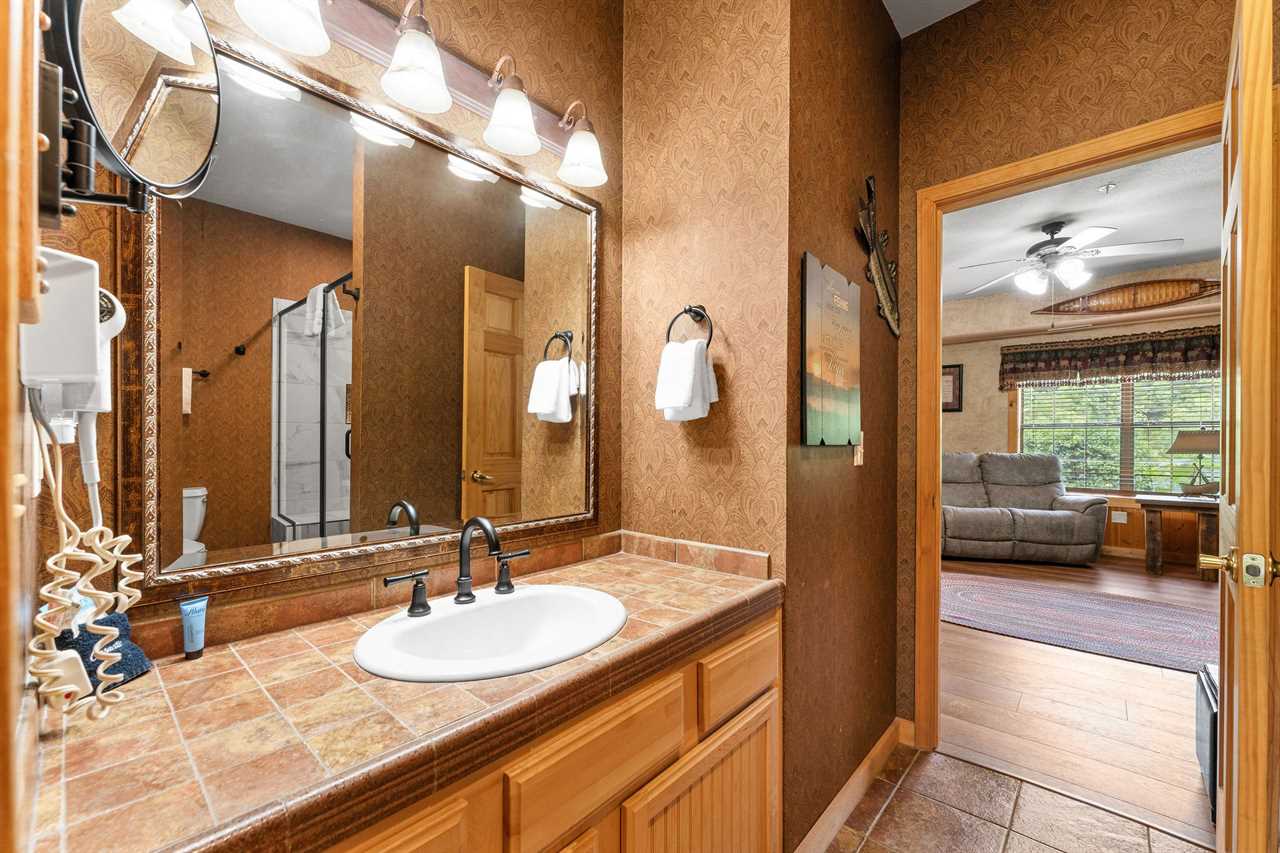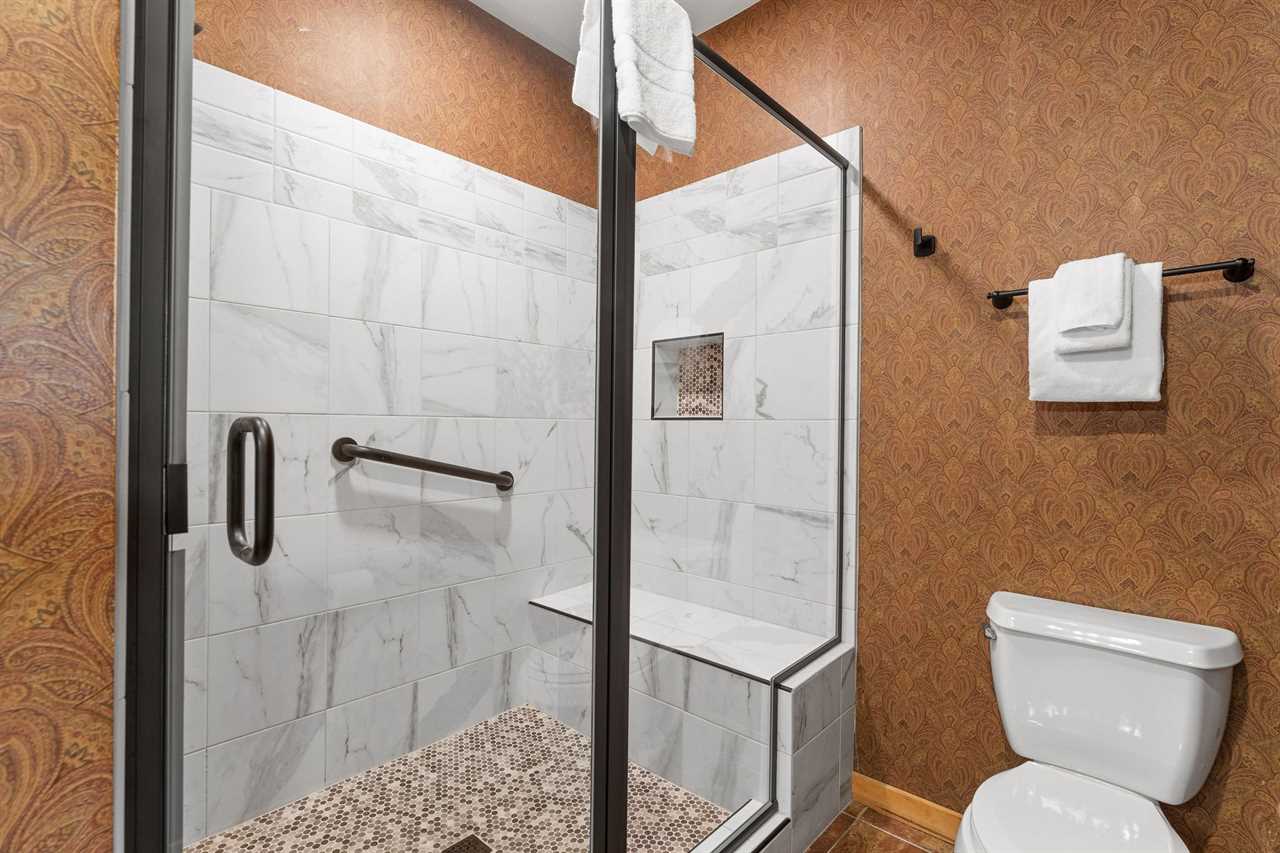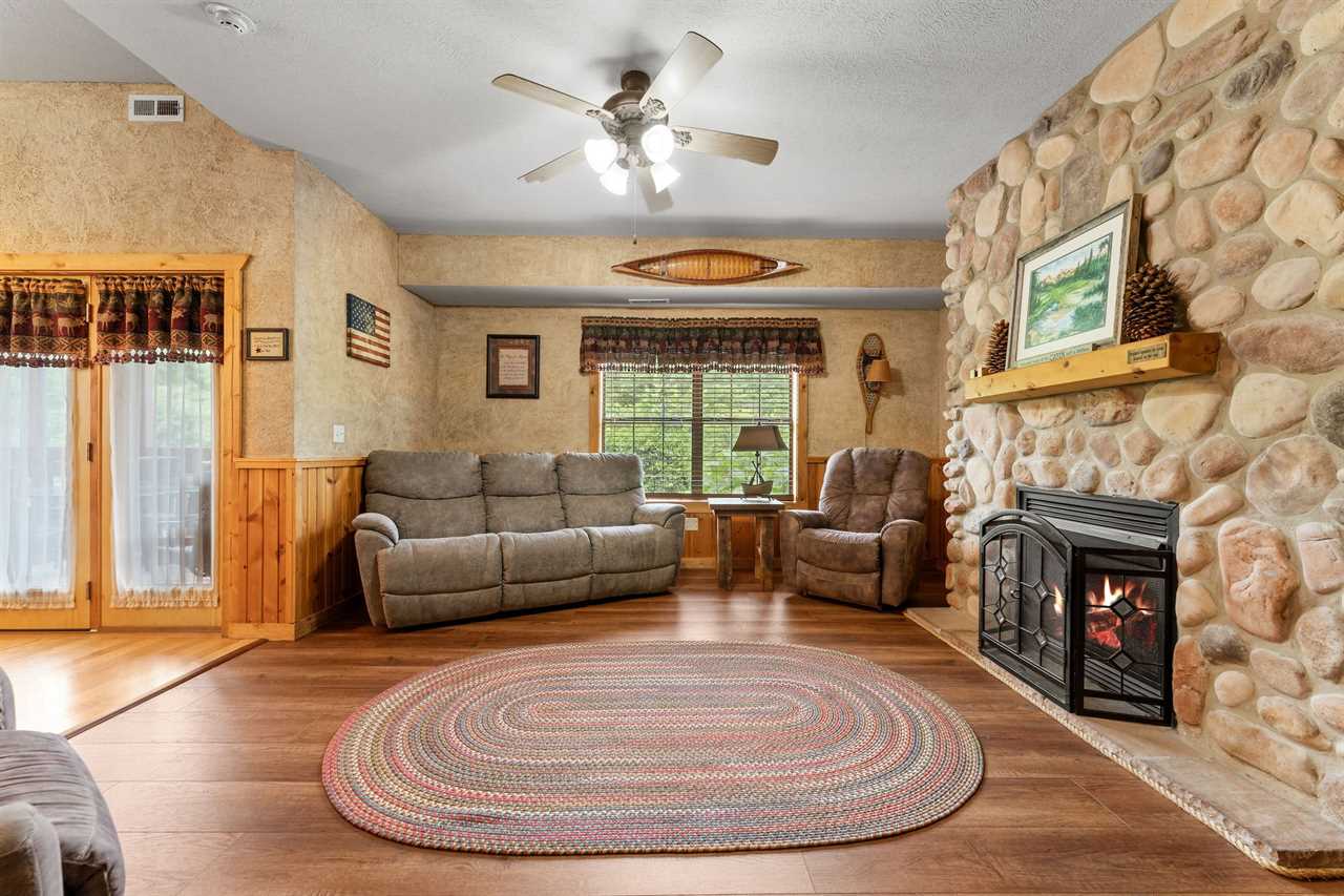 The living area is built for comfort with a standalone recliner plus a reclining sofa with two built-in recliners — four total. Relax by the gas fireplace, enjoy a movie night, or step onto the private, screened-in porch to soak in the wooded serenity.