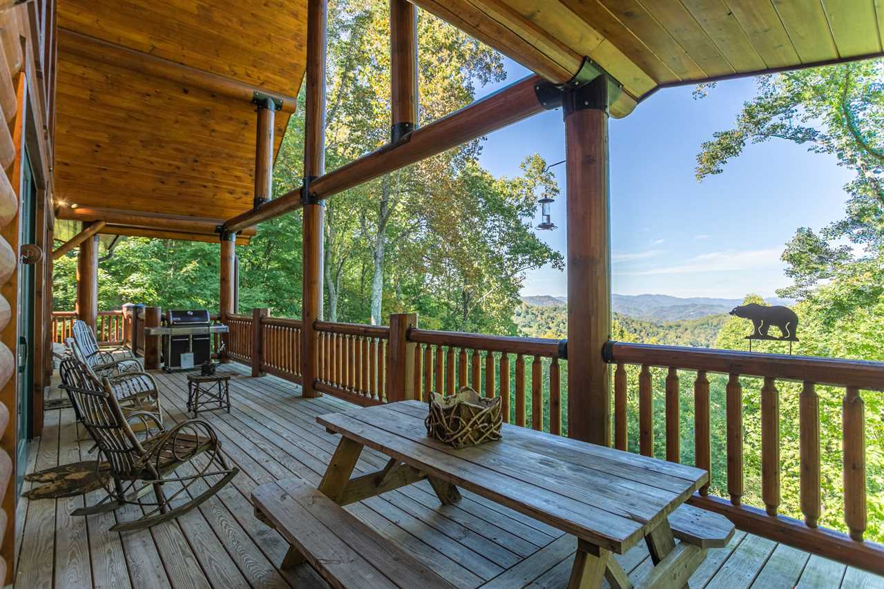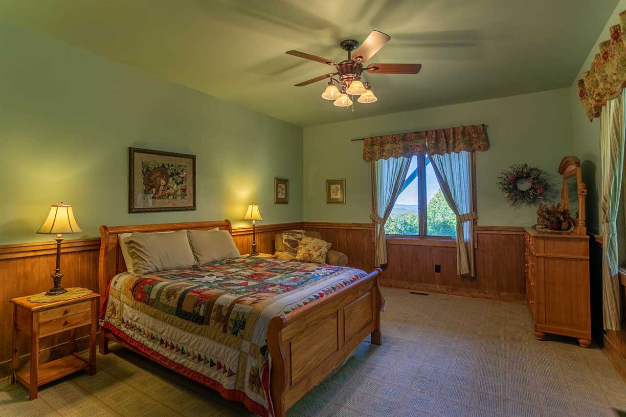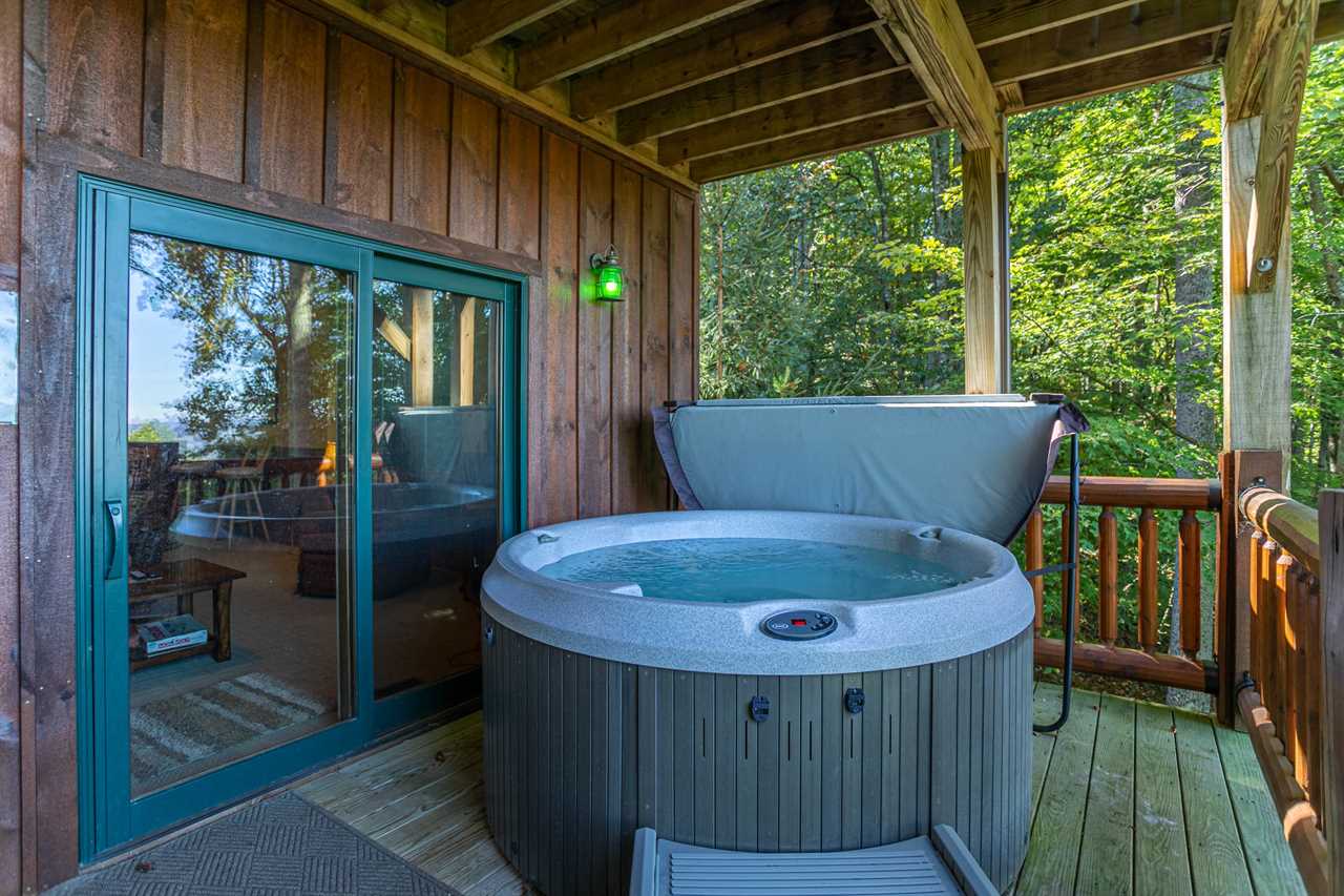 The lower level has voluminous 9 ½ foot ceilings and contains an additional spacious and beautifully-appointed country chic master bedroom with a queen bed and comfortable sitting area. There is a private room for the kids with Foosball table, and many sleeping options: a full, three twins, and a twin trundle. There is a large master-style bathroom with double vanity and glass-enclosed tub/shower and, to relax and entertain the guests, an enormous, deluxe recreation room with a Minnesota Fats pool table, a 52” flat screen HDTV and its own private covered deck with sumptuous hot tub overlooking the distant mountains. Who could ask for more in a North Carolina mountain retreat?