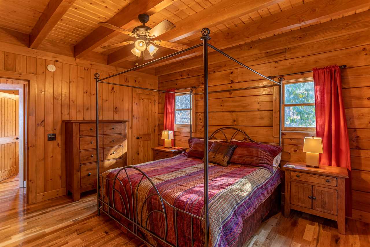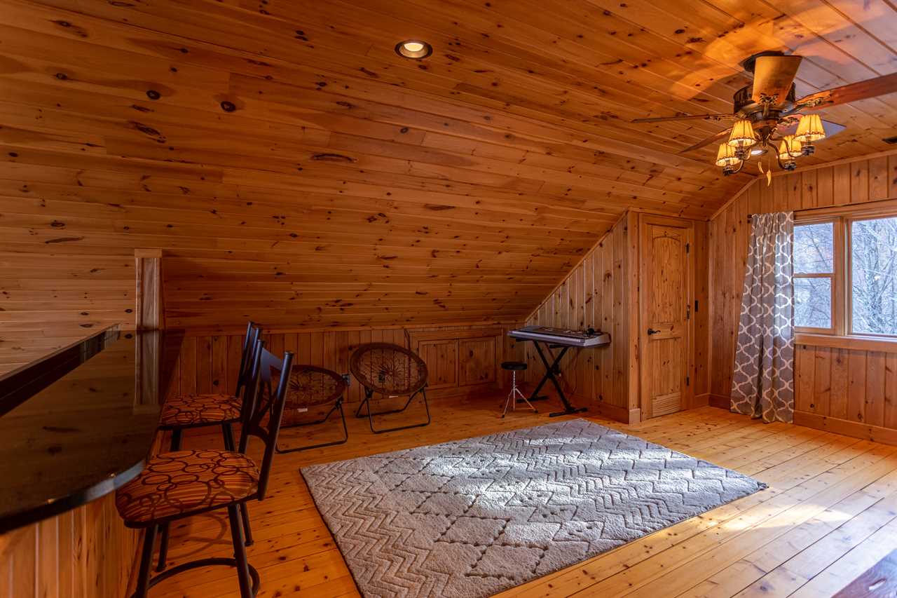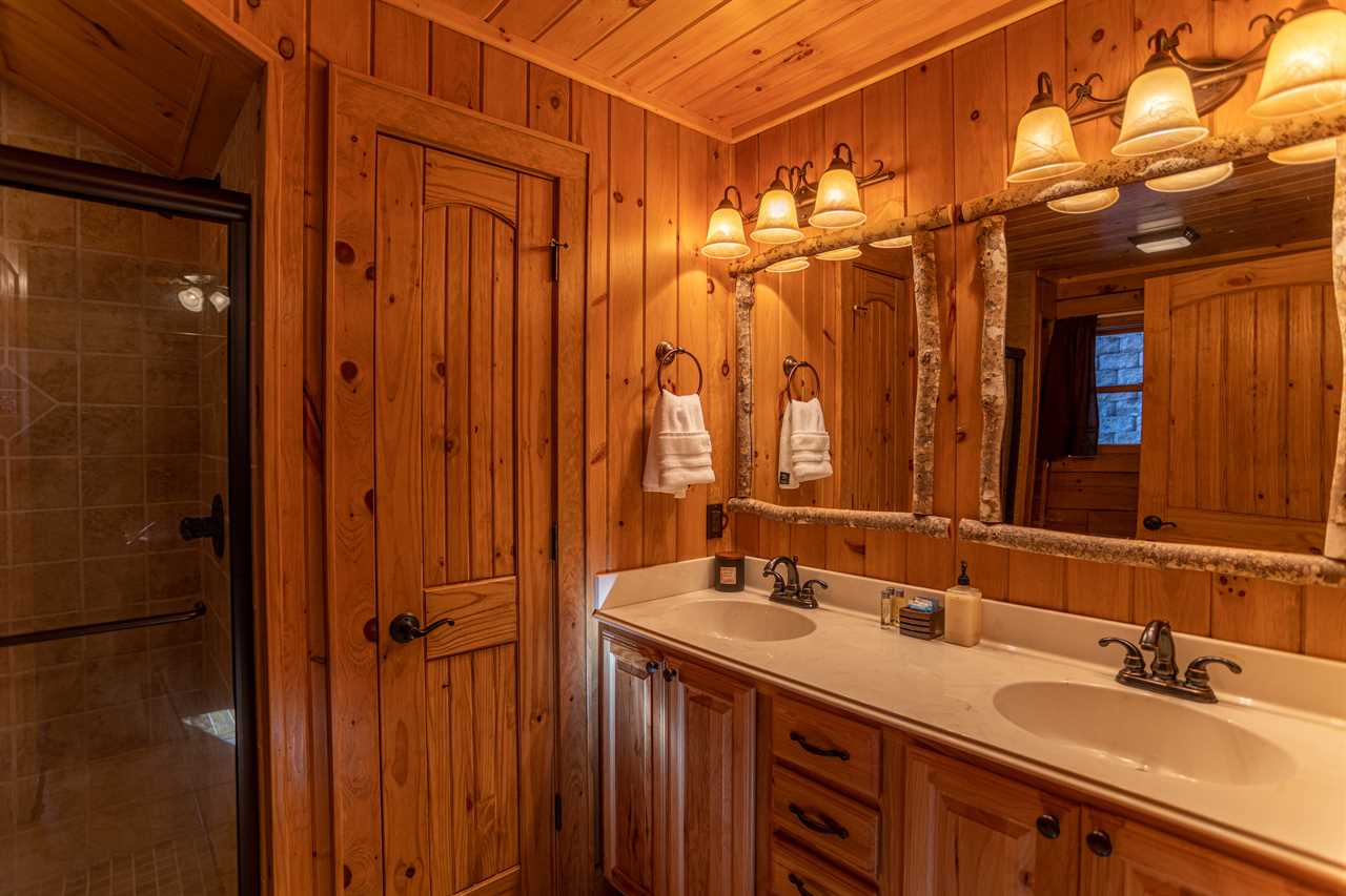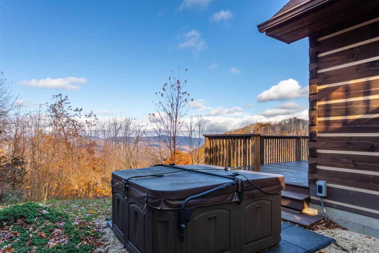 Both bedrooms are on the main level of the home, which is about 15 steps down from the front door entrance. One bedroom has a king bed and a full bathroom with a tile shower. The other bedroom has a queen bed. The second bathroom is just outside of this bedroom, in the hall. Upstairs, you will find two more twin beds in the loft along with another full bathroom. The outside grounds are likely to be your favorite feature of Faraway Skies. Just a short walk from the deck you will find a hot tub as well as a fire pit. Another perfect area for the family to spread out and enjoy the cool mountain evenings.