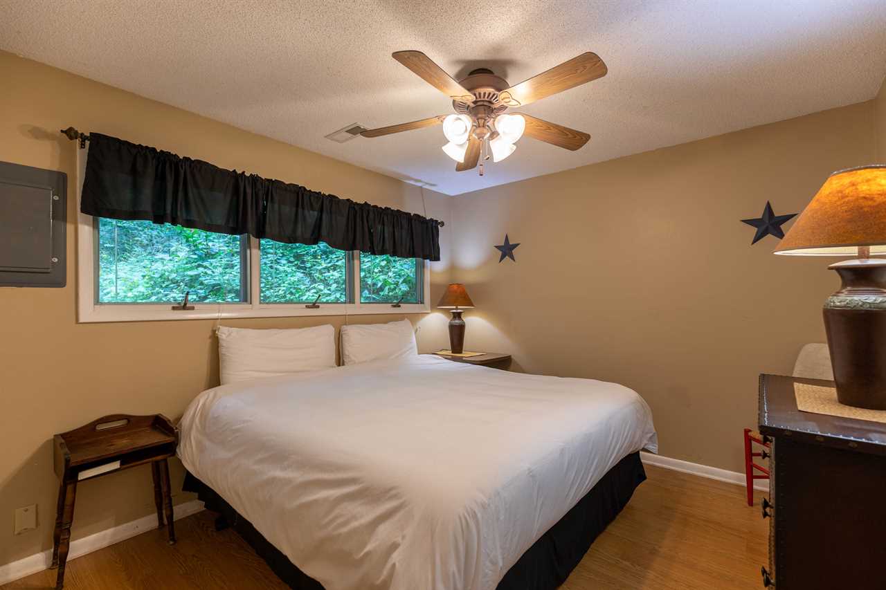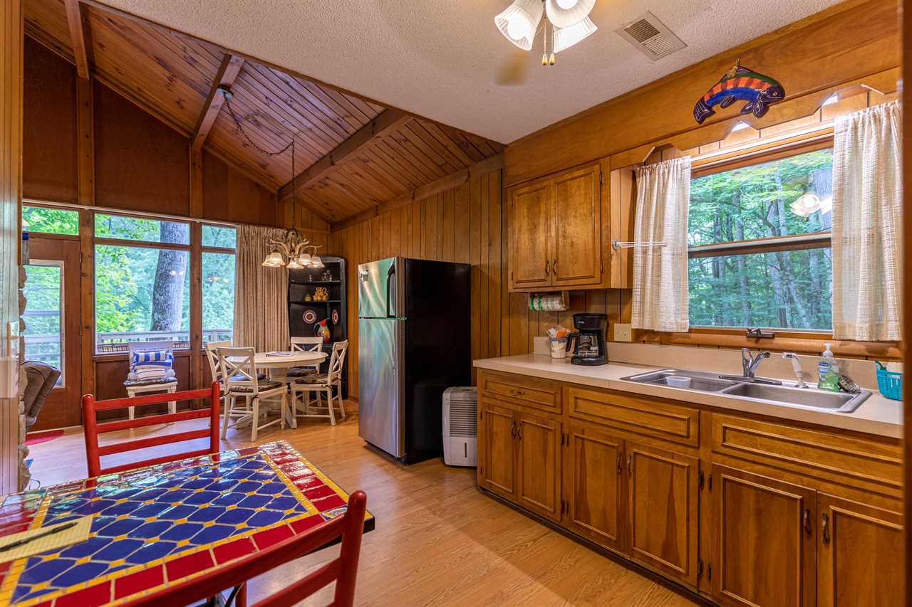 From the moment you drive across the low-water bridge that leads to the cabin, you'll know you have found a little piece of paradise. River's Edge is tucked away in the woods on the river. It's wooded in the back and the front has a small lawn area/river beach with a campfire ring perfect for the late evenings by the water.