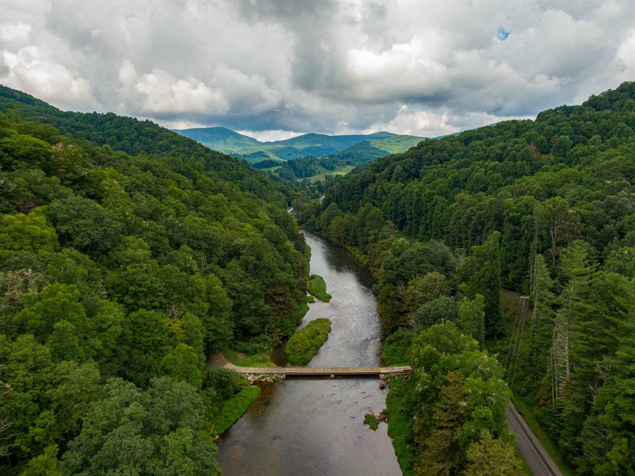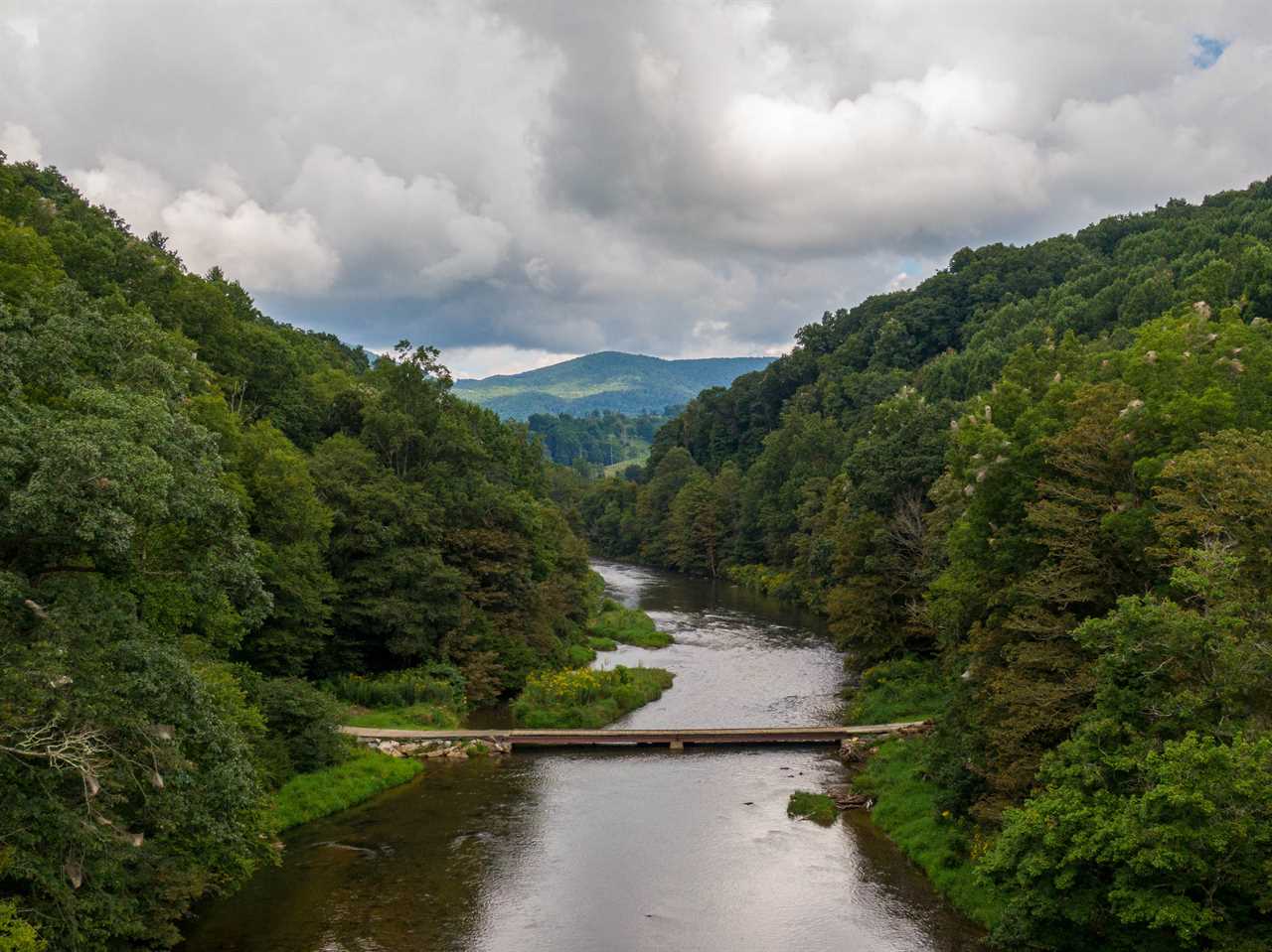 This unique cabin is located on a gated 30 acres at the waters edge on the South Fork of the New River.