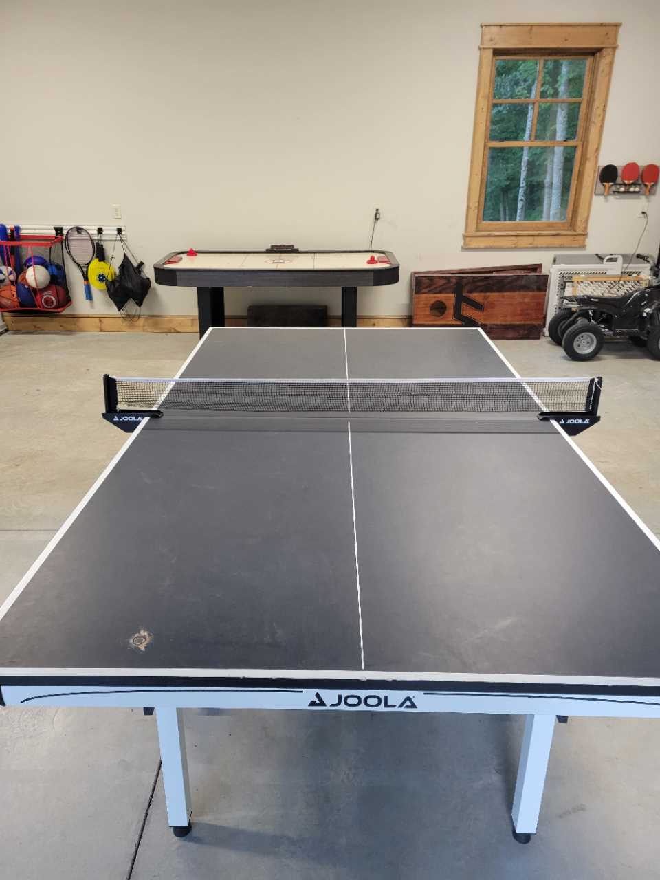 Board games, puzzles, toys, air hockey, ping pong, and an abundance of outdoor recreation equipment (footballs, tennis rackets, basketball, soccer, wiffle ball)