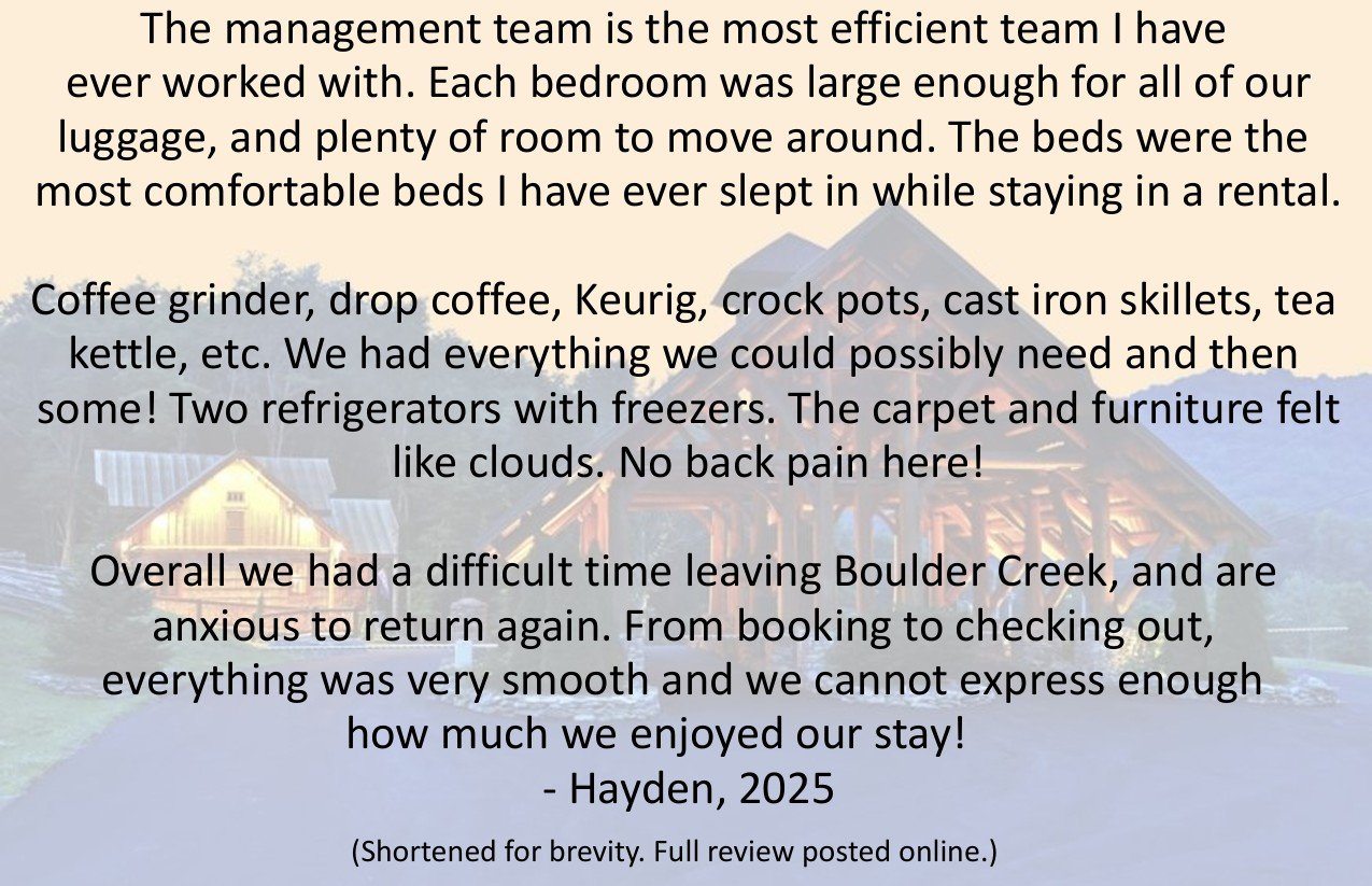 Boulder Creek – An upscale Eagles Nest Mountain Escape!