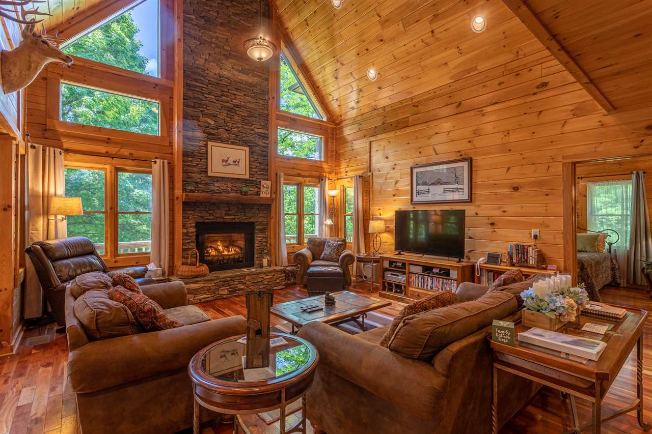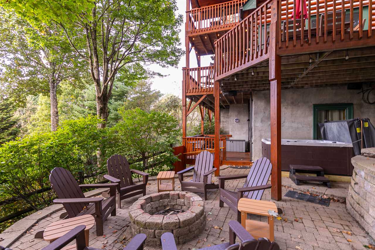 ACCOMMODATIONS: Windswept Vistas has three bedrooms plus one additional private sleeping area for your enjoyment. Main level: Master King Upper level: Master Queen, Master Queen Lower level: Queen Room, Queen Sleeper in Family Room This open and spacious cabin is located just five minutes from Appalachian State University and historic downtown Boone; and less than fifteen miles from Blowing Rock and Banner Elk. With a relaxing view, cozy gas fireplace, central AC, LED lighting, large firepit area, hot tub, ping pong table, and with a second kitchen – It's always a guest favorite. Sitting atop beautiful Snaggy Mountain is Windswept Vistas – where each of the four sleeping areas has its own deck to enjoy the relaxing views. Throughout the home, Windswept Vistas offers a welcoming and inviting atmosphere. As you enter this cabin, you are drawn to the wonderful views through the many large windows, or the forty foot stacked stone fireplace that is the centerpiece of the open living area. The comfortable leather furniture is both stylish and conducive to relaxing in front of a warm fire for a family movie night; with a bentwood rocking chair for a soothing escape. There is a convenient washroom on this level as well, helping maintain privacy for those staying in the master bedroom. Off to one side of the living area is the dining room, with a large table surrounded by windows to take in the random view of deer and wild turkey. Or step outside onto one of the six decks to a large outdoor dining area and gas grill with rockers for the “grill master” to relax in while keeping an eye on things. Adjoining the dining area is the large, modern kitchen with quality appliances and ample space. There are even some cookbooks available to help get you started, and extra seating at the counter. Across the main level on the other side you will find the master bedroom, with cast-iron king bed and its own deck with log furniture and a relaxing chair swing. As in all the sleeping areas, there are HDTv's and quality linens. The master bathroom is an escape all its own, with large garden tub and separate tiled walk-in shower with multiple showerheads – just think “relaxation.” Upstairs you will find two more rooms, each with a queen bed, HDTv, private deck with log furniture and private bath with tiled shower. Separating the two is the loft, with a comfy chair perfect for curling up with a good book, and a desk with a wired High-Speed internet connection for those working remotely. There are high open ceilings throughout this level as well. The lower level of this home features a large family room complete with its own kitchen, full bath and the fourth room, with private deck. Perfect for someone who wants a little extra privacy, the family room has a seating area, table and chairs to accommodate a meal or game of cards, and a HDTv with surround sound. The bathroom on this level has a whirlpool tub, or step outside and enjoy the stars from the covered hot tub while enjoying a crackling fire in the firepit. For family fun, this home has a ping pong table in the family room, and on the outdoor patio the firepit is complete with comfortable adirondack seating – perfect for roasting hot dogs, marshmallows and making SMORES..or simply enjoying a crackling wood fire. There is also a large fenced area in back to provide a play area for young children, or a convenient and enclosed option for your four legged family members. Windswept Vistas has paved access for all but the last quarter mile - It is plowed in winter, but 4WD or AWD vehicles are required November-March, and chains may also be necessary to access this property in winter months. Firewood may be added at the time of booking or by reaching out to us more than a week in advance. You get two wrapped bundles and a firestarter for $25/night. Thank You for considering Windswept Vistas for your vacation stay! CANCELLATION POLICY - Bookings canceled 60+ days before arrival will receive a refund of the deposit. Bookings canceled between 31-59 days before arrival will receive a refund of half of the deposit. Bookings canceled within 30 days of arrival are not entitled to a refund unless the reservation dates are rebooked to another guest. All bookings are subject to a $50 cancellation fee. - All BRMR homes offer well stocked kitchens with all utensils needed to cook meals. There is also a "starter set" of paper products at the house: a roll of toilet paper per bath, several garbage bags, a small vial of dishwashing liquid, a few tablets of dishwasher detergent, some laundry pods, a roll of paper towels, hand soap, shampoo, conditioner, body wash, and some makeup remover cloths. There are enough of these items for one night, or maybe two. We do not provide hair dryers. Towels and linens will be provided - Check in is after 4pm and check out is by 10am - Must electronically sign an additional Rental Agreement Terms and Conditions and any Neighborhood Rules sent by Host (property manager) or entry information cannot be sent. - Must be at least 25 years old to reserve. This person is required to be the person signing the agreement and must be one of the persons staying in the property for the reserved dates. - No smoking inside the home. No trace of smoking left outside the home. - Do not leave food or trash outside as it could attract animals. All trash must be bagged and placed in the trash receptacle indicated in the Welcome Book inside the house or your digital guidebook. - No parties or gatherings above the posted occupancy allowed at any time. Keep outside noise respectable. - 4WD/AWD and/or chains recommended during winter (Nov-March) for all homes. Travelers visiting during the winter months where inclement weather may be possible should come prepared with an AWD or 4WD vehicle, and chains may also be required if it snows. No refunds, allowances, or date changes will be given to travelers who are not prepared with the proper vehicle, as outlined i