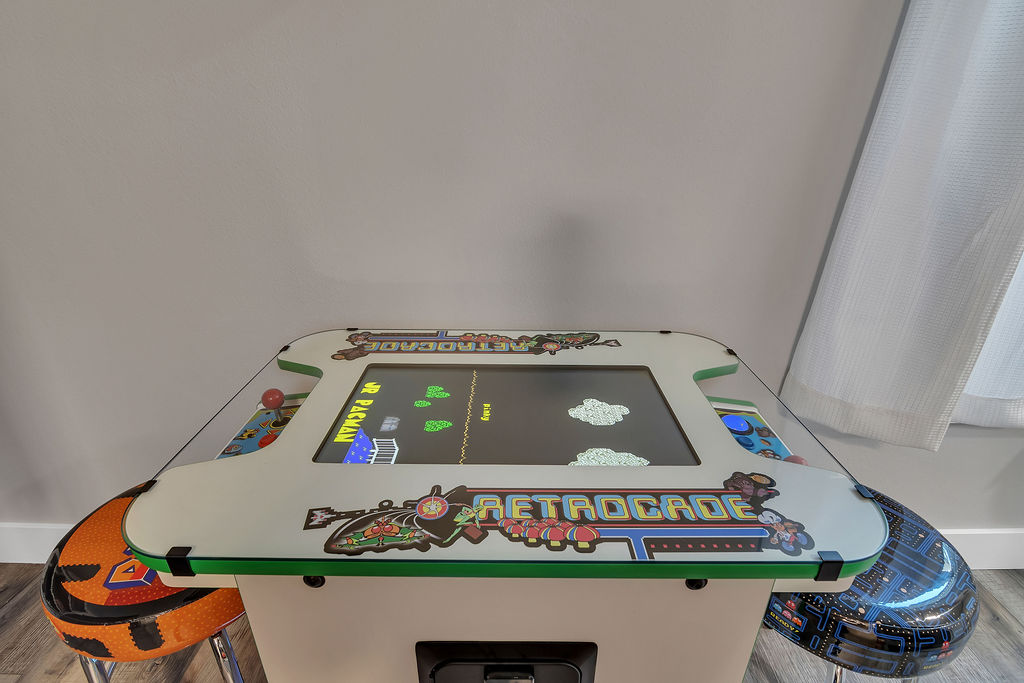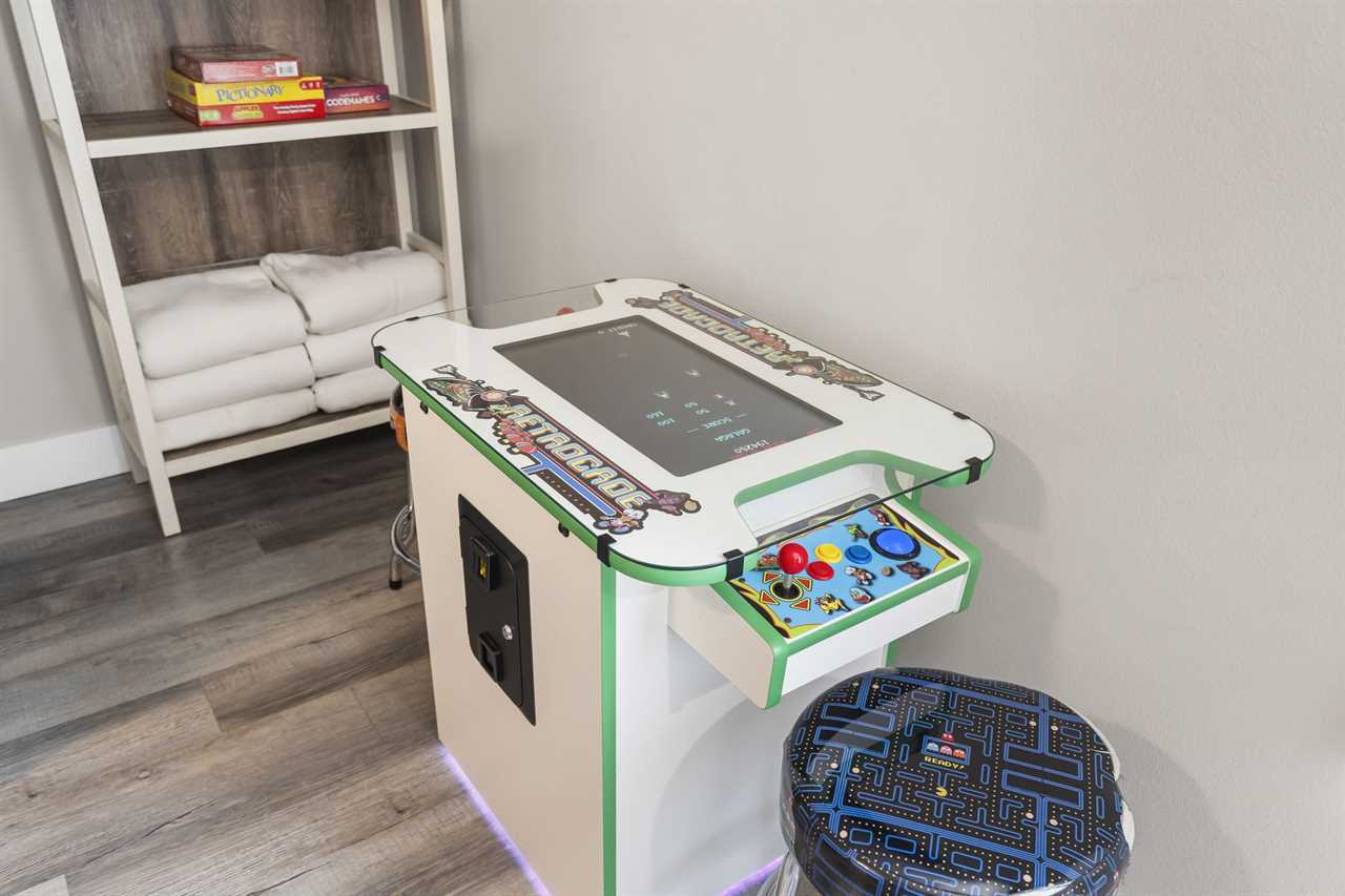 Sports enthusiasts will love this home's impressive entertainment options, as it features an array of 4-K Smart TVs, including a 75-inch screen in the living room, all connected to cable for a great viewing experience. Each of the cozy bedrooms is equipped with a 43-inch 4-K TV, allowing you to enjoy your favorite shows via the newly installed High-Speed Internet, accessible not only on the TVs but also on your personal devices. For quality family time, engage in friendly competition with the Series S XBOX, complete with Game Pass and an exciting arcade game. As the day draws to a close, retreat to the lower patio, sink into the soothing water of the hot tub, and witness the sun descending below the horizon. As darkness falls, let the twinkling stars illuminate the night sky, creating a truly magical atmosphere.
