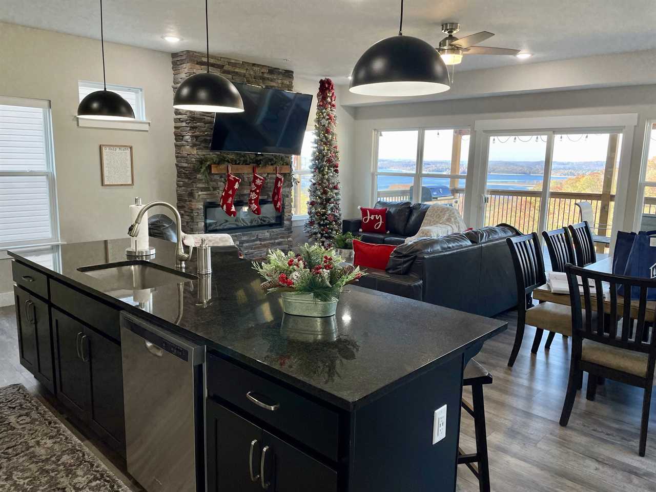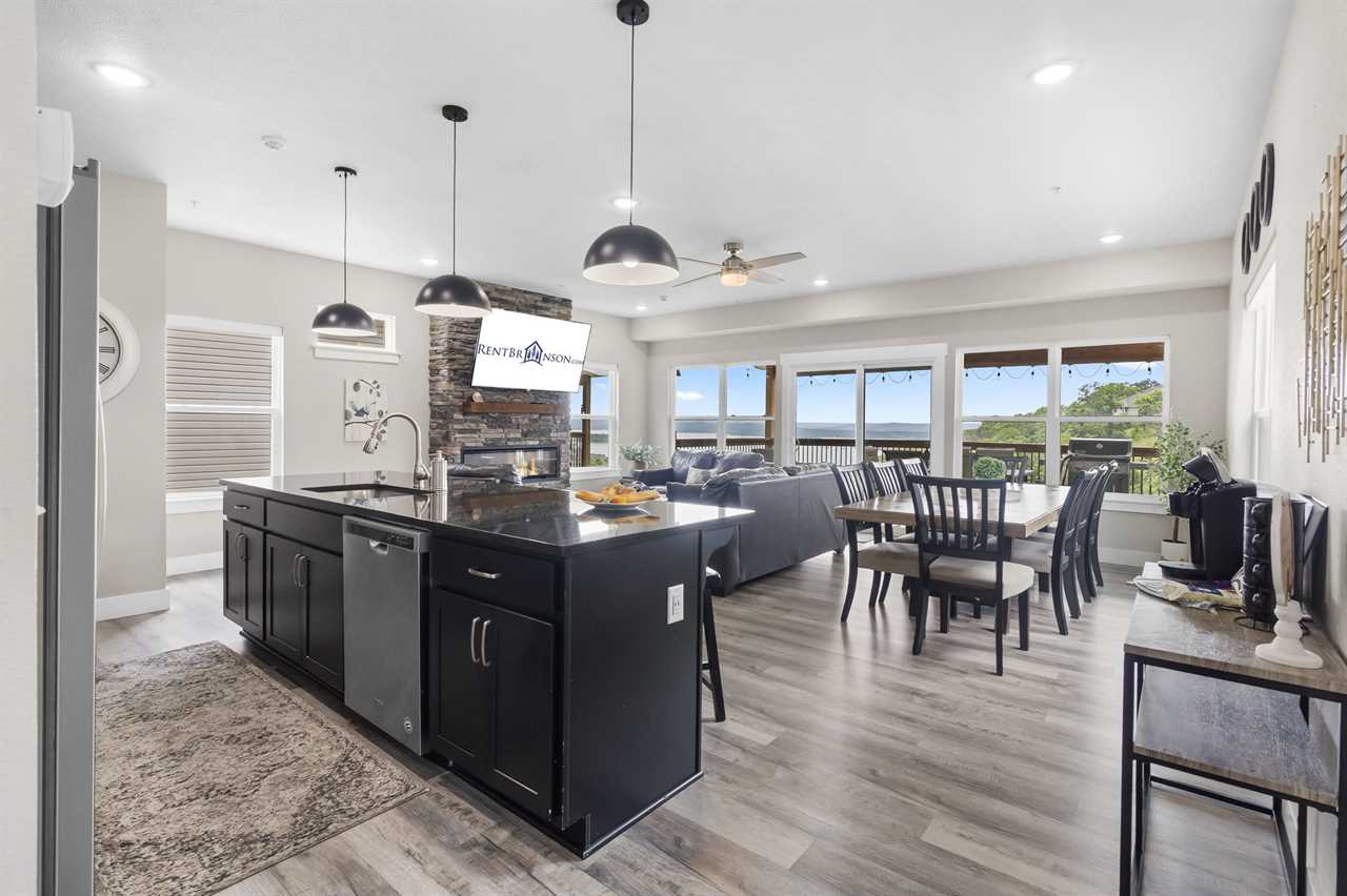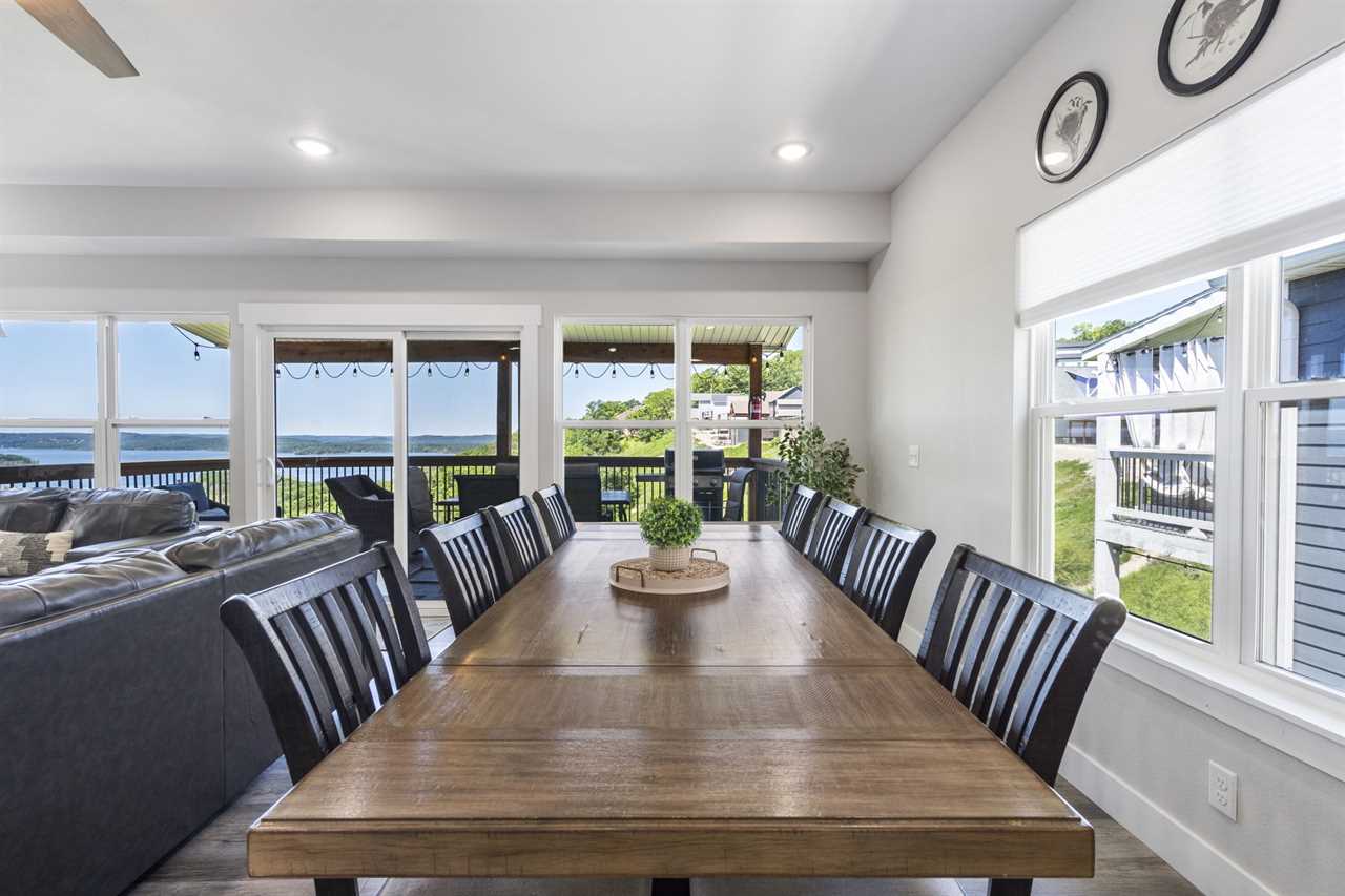 Step out onto the expansive main level deck from the living room and prepare for a true BIRD'S EYE VIEW of Table Rock Lake, offering the perfect Postcard photo op! The morning light bathes the interior through the expansive windows creating a modern open concept. This home provides ample space for your family to unwind and cherish moments spent together. The well-equipped kitchen invites you to whip up a delicious family meal, while the new propane grill beckons you to get some fresh air as you indulge in a mouthwatering barbecue feast.