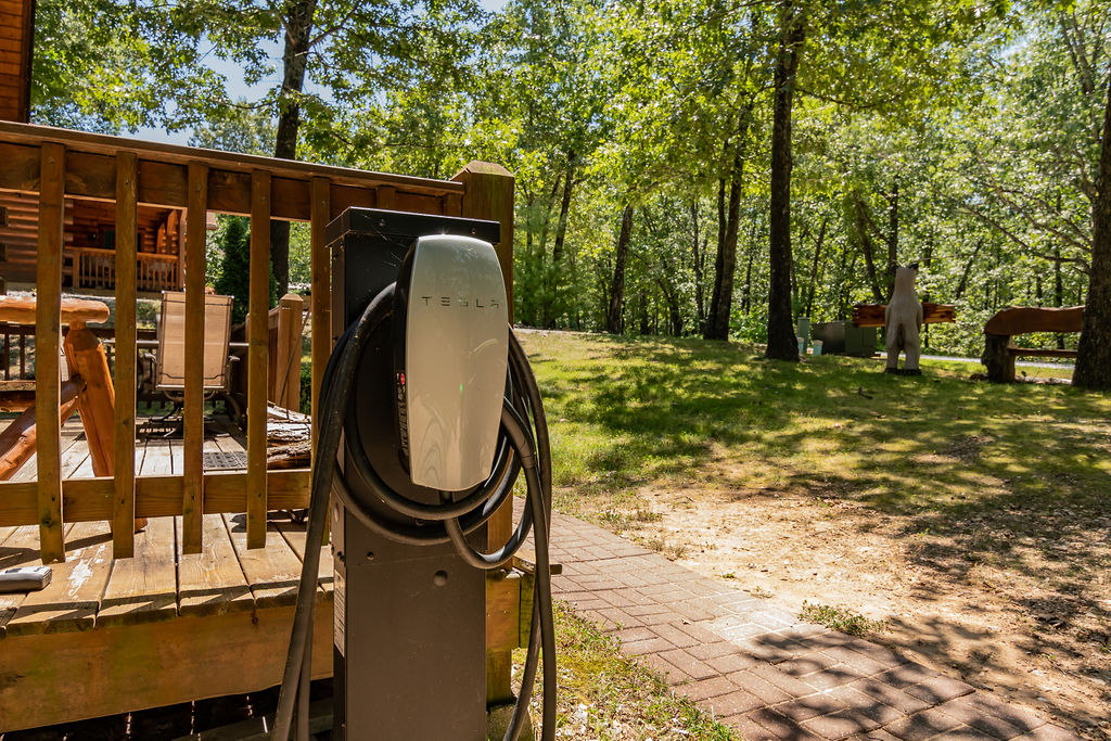 Cook up a delicious meal in the fully-equipped kitchen with an island with a breakfast bar, situated just beside a large eating area complete with a handcrafted log table built by a local Arkansas artisan. Enjoy meals of all sizes on any of the three decks as you take in the Ozark's beauty. Show off your grill master skills on the propane grill. Cozy up in the main living area next to the stone, seasonal wood-burning fireplace with a movie on the 55-inch Roku and send the teens to the loft for their own downtime. Take in the clear Ozark night air as you spend time soaking in the private 6-person hot tub while watching fireflies glow in the distance. Guests love staying at Trophy Buck and often tell us they wish they could stay forever! This cabin is decorated beautifully throughout and offers fast free internet and a Tesla car charger for those with electric vehicles.