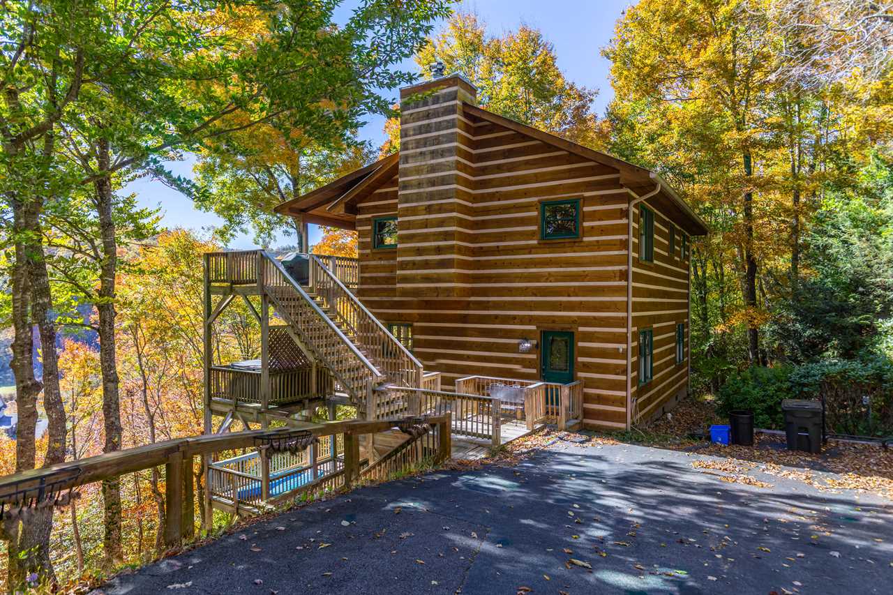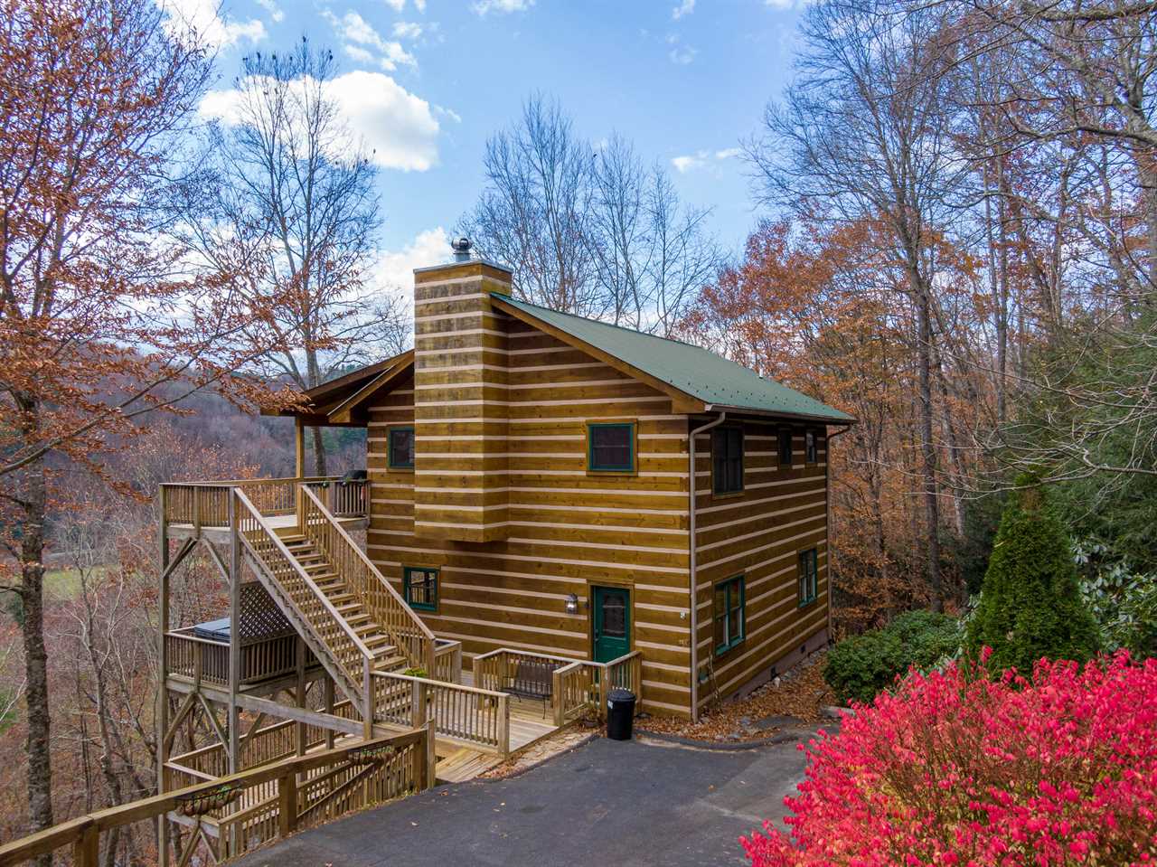 Log Inn to this beautiful 3 story home in the community of River Ridge, just 8 miles outside of Boone, NC! It offers spectacular views of the mountains and the New River! This true log cabin features 2 living areas, a stone fireplace, vaulted tongue and groove ceilings, a game room and deck access on every level!