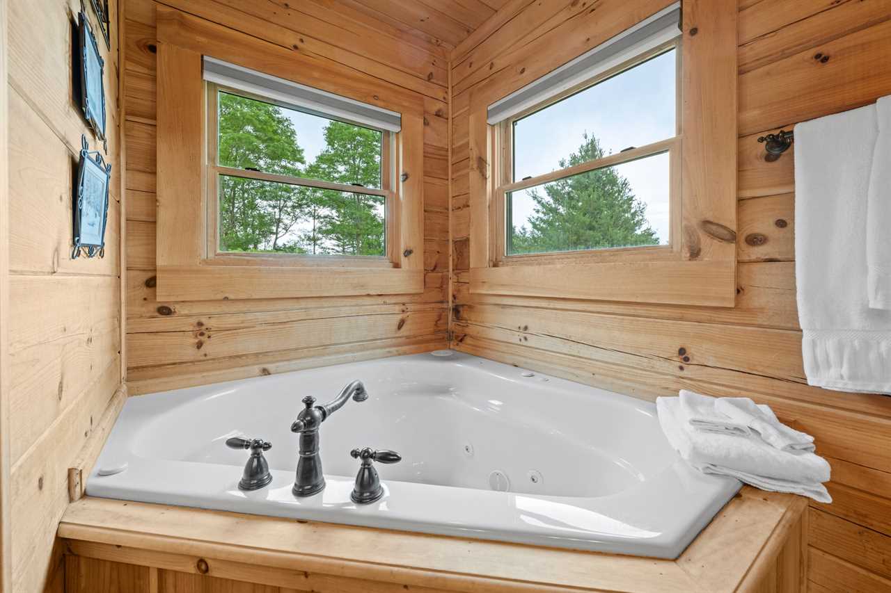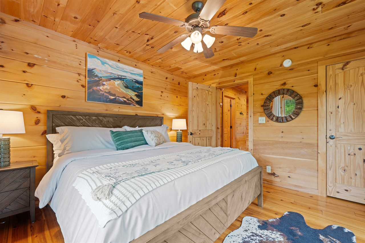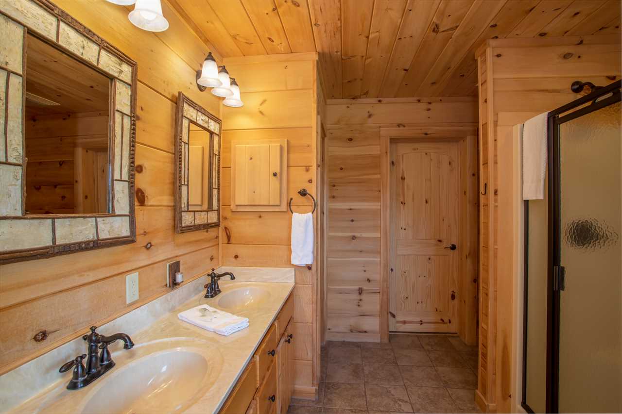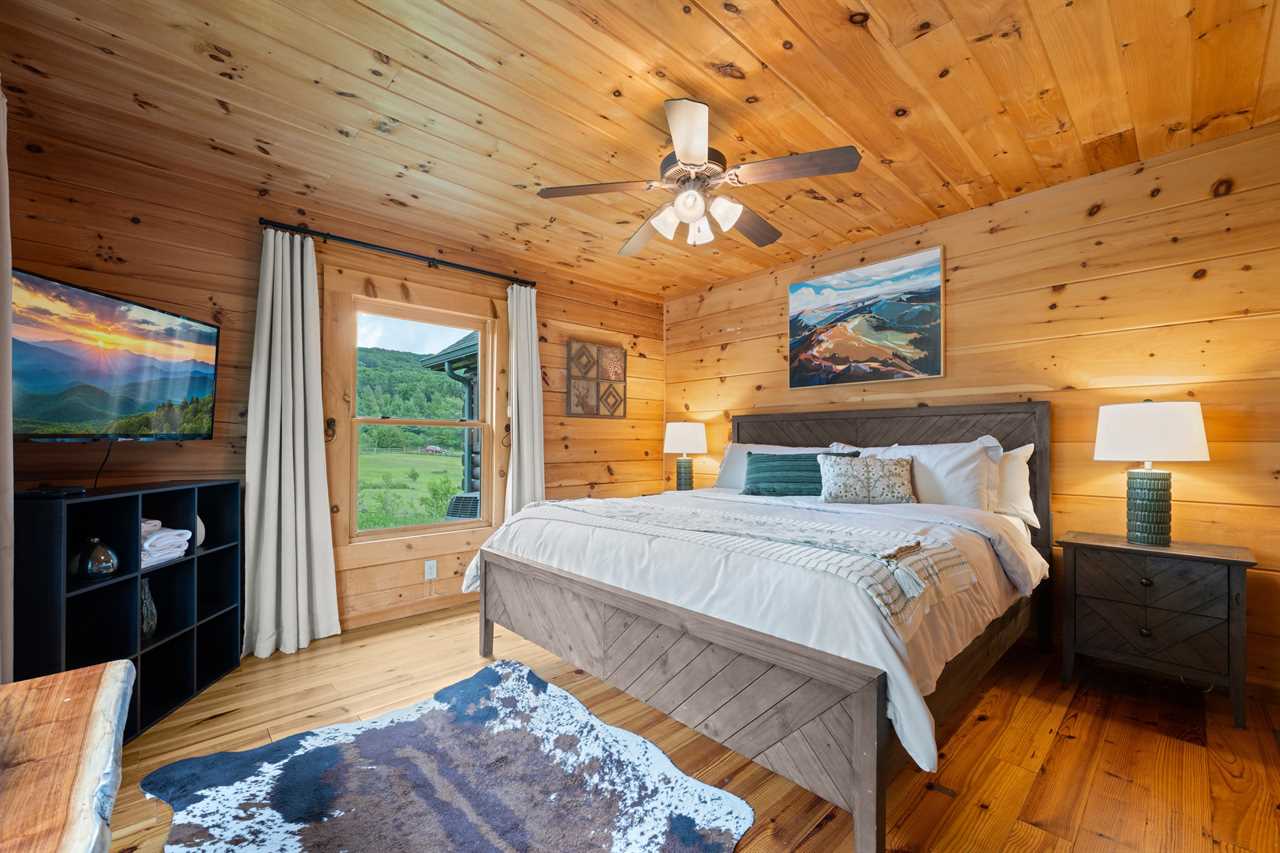 The loft area off the great room has another large bedroom with a king-size bed, a single twin-size bed, and a full ensuite bathroom. The hardwood floors and tongue-and-groove accent wall on the lower level make the finished space warm and inviting. There is another large bedroom with a king-size bed, two twin beds (all handcrafted "twig" style), and a new ensuite bathroom with a tiled shower and towel warmer. Including the pull-out queen sleeper sofa in the basement recreation room, which has a full bathroom with a combination tub/shower, the cabin has flexible sleeping arrangements for 13 guests. The basement bedroom and recreation room each have large sliding glass doors accessing the backyard for play. The hot tub sits outside of the basement on a covered patio. Alpine Ridge is dog friendly, so even your furry family members can enjoy life in the high country. This exquisite lodge-style mountain home has everything your family and friends need to appreciate the perfect vacation to the North Carolina mountains.