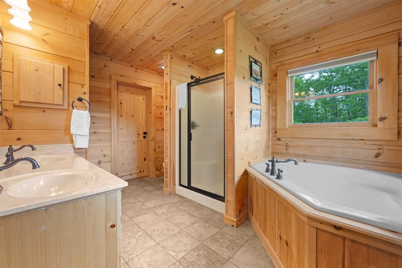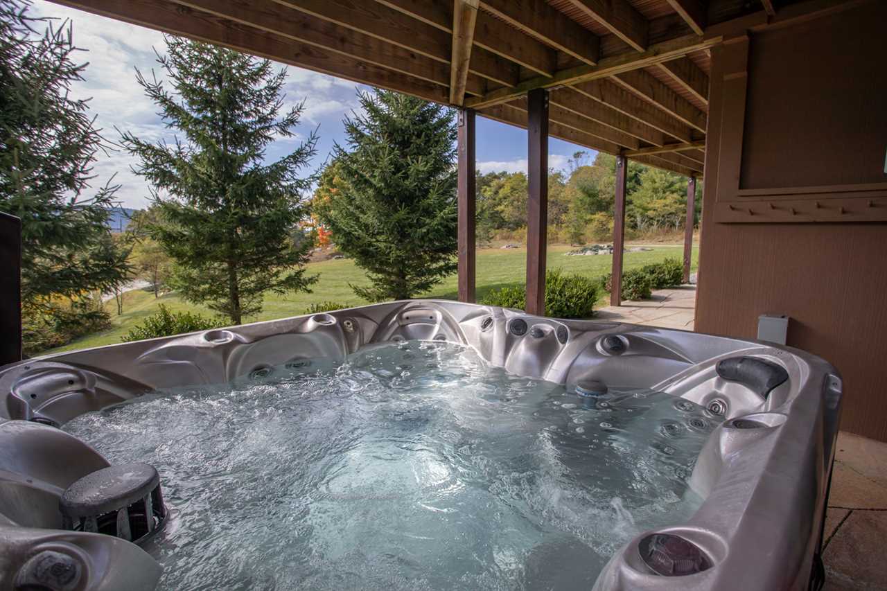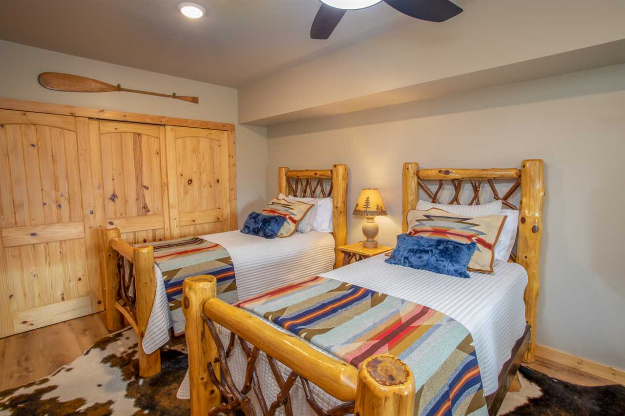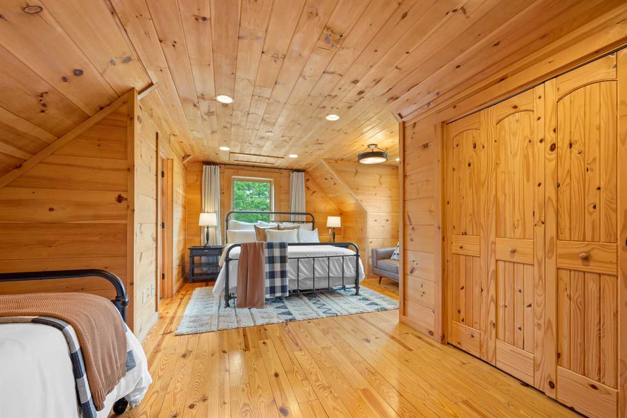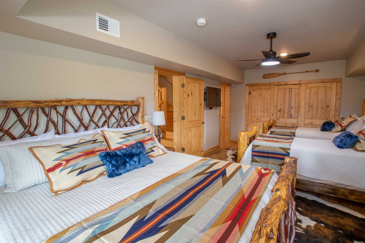 The loft area off the great room has another large bedroom with a king-size bed, a single twin-size bed, and a full ensuite bathroom. The hardwood floors and tongue-and-groove accent wall on the lower level make the finished space warm and inviting. There is another large bedroom with a king-size bed, two twin beds (all handcrafted "twig" style), and a new ensuite bathroom with a tiled shower and towel warmer. Including the pull-out queen sleeper sofa in the basement recreation room, which has a full bathroom with a combination tub/shower, the cabin has flexible sleeping arrangements for 13 guests. The basement bedroom and recreation room each have large sliding glass doors accessing the backyard for play. The hot tub sits outside of the basement on a covered patio. Alpine Ridge is dog friendly, so even your furry family members can enjoy life in the high country. This exquisite lodge-style mountain home has everything your family and friends need to appreciate the perfect vacation to the North Carolina mountains.