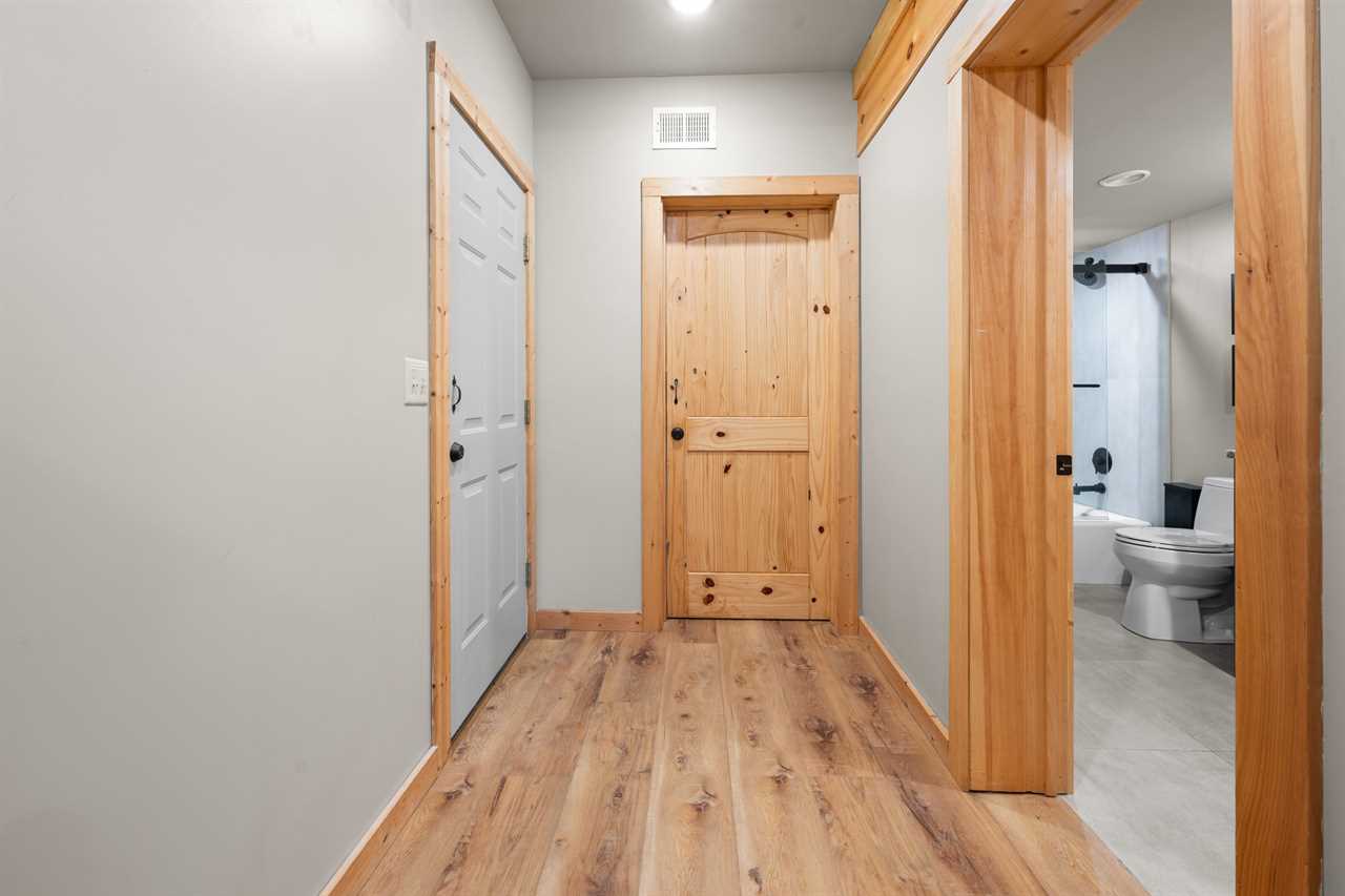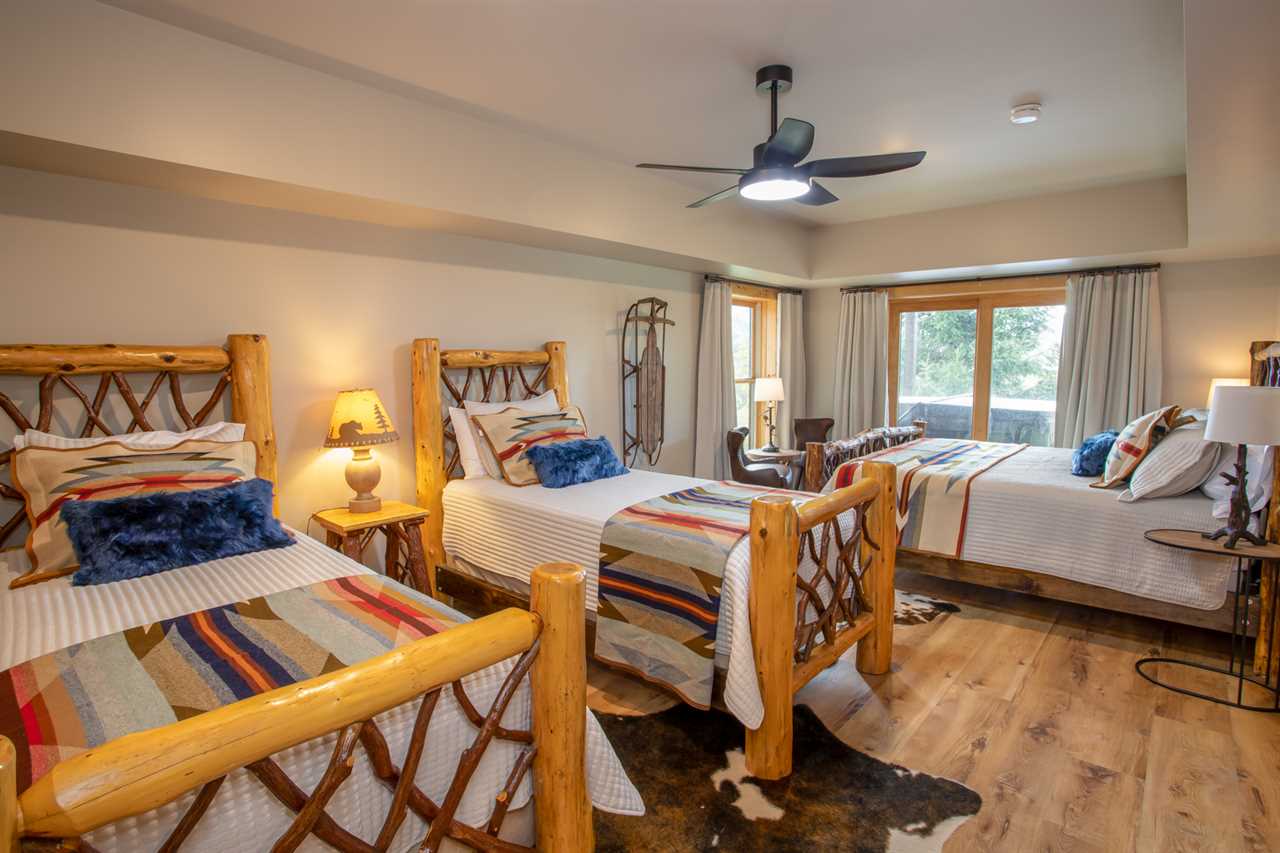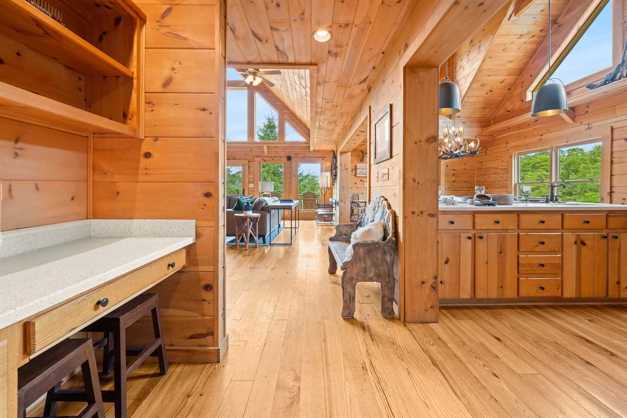Walk into the main level of Alpine Ridge and find a stunning open-concept floor plan with vaulted ceilings, exposed beams, hardwood floors, and a wall of glass presenting layered long-range mountain views. The master bedroom on the main level has a comfortable king-size bed, a large ensuite bathroom with an extra-large Whirlpool soaking tub, a double vanity, and a walk-in shower. A second bedroom suite, equipped with a king bed and a full bathroom, is also on the main floor. This bedroom enjoys the closest access to the nearby front porch for reading or relaxing on two comfortable Adirondack chairs. The large, well-equipped kitchen has ample counter space and storage, modern appliances, and two sinks. The kitchen opens to the dining area, which has access to the deck by sliding doors. The dining area seats eight at the table and three more at the kitchen island, so family dinners are no problem. The deck has a gas grill for your barbecues, an additional teak outdoor dining table, plenty of rocking chairs, and two more Adirondacks for reading and lounging. The dining room opens to the great room with its tongue-and-groove vaulted wood ceiling and large wood-burning stone fireplace. A wall of windows faces south, showcasing gorgeous sunrises to the left and sunsets to your right. The laundry/utility room is also available for your convenience.
