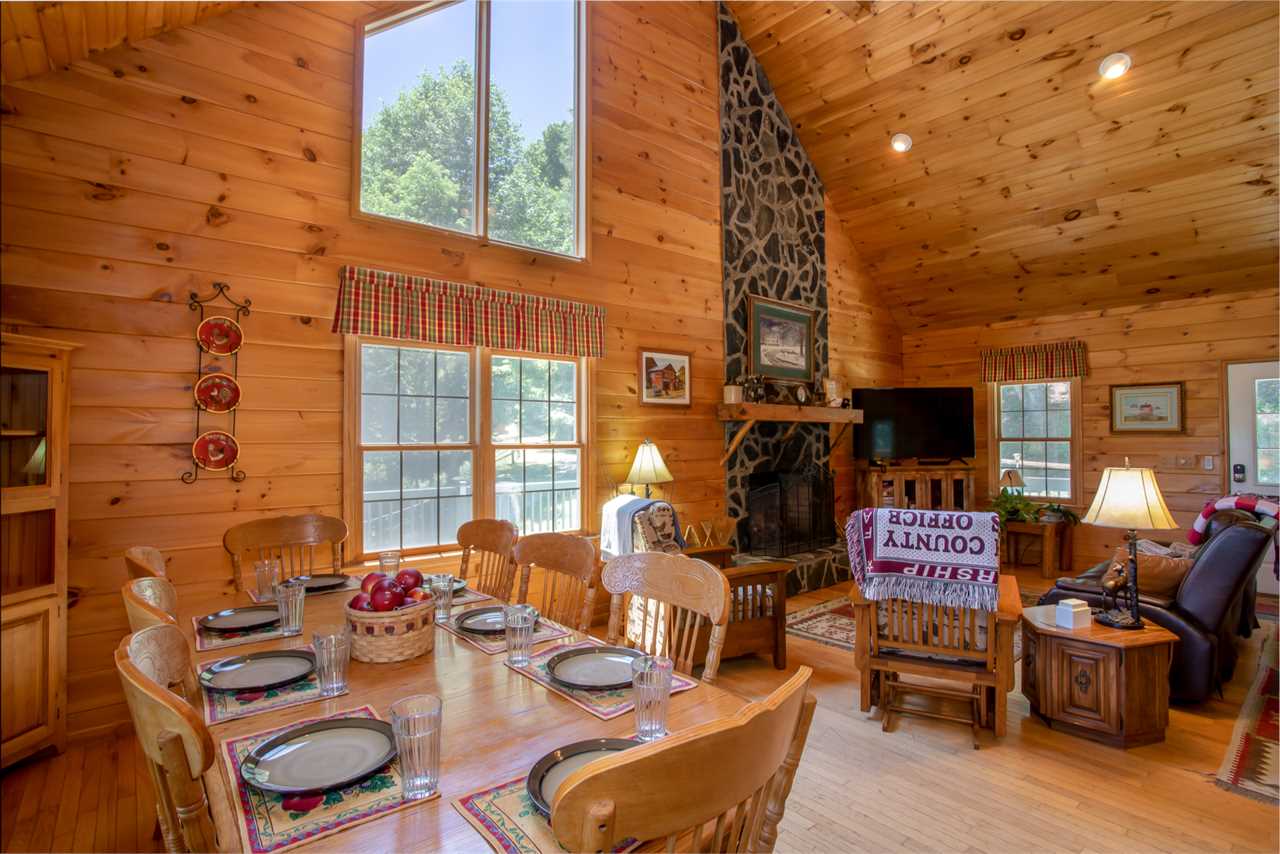Dogs are allowed, with a maximum of two (2) dogs per reservation and a 40-pound weight limit. Standard pet fees apply, and all dogs must be crated or kenneled if left alone at the cabin or unattended. No dogs are allowed on any of the beds or furniture.
