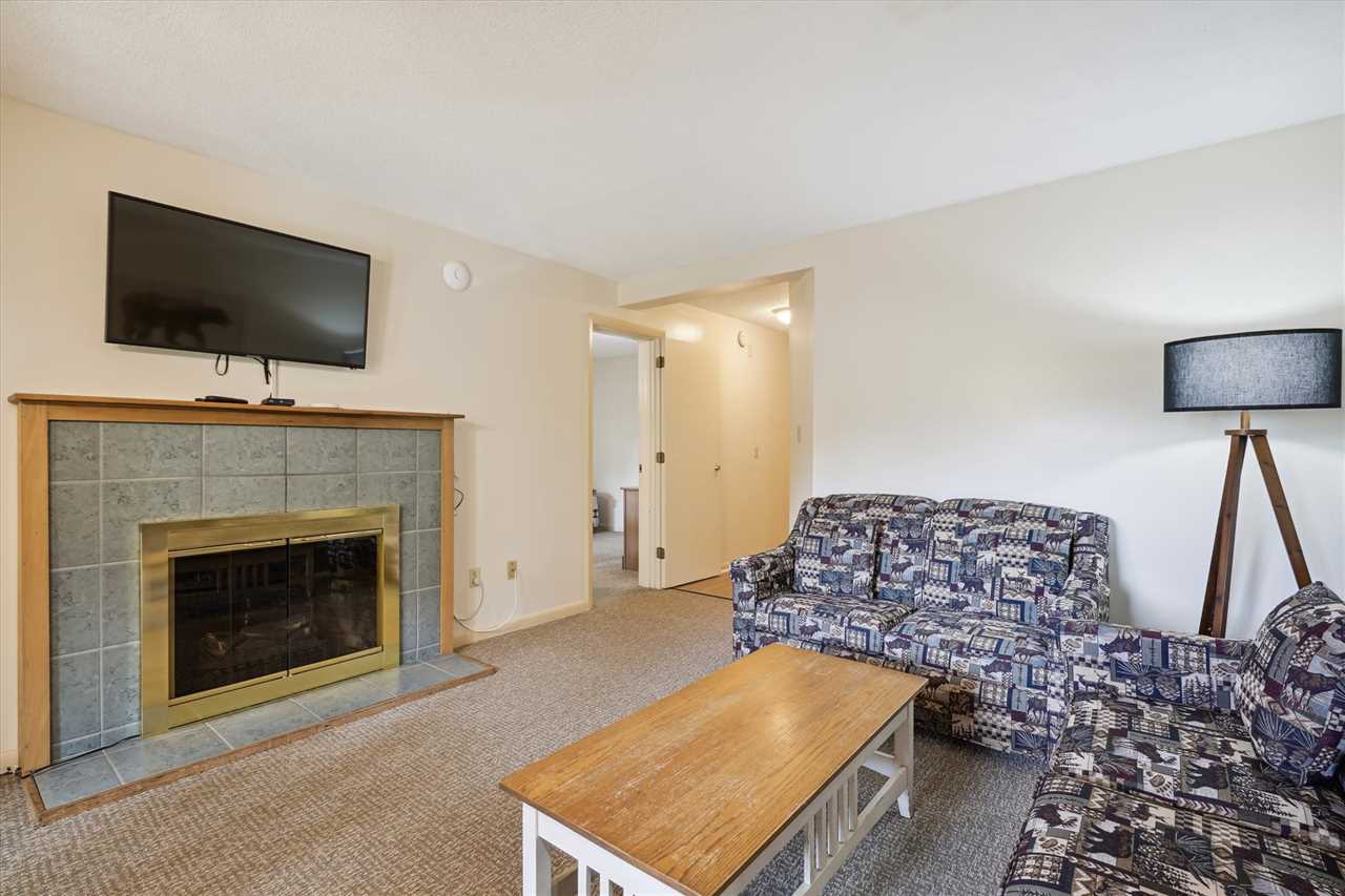 Living room with Flat screen TV, electric fireplace, Queen sleeper sofa
