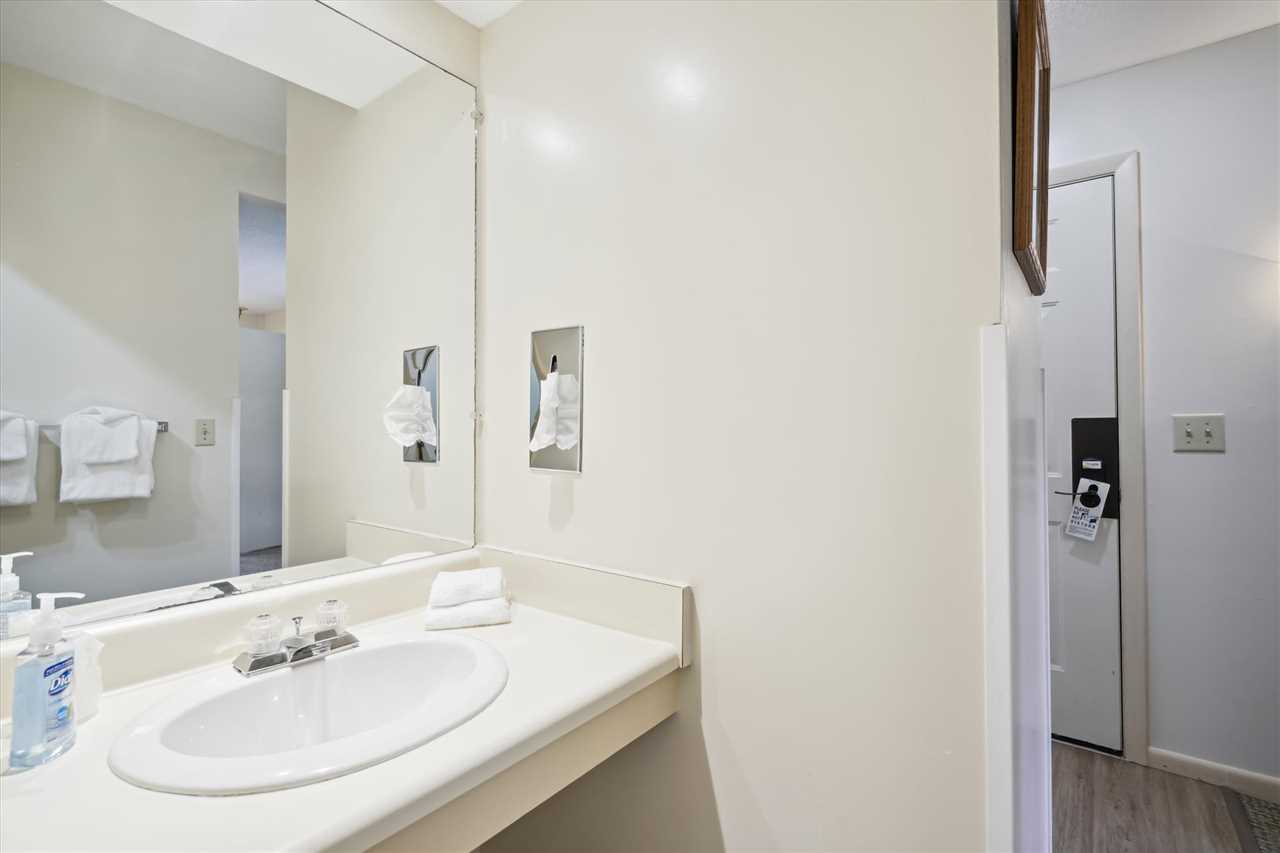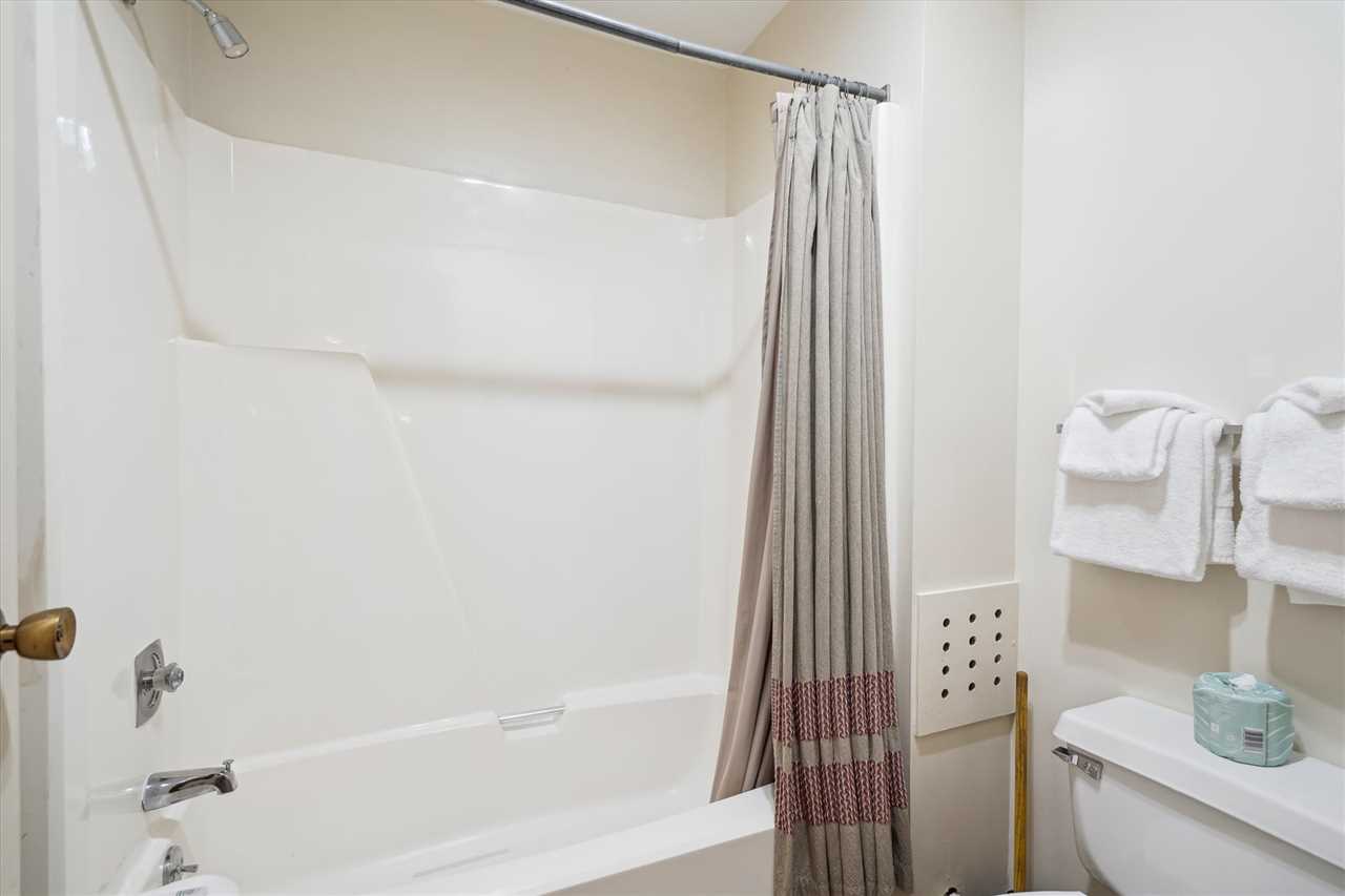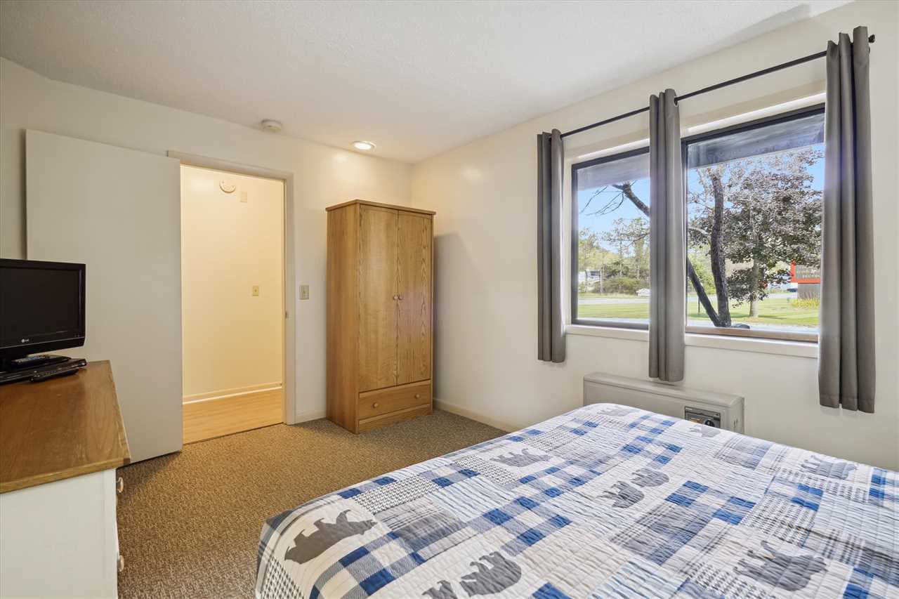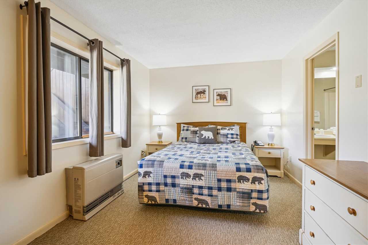 Bedroom with 1 Queen bed with TV, and attached full bathroom