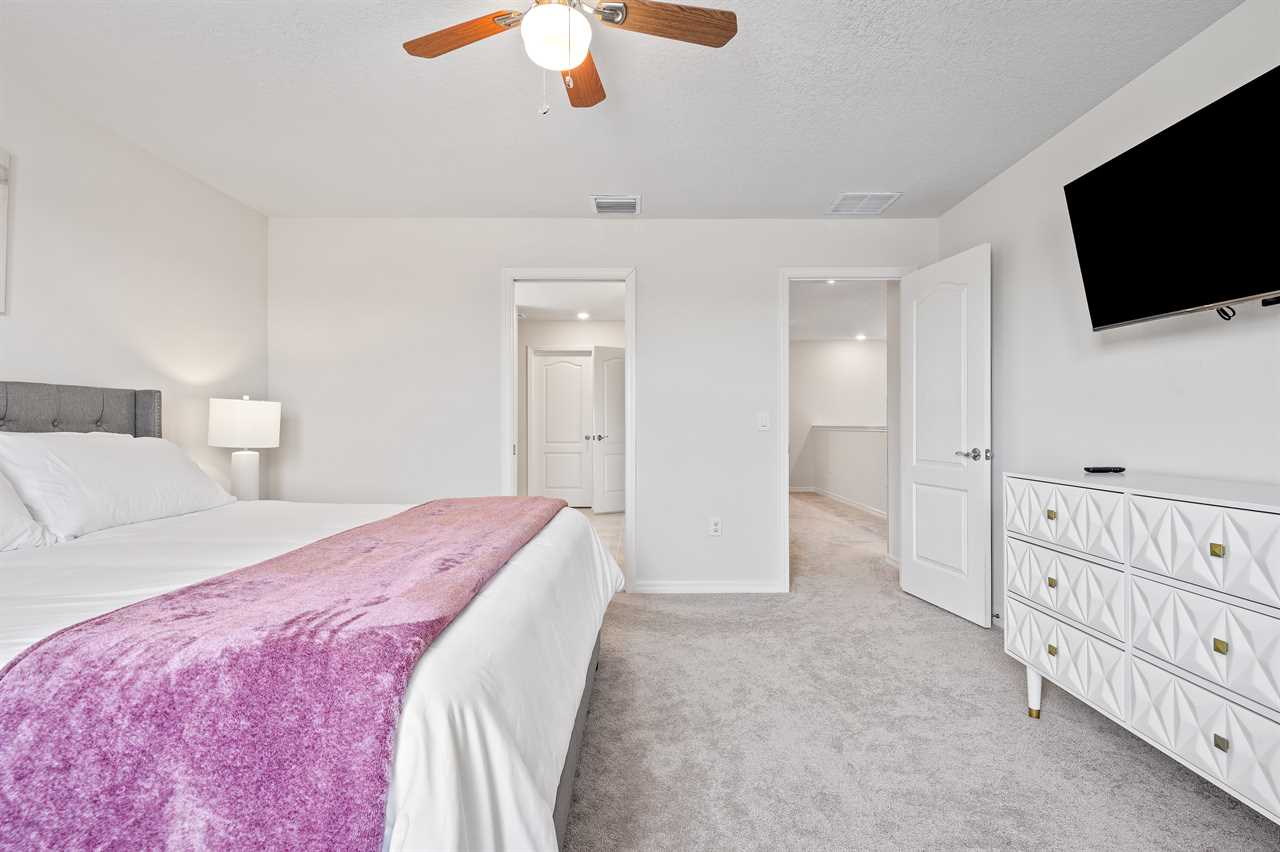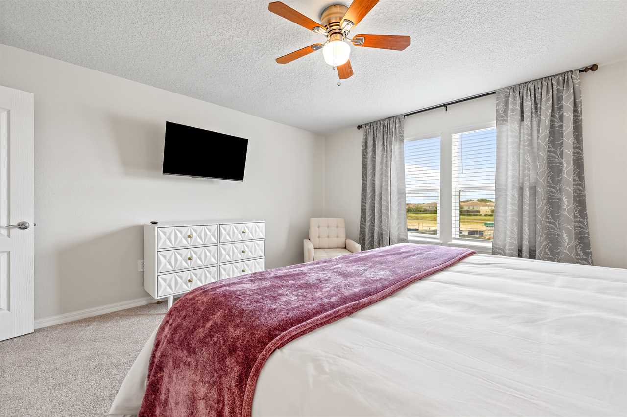 The bedrooms, like the rest of the home, are all bright and modern. Each bedroom has its own Roku Smart TV - 2 bedrooms each with a queen-sized bed, and master bedroom with a king-sized bed, 2 kids bedrooms each with 2 twin-sized beds. All-in-all sleeping up to 10 guests. The home also includes a washer dryer, and an iron ironing board, a safe for your convenience.
