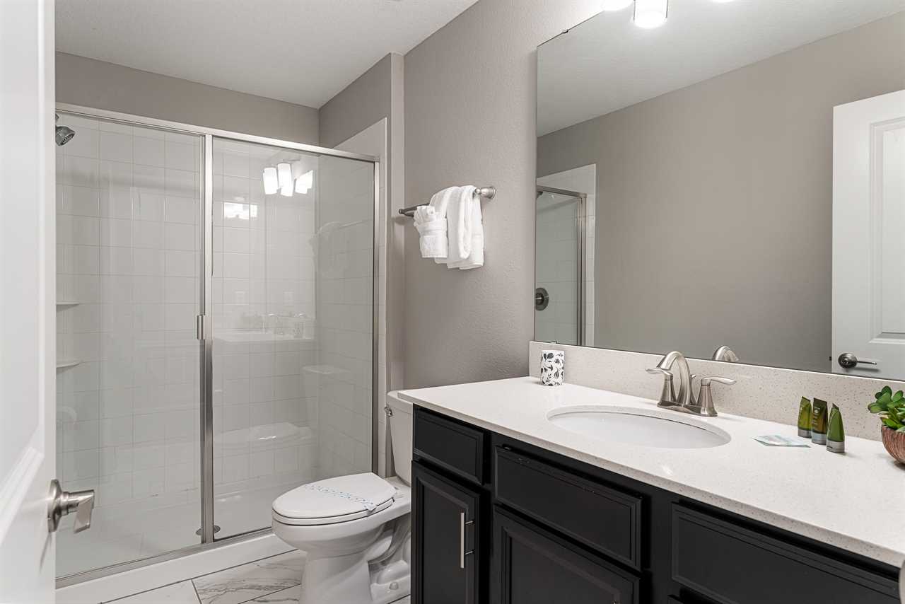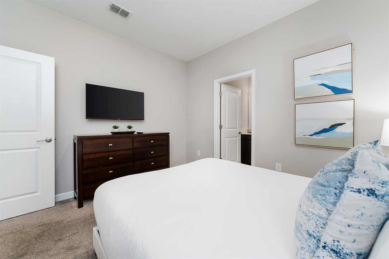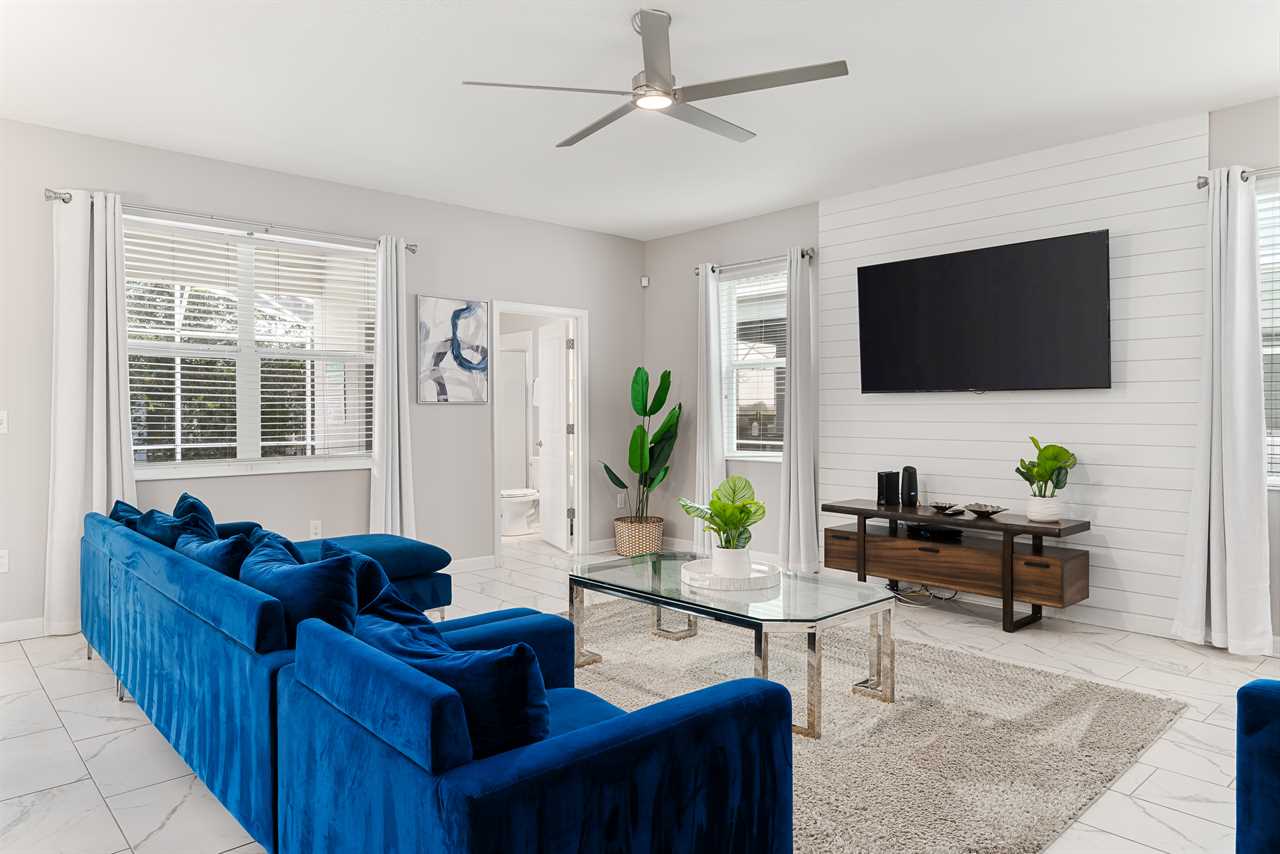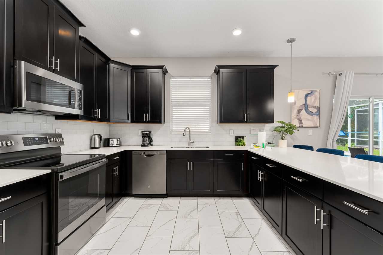 This home has a modern spacious layout with a great room including the living area, the kitchen, and the dining area. The living area consists of 2 comfy retractable couches and an armchair before a large screen TV. The kitchen has all stainless steel appliances and comes fully equipped so you can cook your own meals or store & reheat take-out. Serve it up at the kitchen counter with bar seating for 4, or have a nice dinner at the formal dining table seating 8.