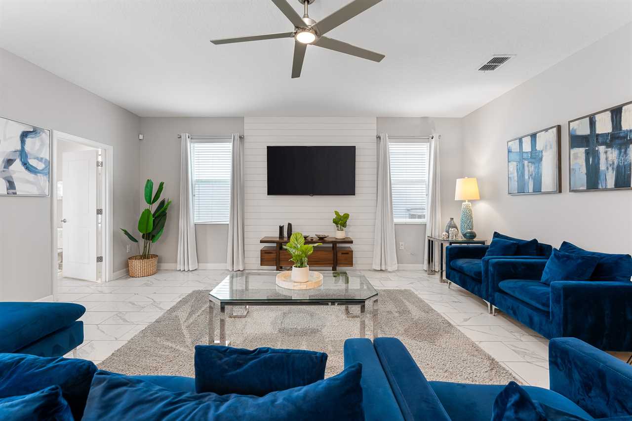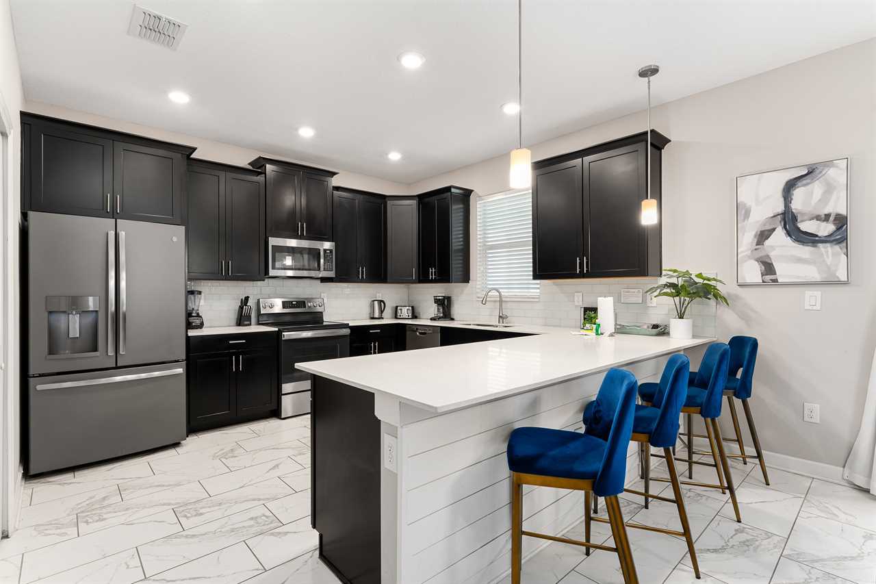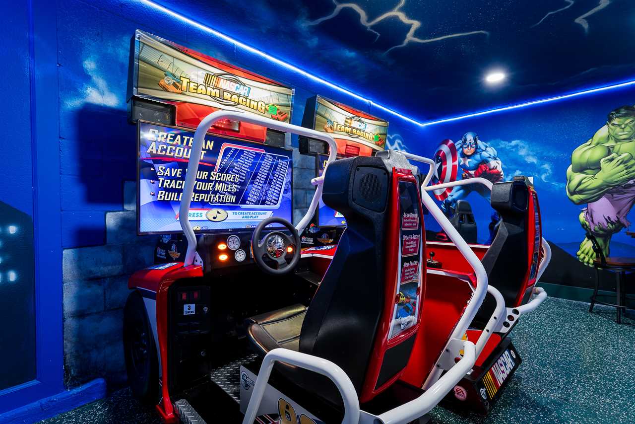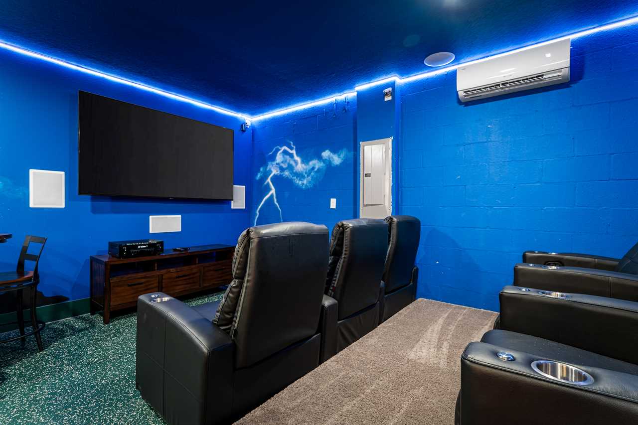 This home really turns up the entertainment with a newly renovated first-floor Theater/Arcade. Enjoy theater-style seating for six and take in the latest movie with the family, or step up the competition with a commercial racing arcade inside your own vacation home. Two gaming station Smart TVs, one has a PS4 and the other one to an Xbox. No coins needed! The room also has high-top seating for three.