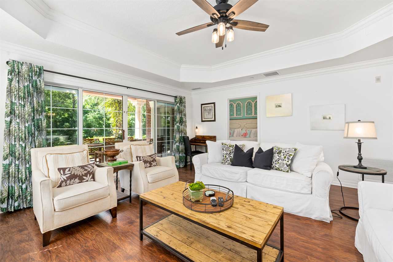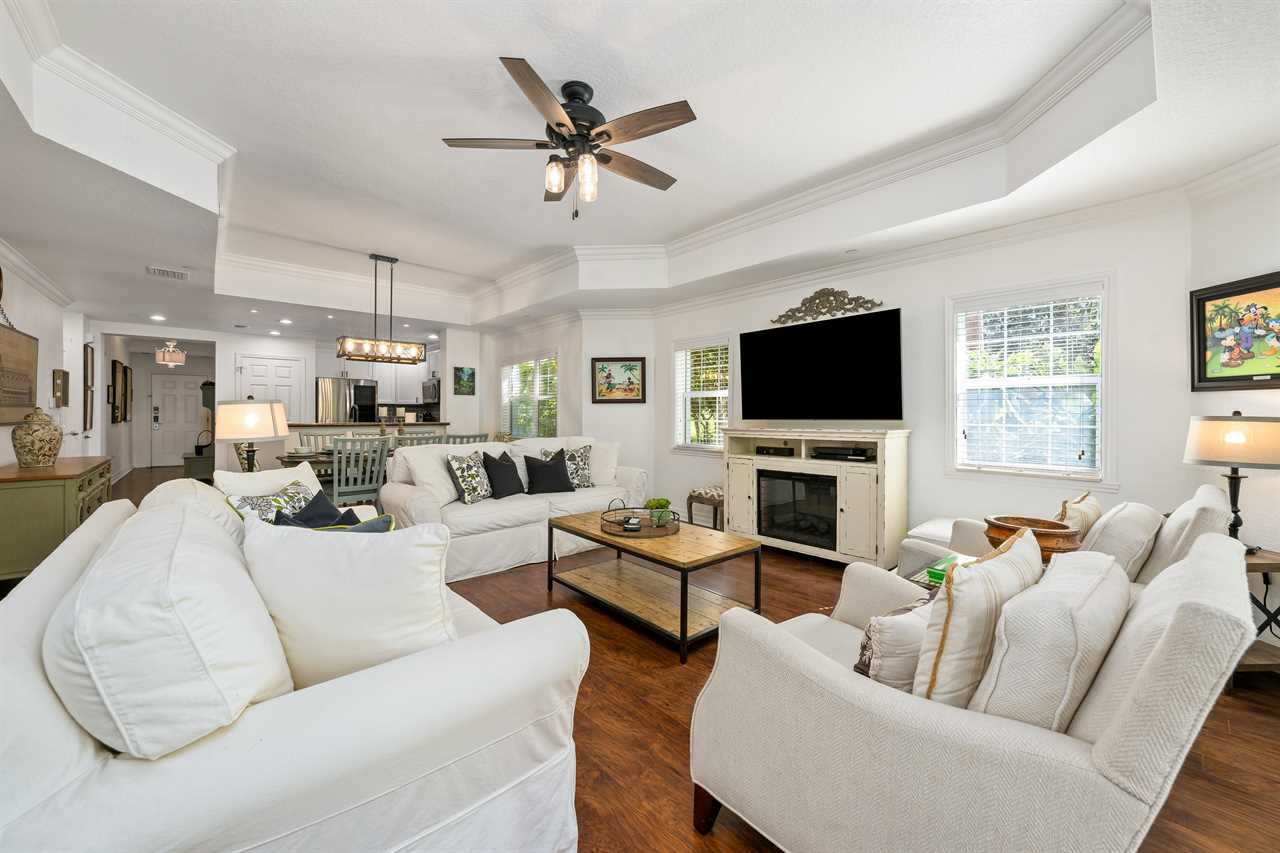 This 3-bed condo is located on the ground floor in The Villas South at Cabana Court close to the heart of Reunion Resort.