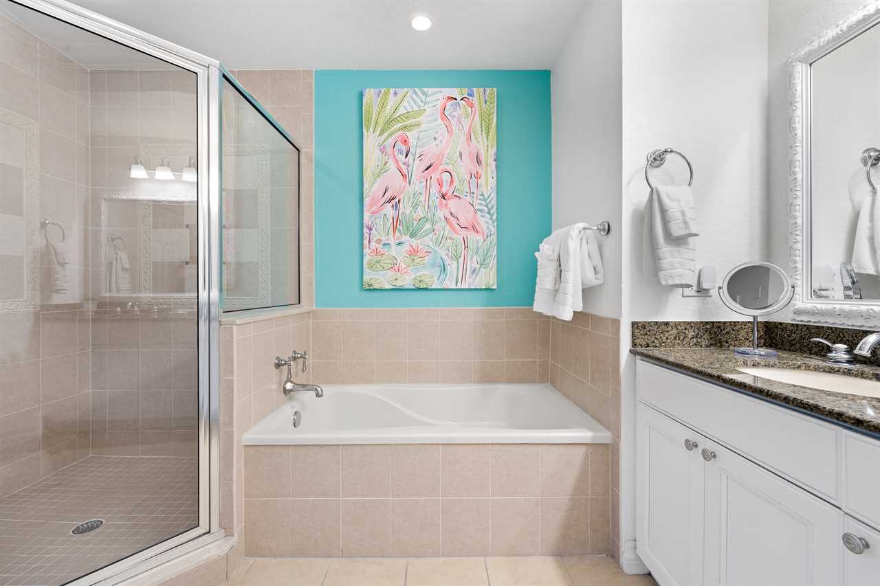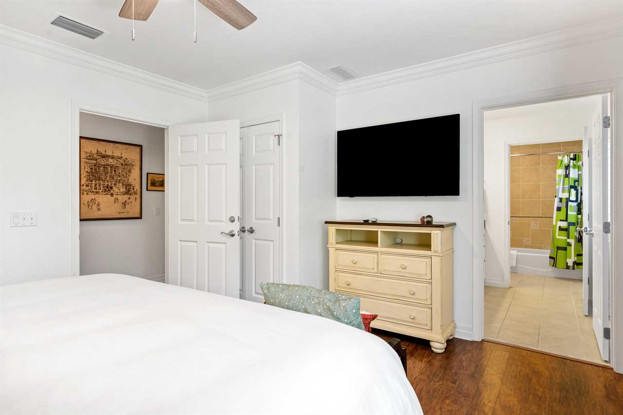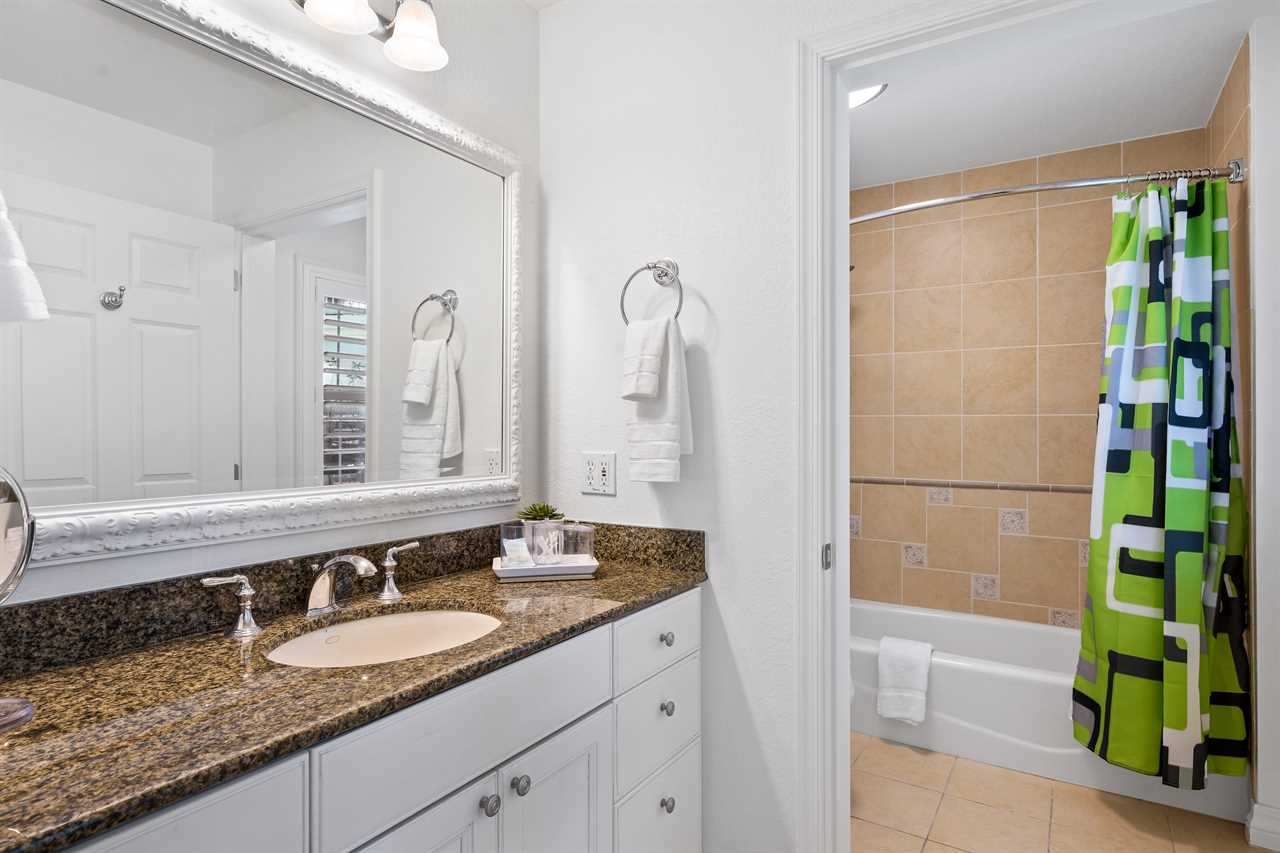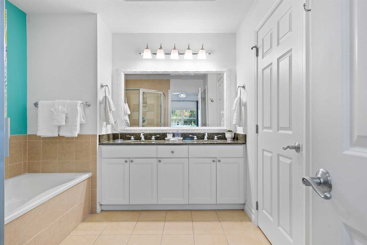 The kids can enjoy the Toy-Themed bedroom with two twin beds with trundles (Sleeps 4) a 55-inch SMART TV, a DVD player, and a stand-up NBA arcade game. The King Master bedroom includes a 60-inch SMART TV with a DVD Player and a bathroom with a tub/shower combo and single vanity. The third bedroom is a King Master that has patio access and includes a small work desk/station. There is a 55-inch SMART TV. The bathroom includes double vanity sinks, a shower, and a separate bathtub. Enjoy your next vacation in this beautiful condo, call or book online today!