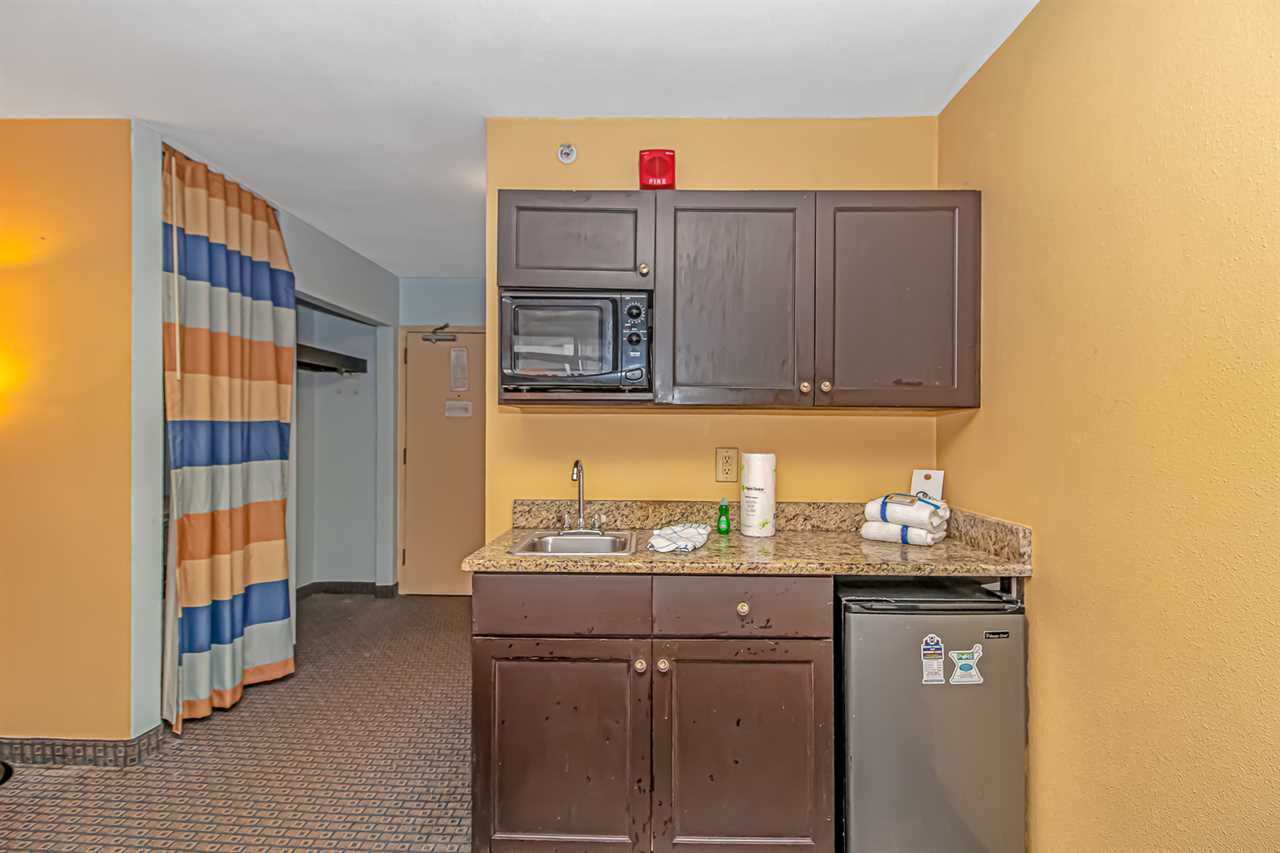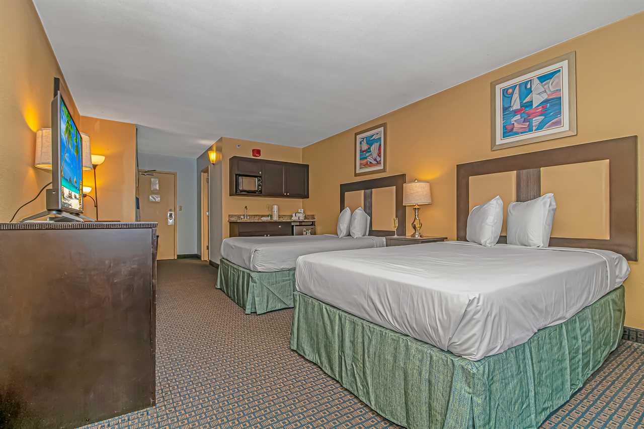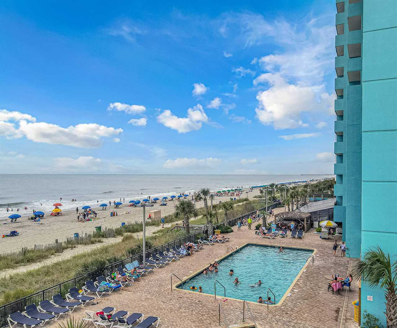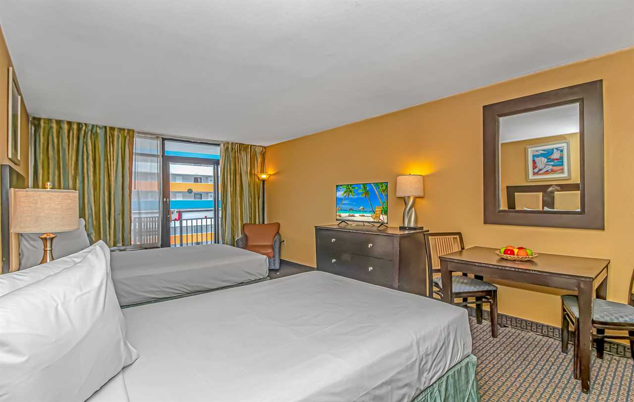 If you are looking for a nice, clean vacation rental, look no further! Check out this 9th-floor interior condo at the Landmark Resort in Myrtle Beach. This studio is fully furnished with 2 full-size beds and comfortably accommodates 4 guests. The unique layout offers oversized living space compared to many other rentals at the resort, which are much smaller. With its open floor plan, this unit never feels cramped. While it does not offer an ocean view, the spacious layout makes up for it. Guests will also enjoy a private balcony with views of the resort and terrace.