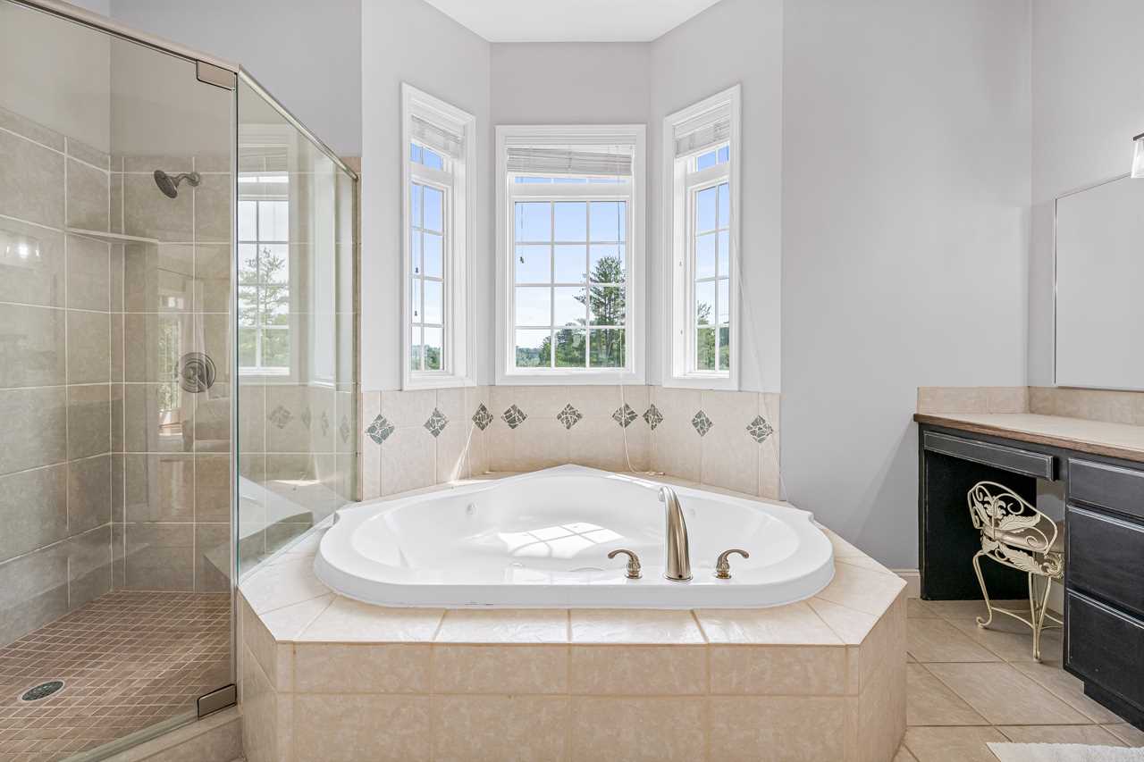 β Bathroom 1 - Toilet, shower, and jetted tub; ensuite with Master Bedroom