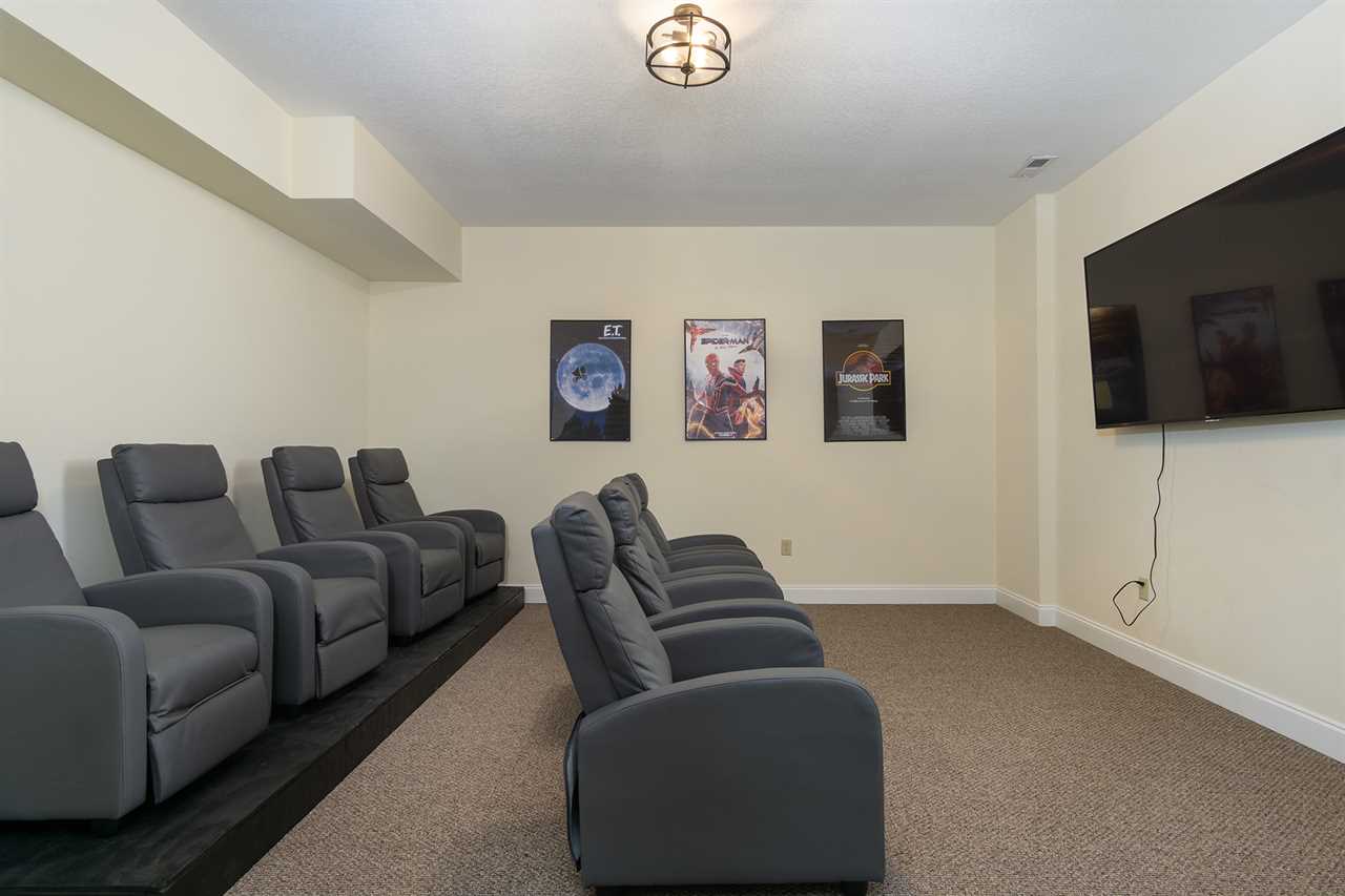 β Theater Room - Huge smart TV, Perfect for movie nights with an added bunk bed for more sleeping options.