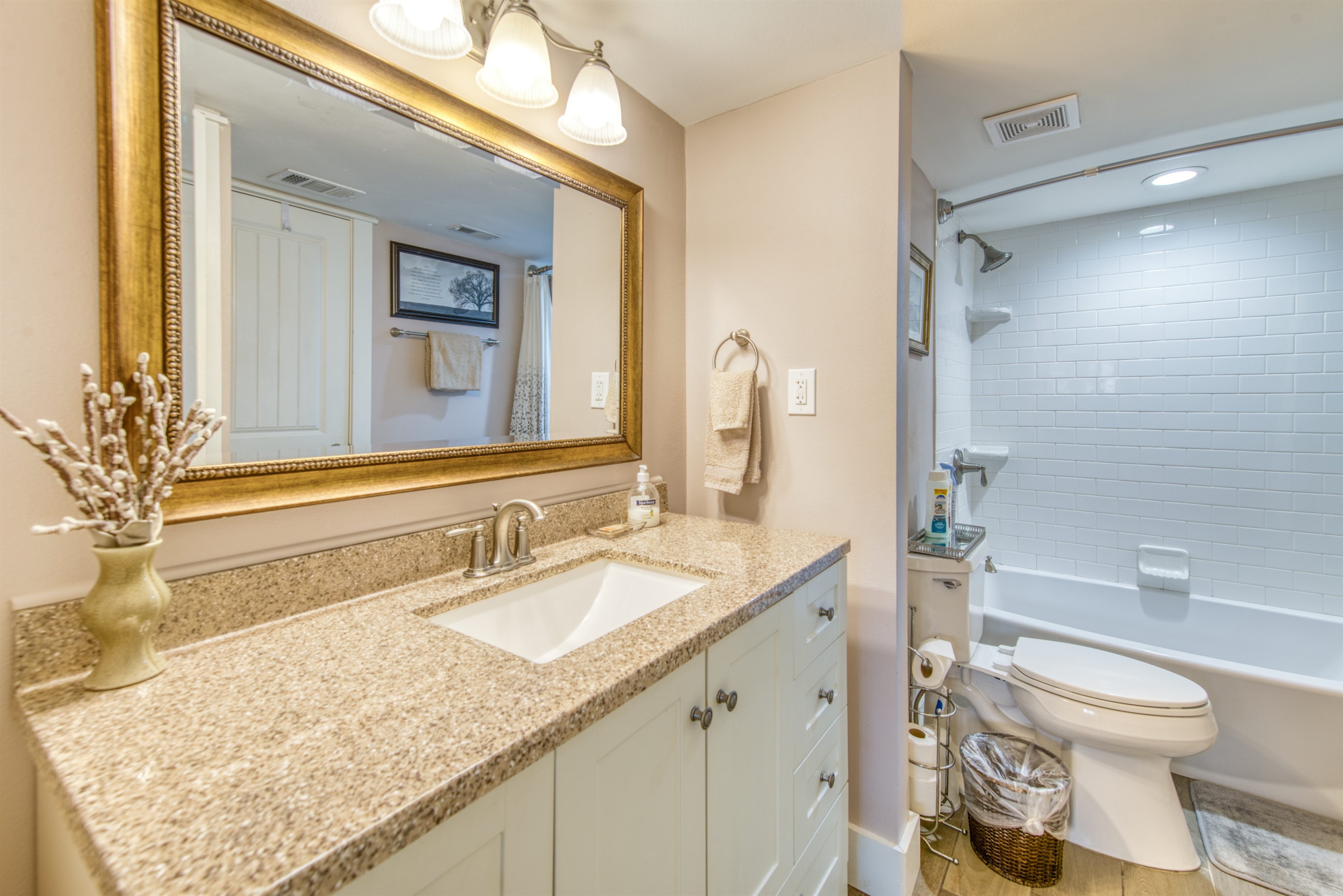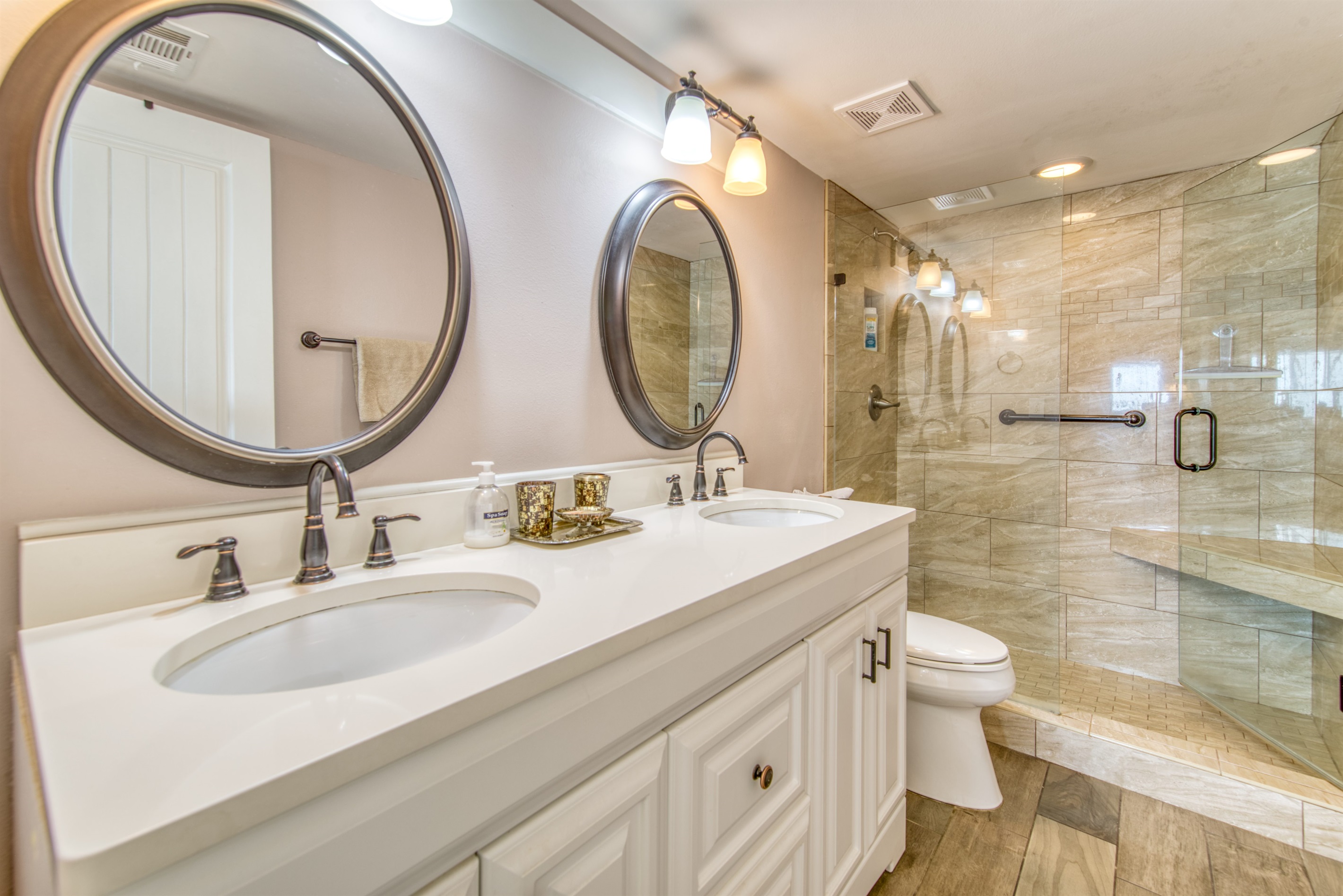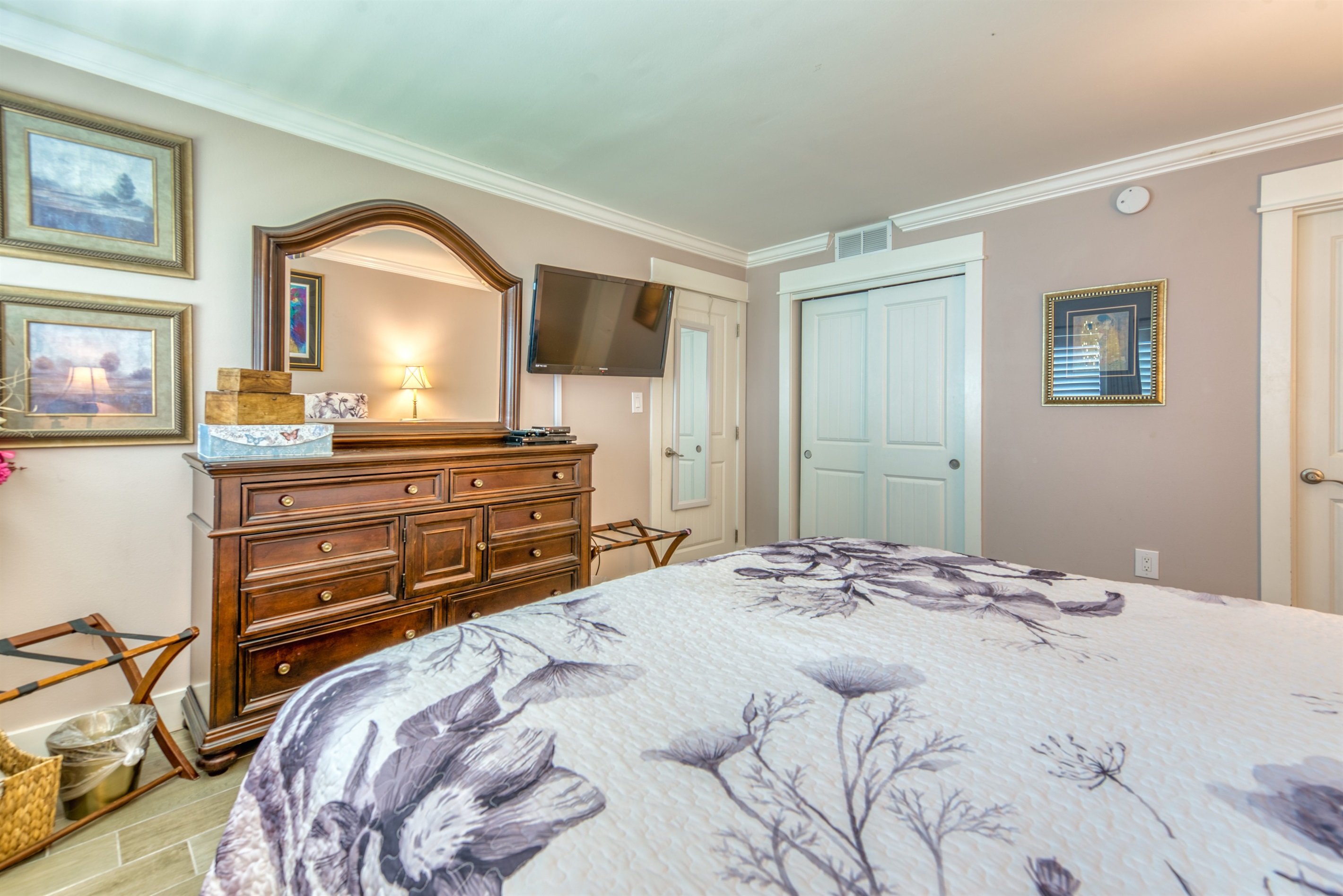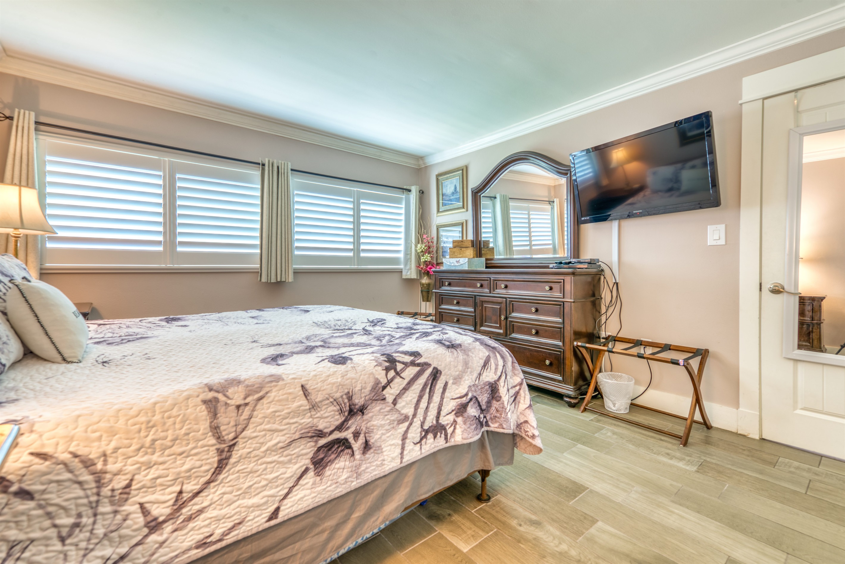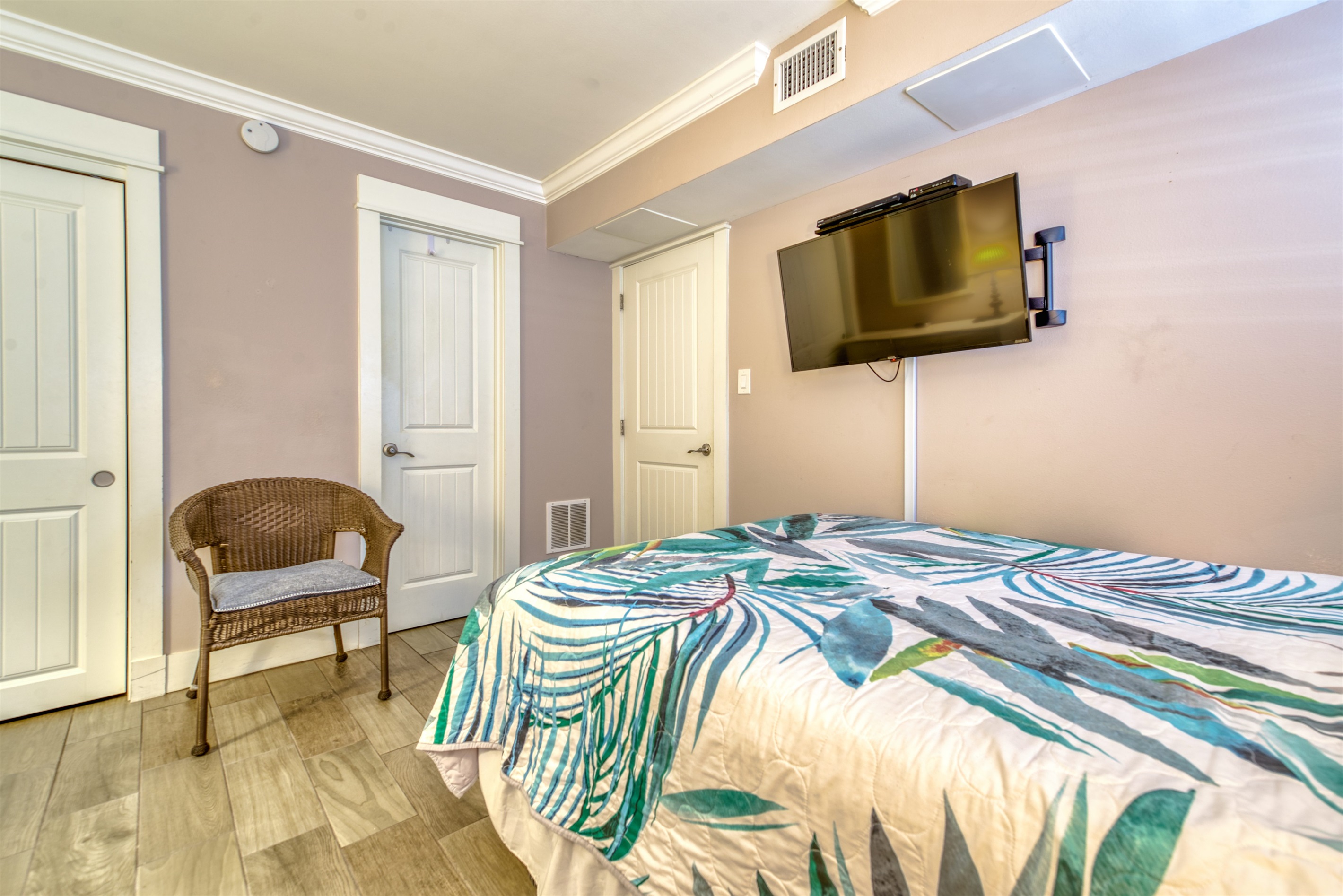 This condo can conveniently accommodate a party of 7. The master bedroom has a king-sized bed that comfortably sleeps 2, as well as a private, full bathroom attached to it. The guest bedroom has 1 queen size bed and 1 twin bed along with an attached full bathroom that is also accessible from the living room area. The living room is equipped with plenty of comfortable seating for lounging and relaxing throughout the day during your breaks from the beach, as well as a pull-out sleeper sofa bed that can comfortably sleep 2. The total sleeping accommodations for this condo is 7 guests.
