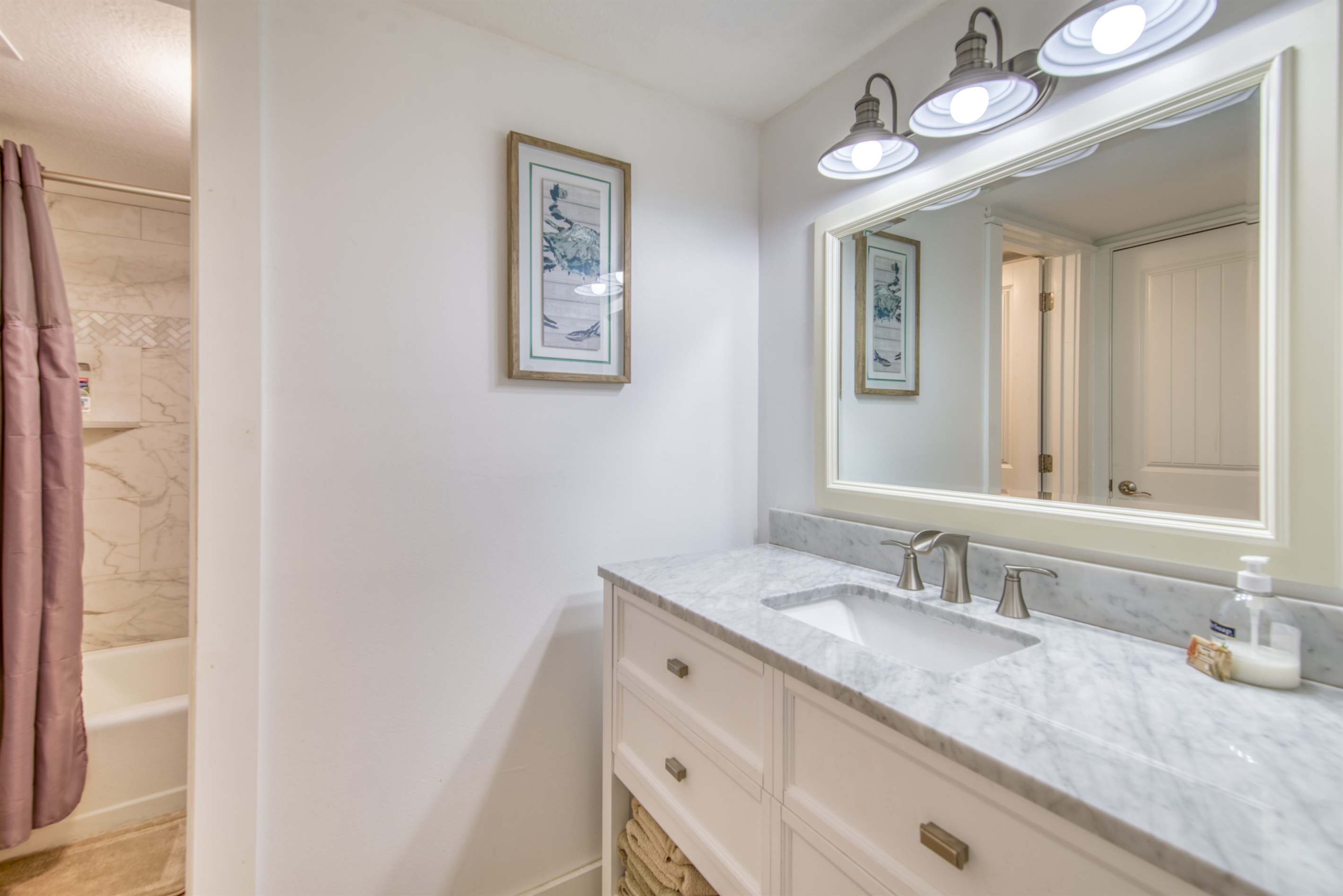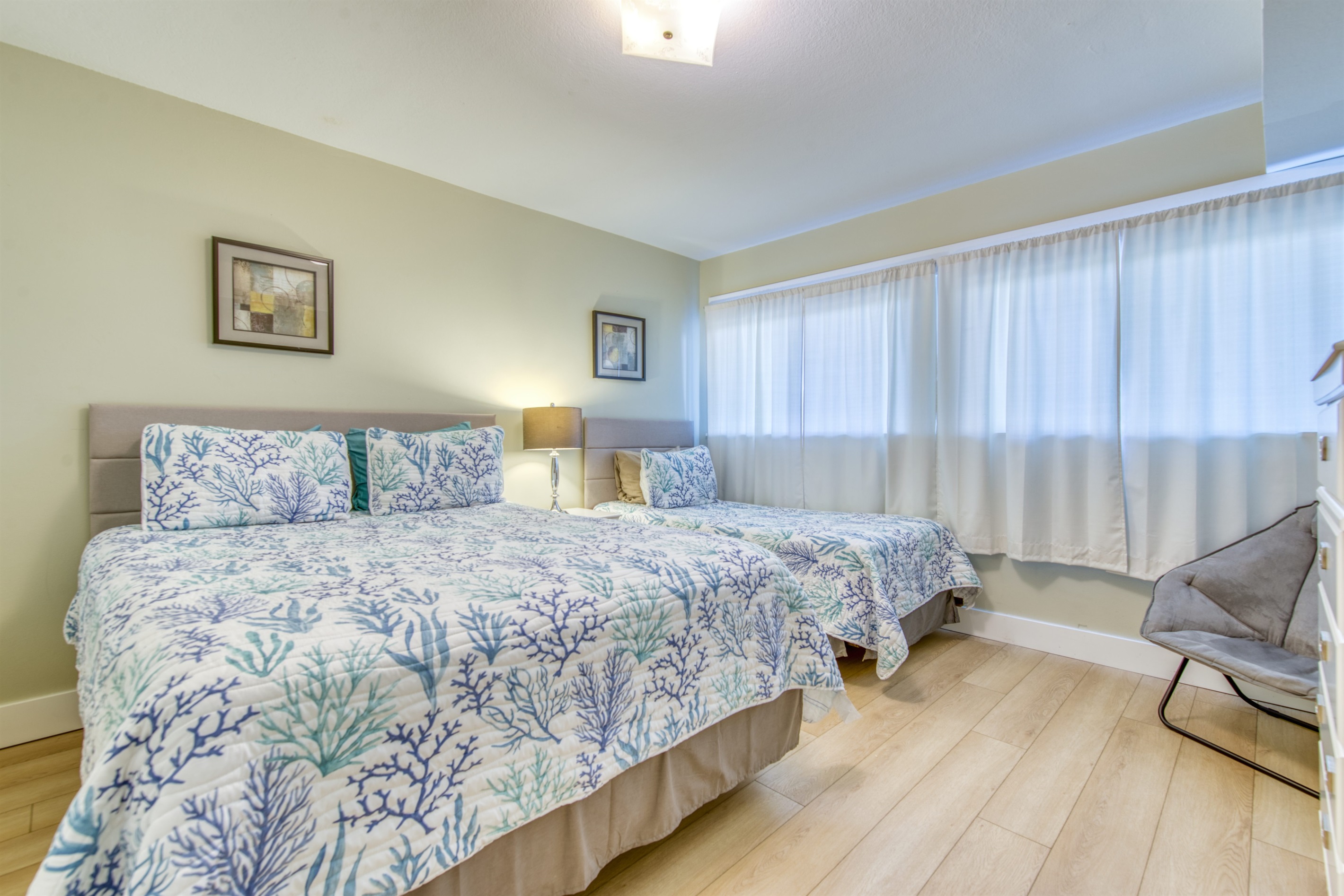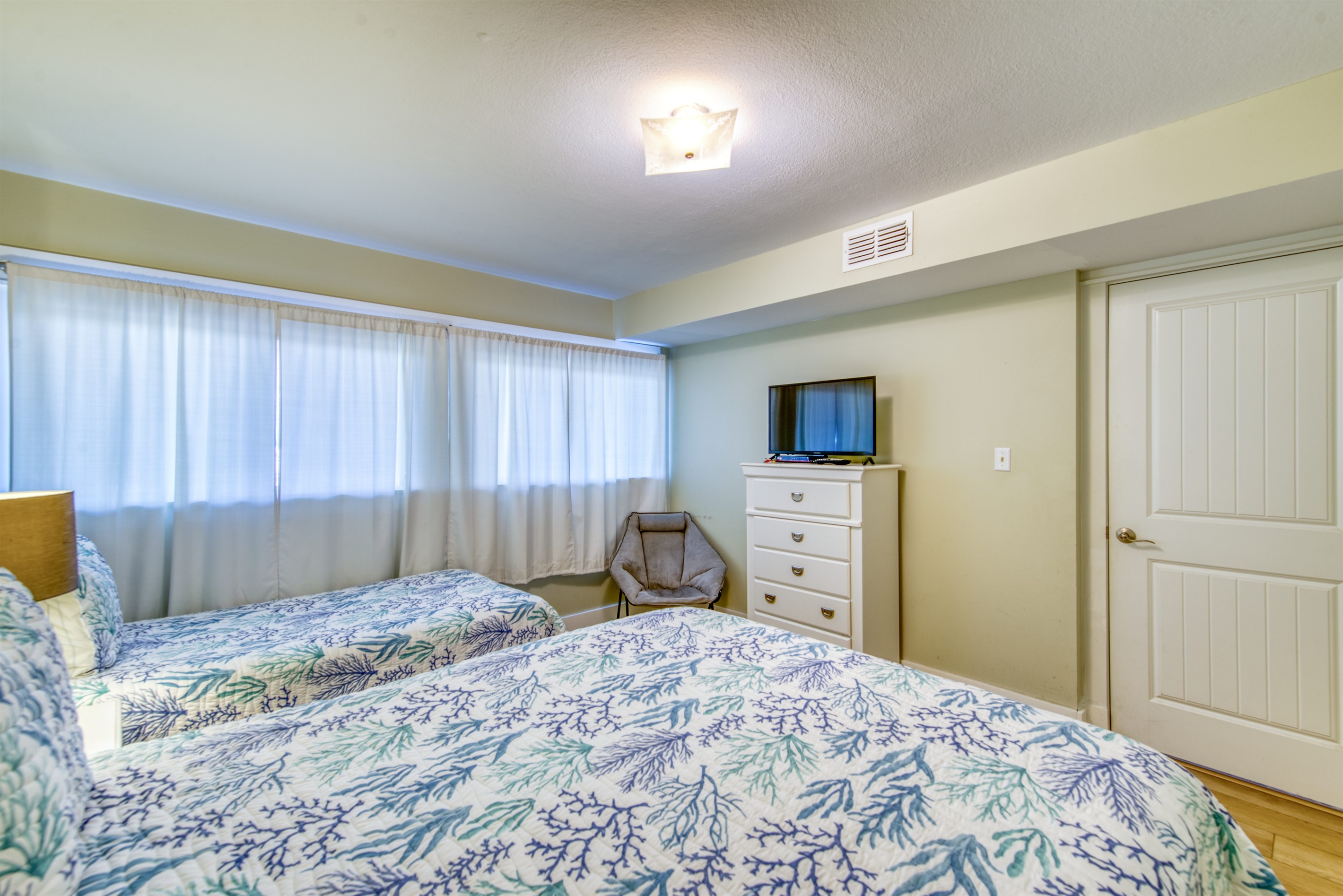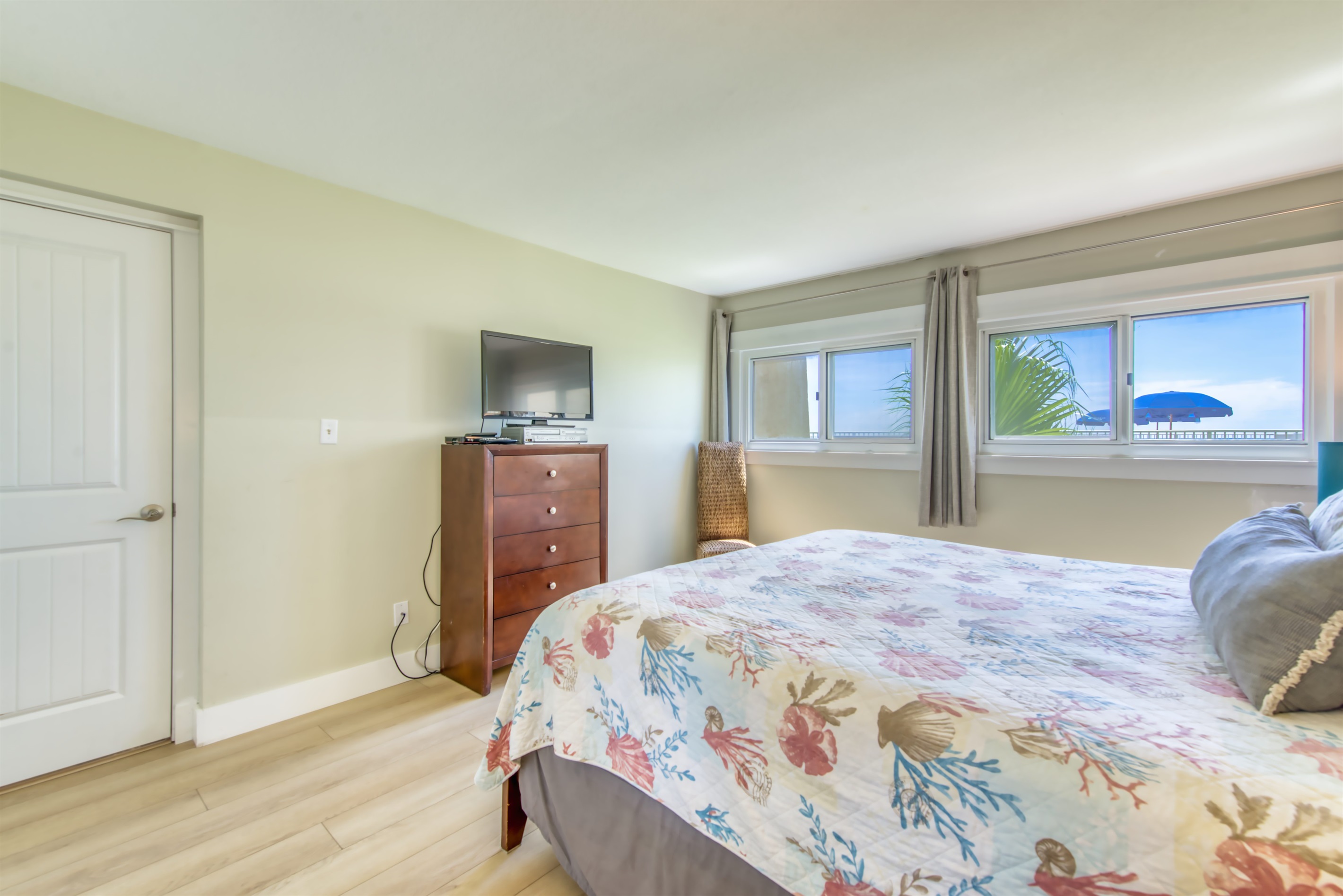 This condo can conveniently accommodate a party of 7. The master bedroom has a king-sized bed that comfortably sleeps 2, as well as a private, full bathroom attached to it. The guest bedroom has 1 queen size bed and 1 twin bed along with an attached full bathroom that is also accessible from the living room area. The living room is equipped with plenty of comfortable seating for lounging and relaxing throughout the day during your breaks from the beach, as well as a pull-out sleeper sofa bed that can comfortably sleep 2. The total sleeping accommodations for this condo is 7 guests.