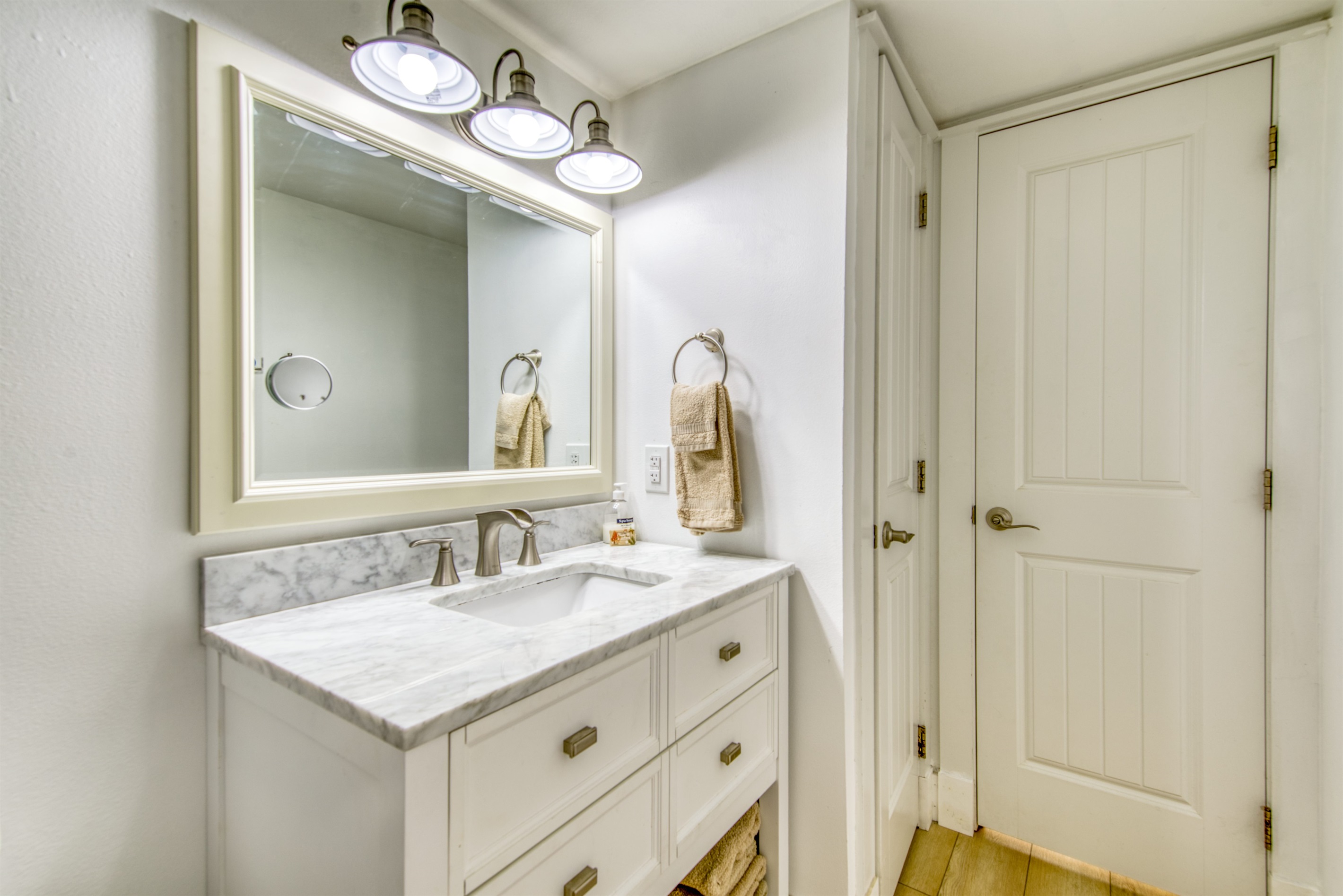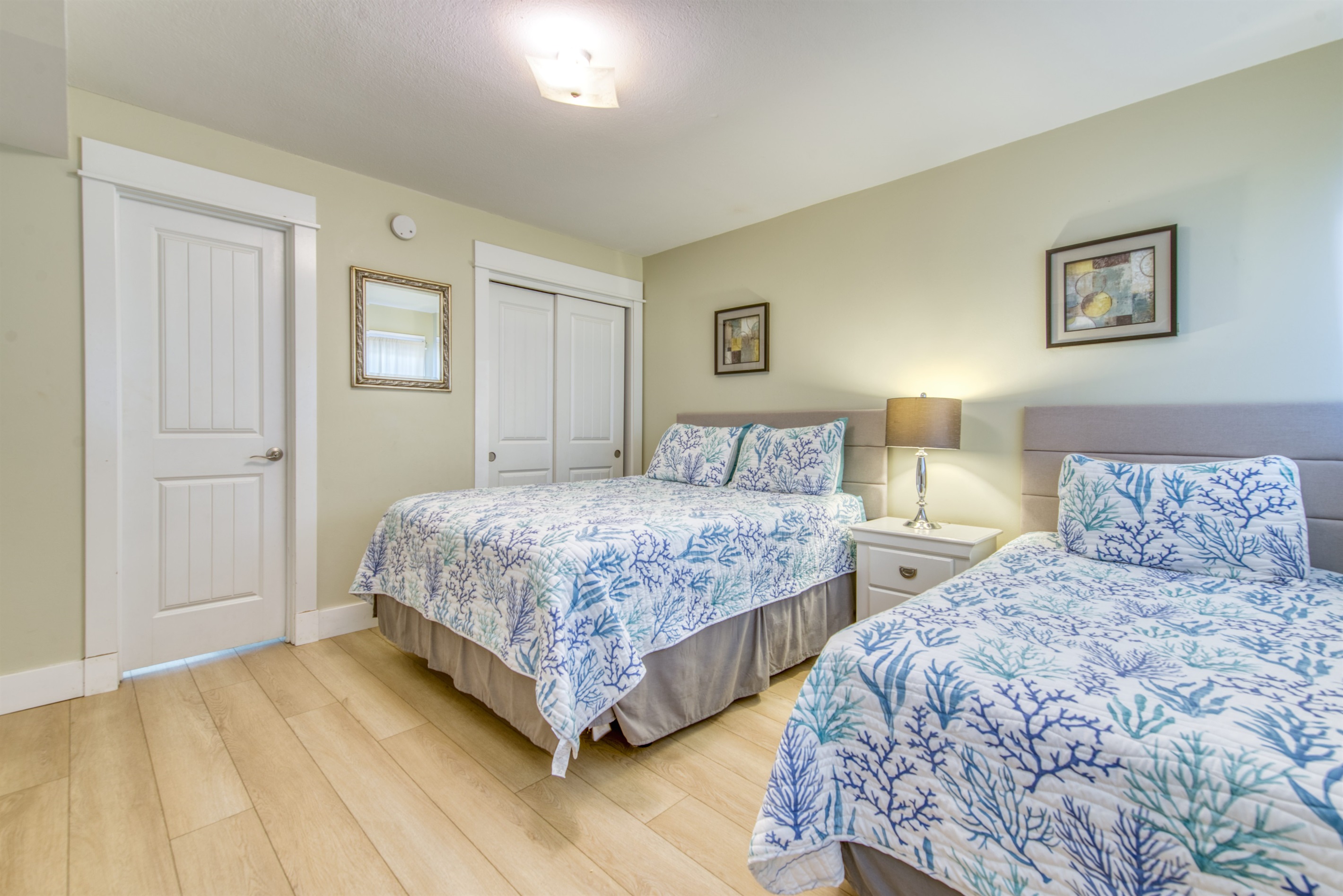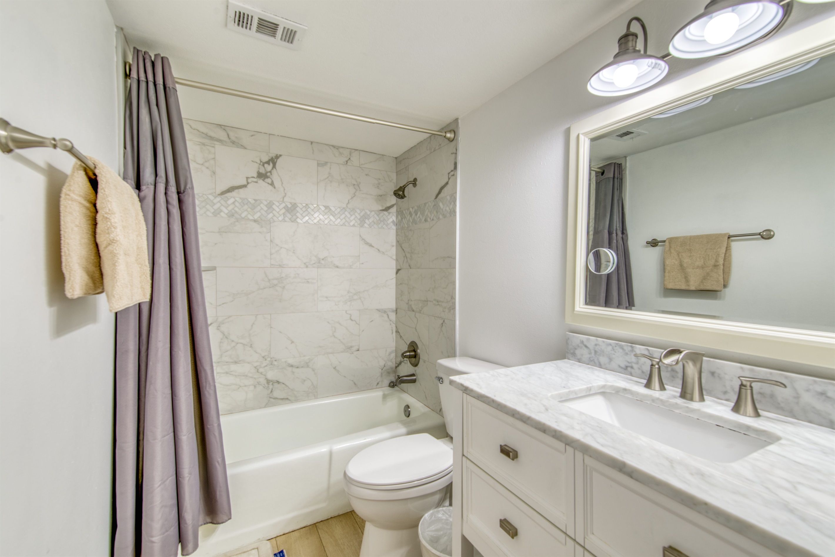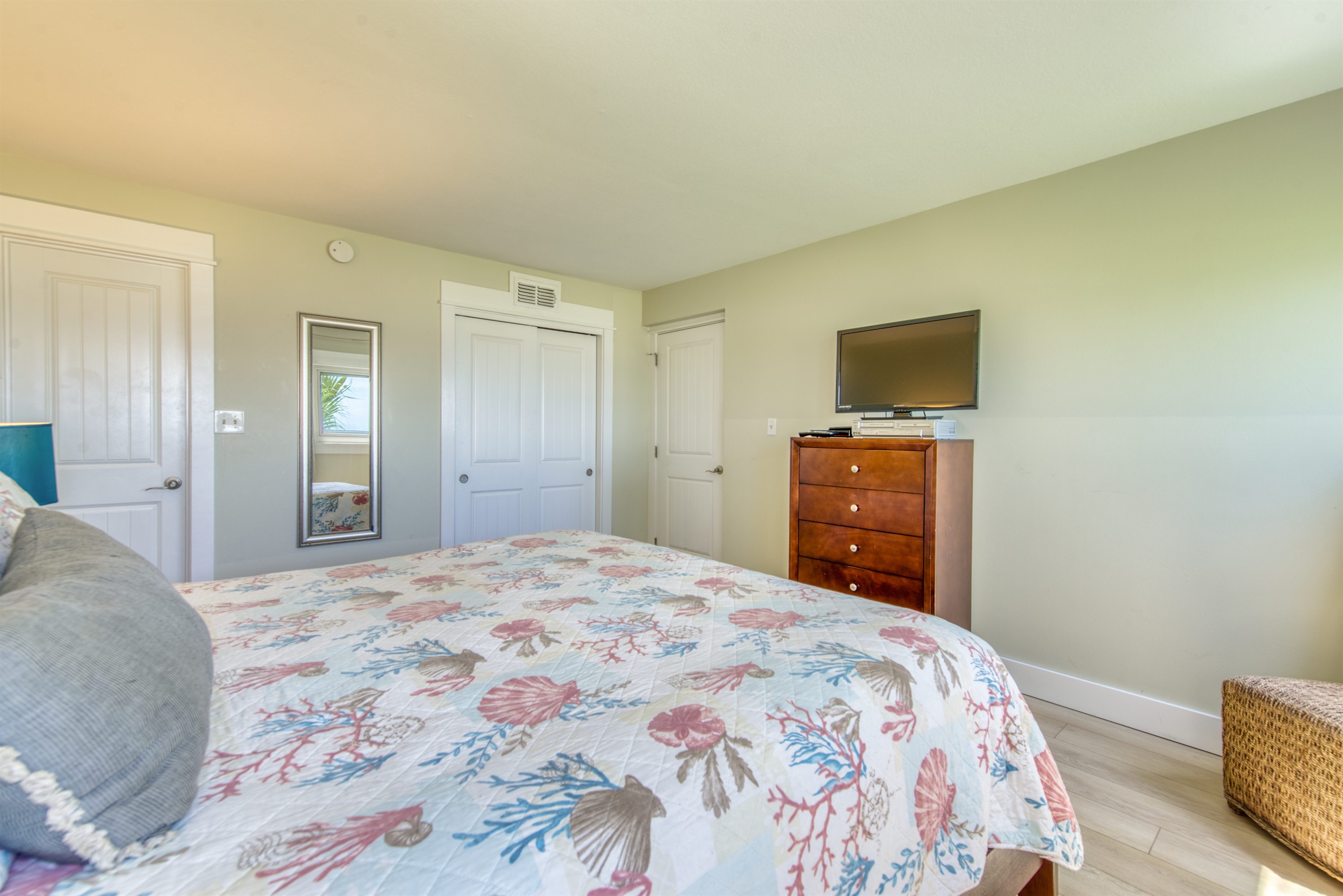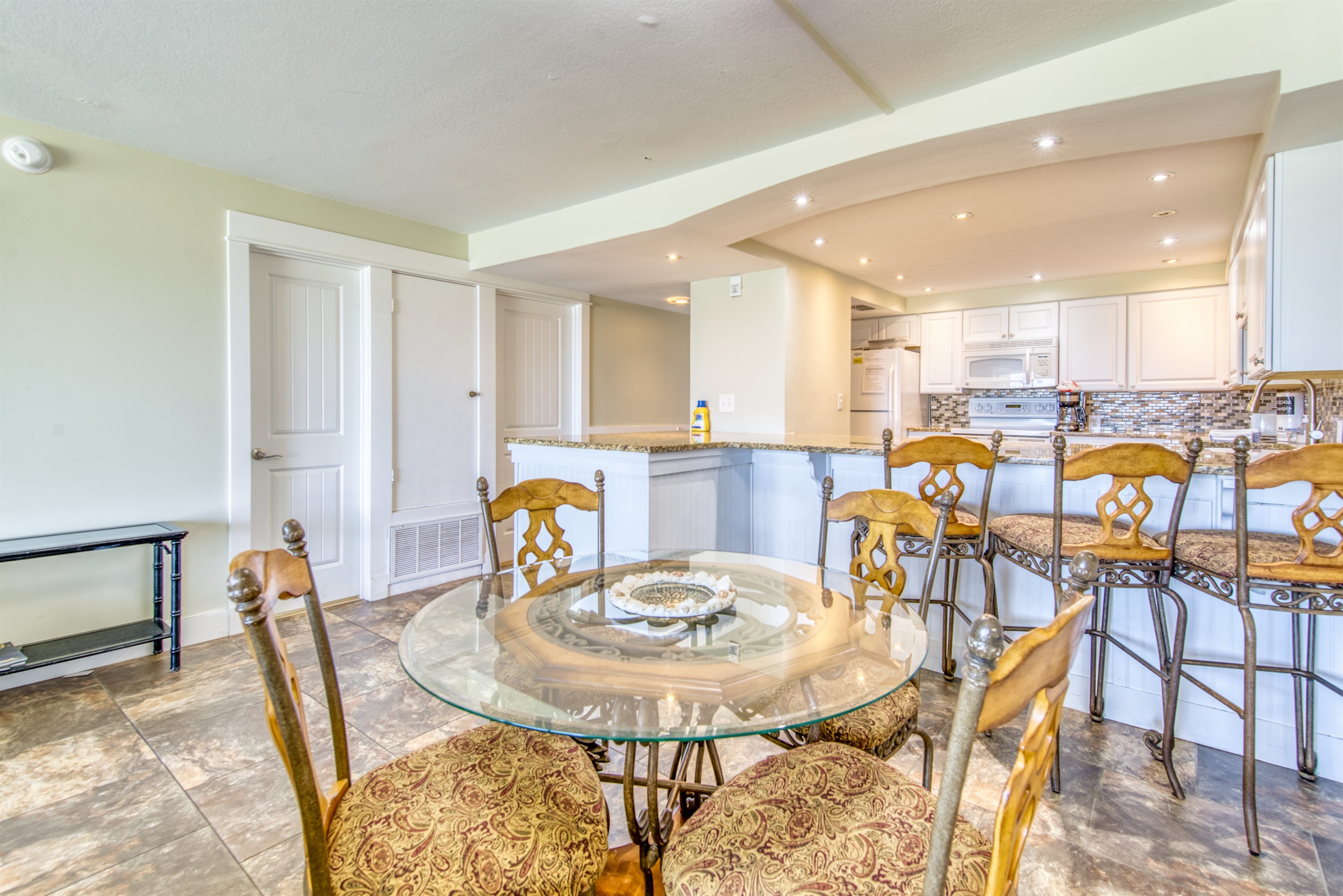 This condo can conveniently accommodate a party of 7. The master bedroom has a king-sized bed that comfortably sleeps 2, as well as a private, full bathroom attached to it. The guest bedroom has 1 queen size bed and 1 twin bed along with an attached full bathroom that is also accessible from the living room area. The living room is equipped with plenty of comfortable seating for lounging and relaxing throughout the day during your breaks from the beach, as well as a pull-out sleeper sofa bed that can comfortably sleep 2. The total sleeping accommodations for this condo is 7 guests.